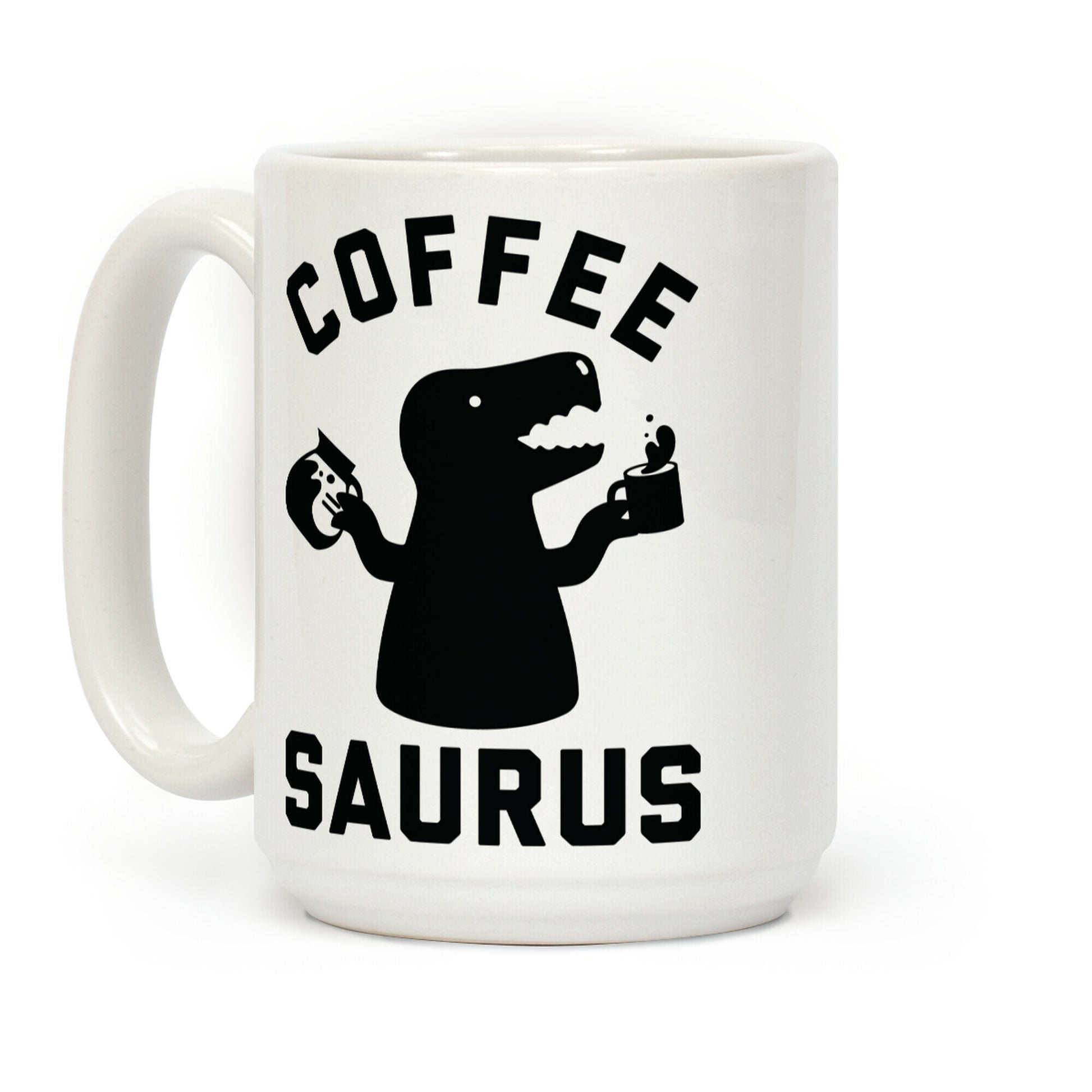 Coffeesaurus. Show your love for coffee and dinosaurs with this morning joe and Tyrannosaurus-Rex inspired design.