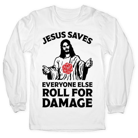 Jesus Saves Everyone Else Roll For Damage Longsleeve Tee