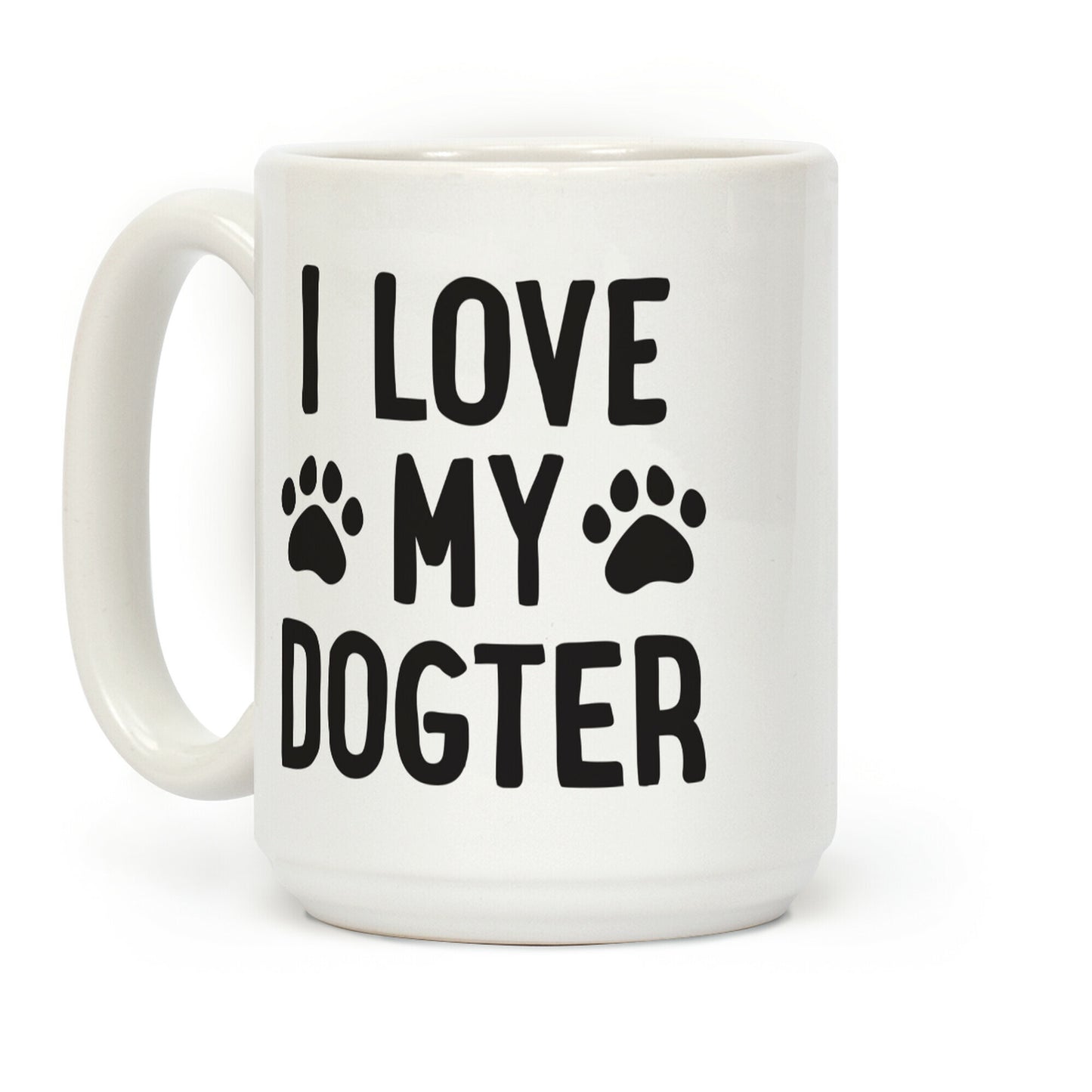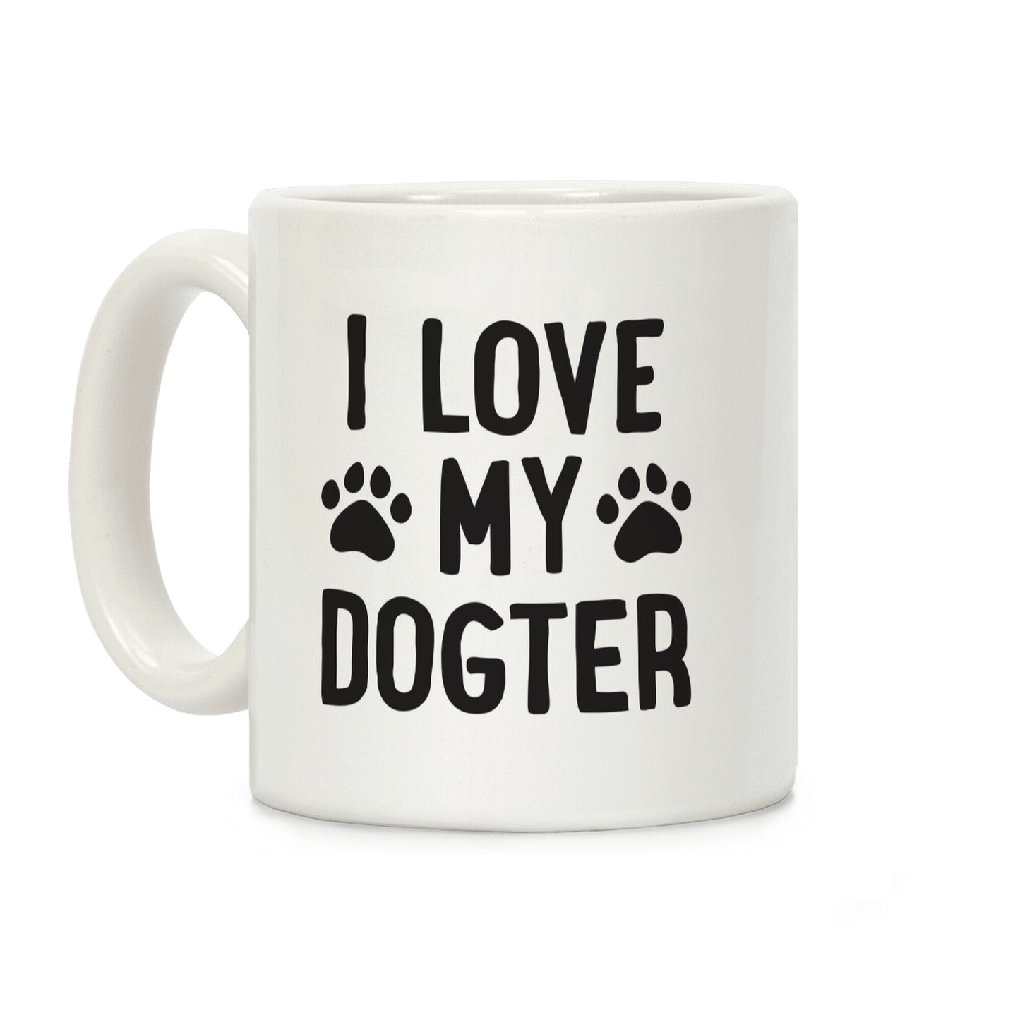Show that you're a proud dog parent with this, "I Love My Dogter" to show support for your dog daughter! Perfect for a dog lover, dog owner, and loving your dog children. Our Mug features large handles for easy gripping and a wrap-around print. These heavy-duty Mugs are both dishwasher and microwave safe. Printed in the USA