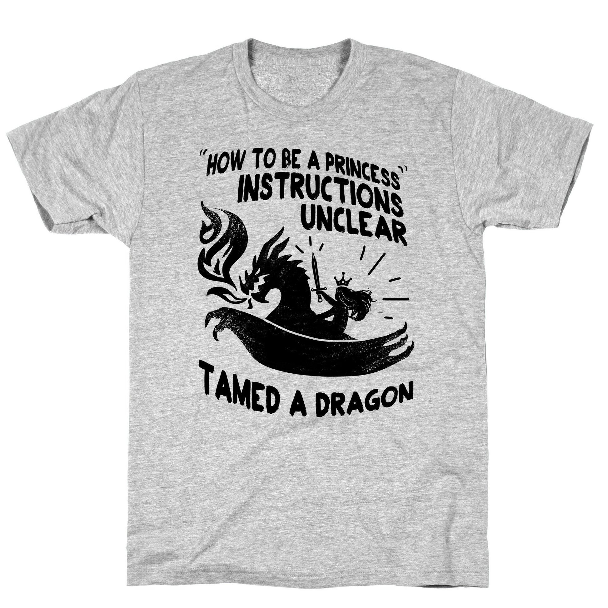 Princesses don't get kidnapped by dragons, they tame them. They get along so well due to their fierce personalities! Befriending dragons is just part of the title. Our fitted Unisex Cotton tee is made from an exceedingly soft 100% ring spun cotton. It features a crew neckline with hemmed sleeves and bottom for durability. Preshrunk for your convenience! Printed in the USA. Made with 100% Ring Spun Cotton. Athletic Gray is made up of 90% cotton and 10% polyester. Other heathered colors are made of 52% cotton and 48% polyester.