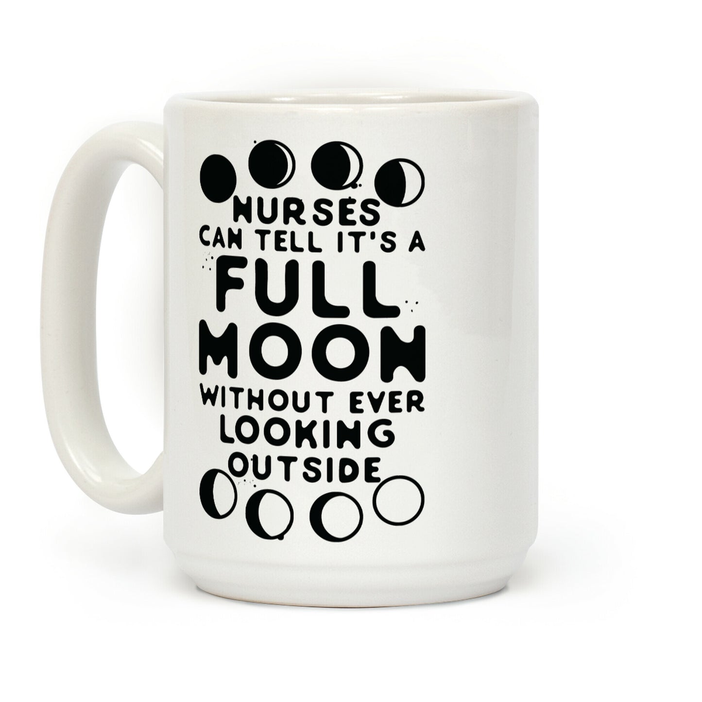 Nurses can tell it's a full moon without ever looking outside. Show that all nurses can sense the wild vibe a full moon brings out in their patients with this funny goth nurse design. Our Mug features large handles for easy gripping and a wrap-around print. These heavy-duty Mugs are both dishwasher and microwave safe. Printed in the USA