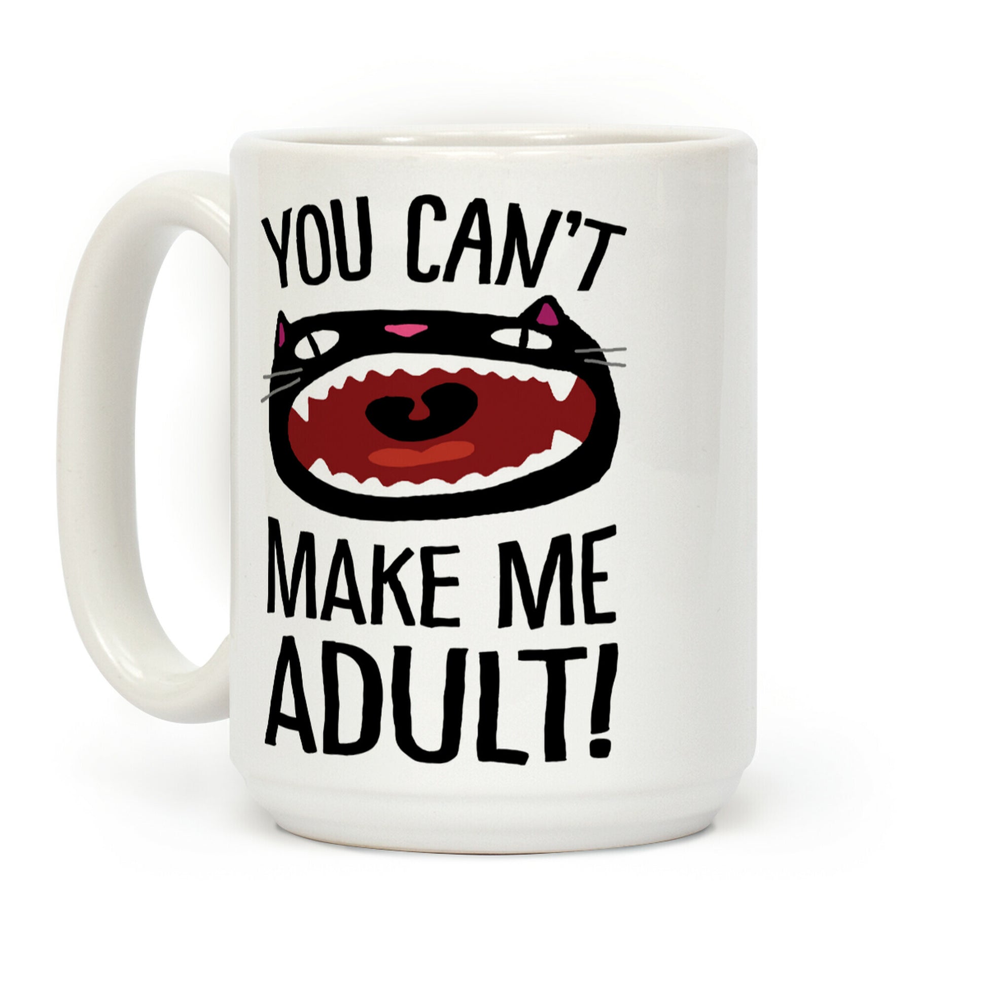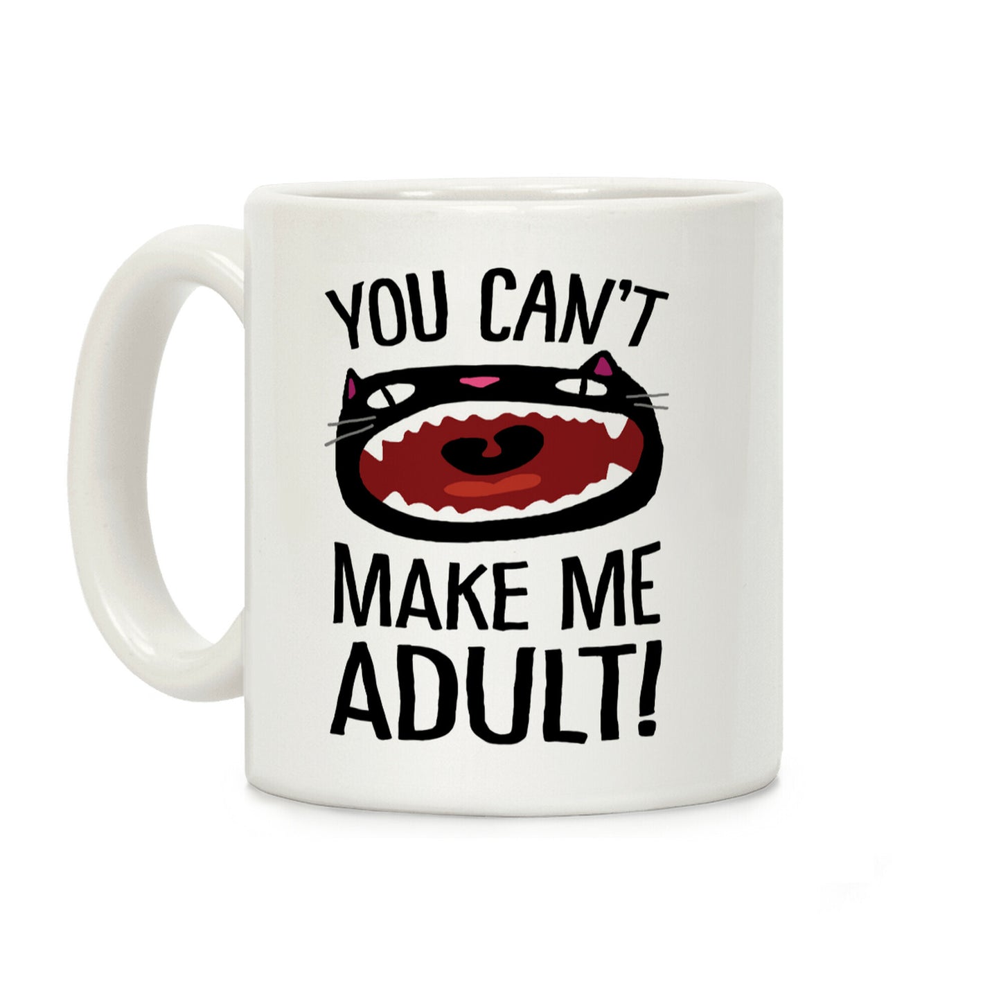 Show off your love of cats and your hatred of being responsible with this funny millennial, adulting humor, screaming cat coffee mug! Let the world know you have no interest in adulting and nobody can make you change your mind! MEOW!