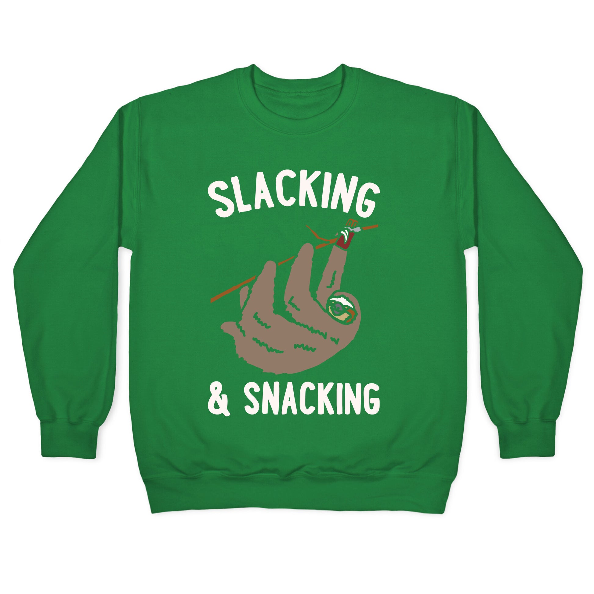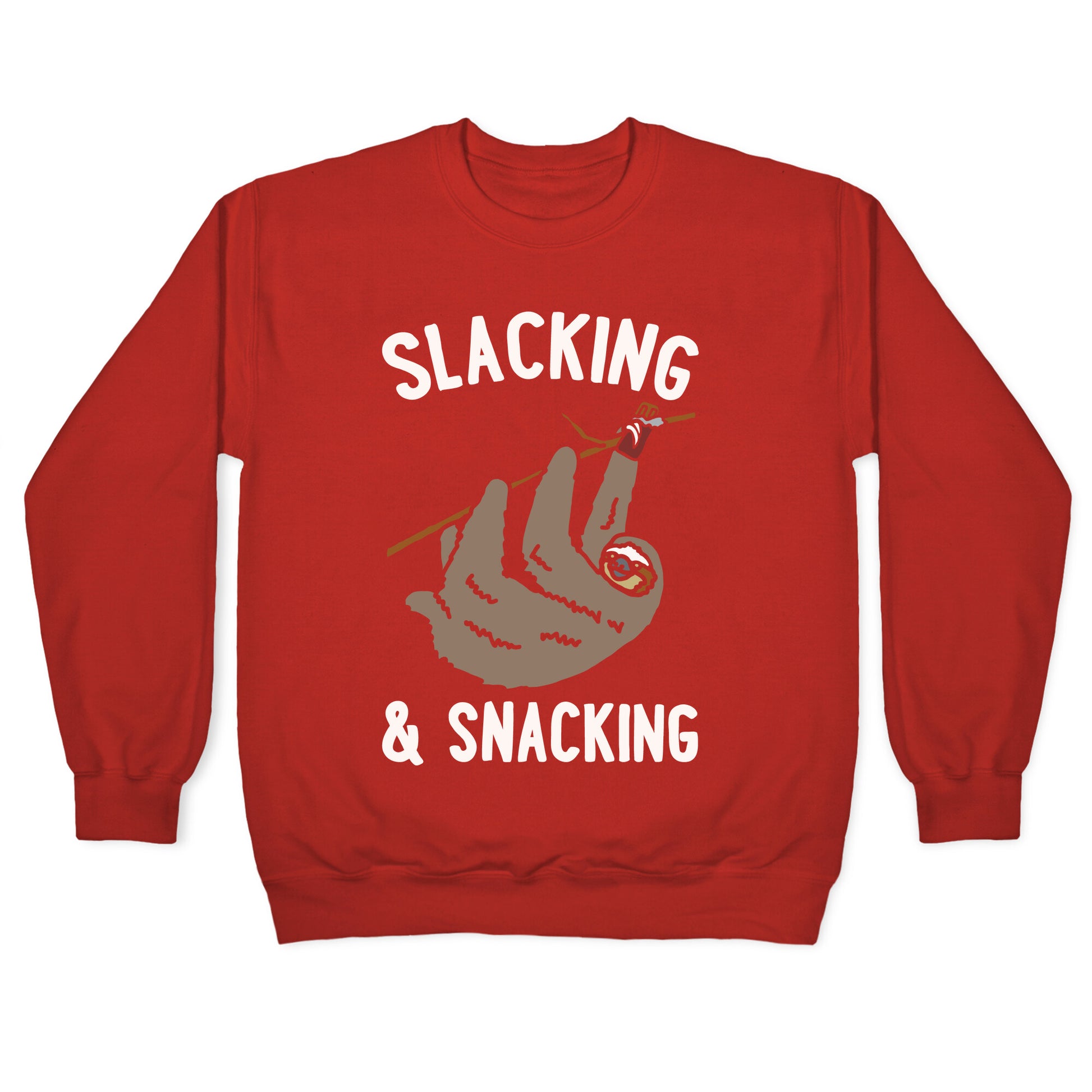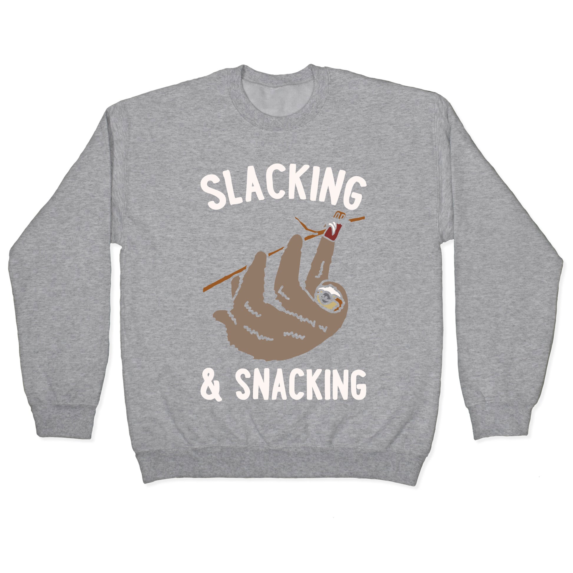 Slacking and Snacking Sloth White Print Crewneck Sweatshirt