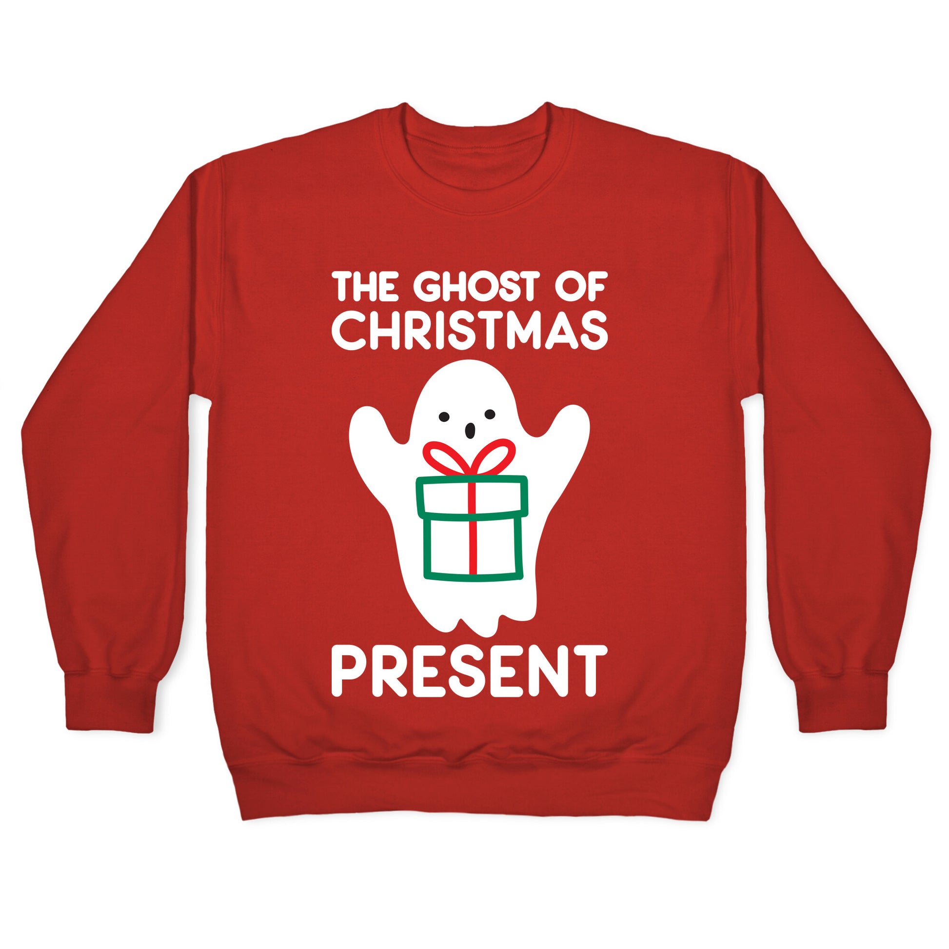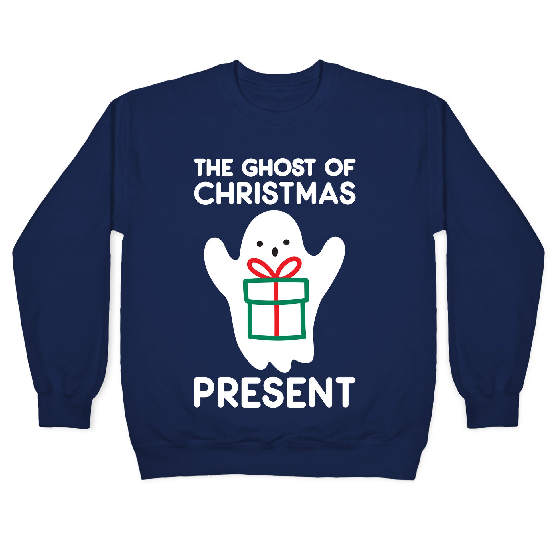 You're the spirit of the holiday season with this funny, "The Ghost of Christmas Present" Christmas ghost design! Perfect for a Christmas party, Christmas puns,olid and holiday humor!Our Unisex Crewneck Sweatshirt is made from a soft 8-ounce fabric, and they feature a crew neck, with sleeve and bottom hems for durability. Great for layering. Preshrunk for your convenience! Printed in the USA. Made with 50% Cotton and 50% Polyester.