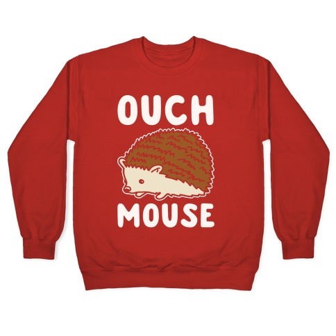 Ouch Mouse Hedgehog Parody White Print Crewneck Sweatshirt