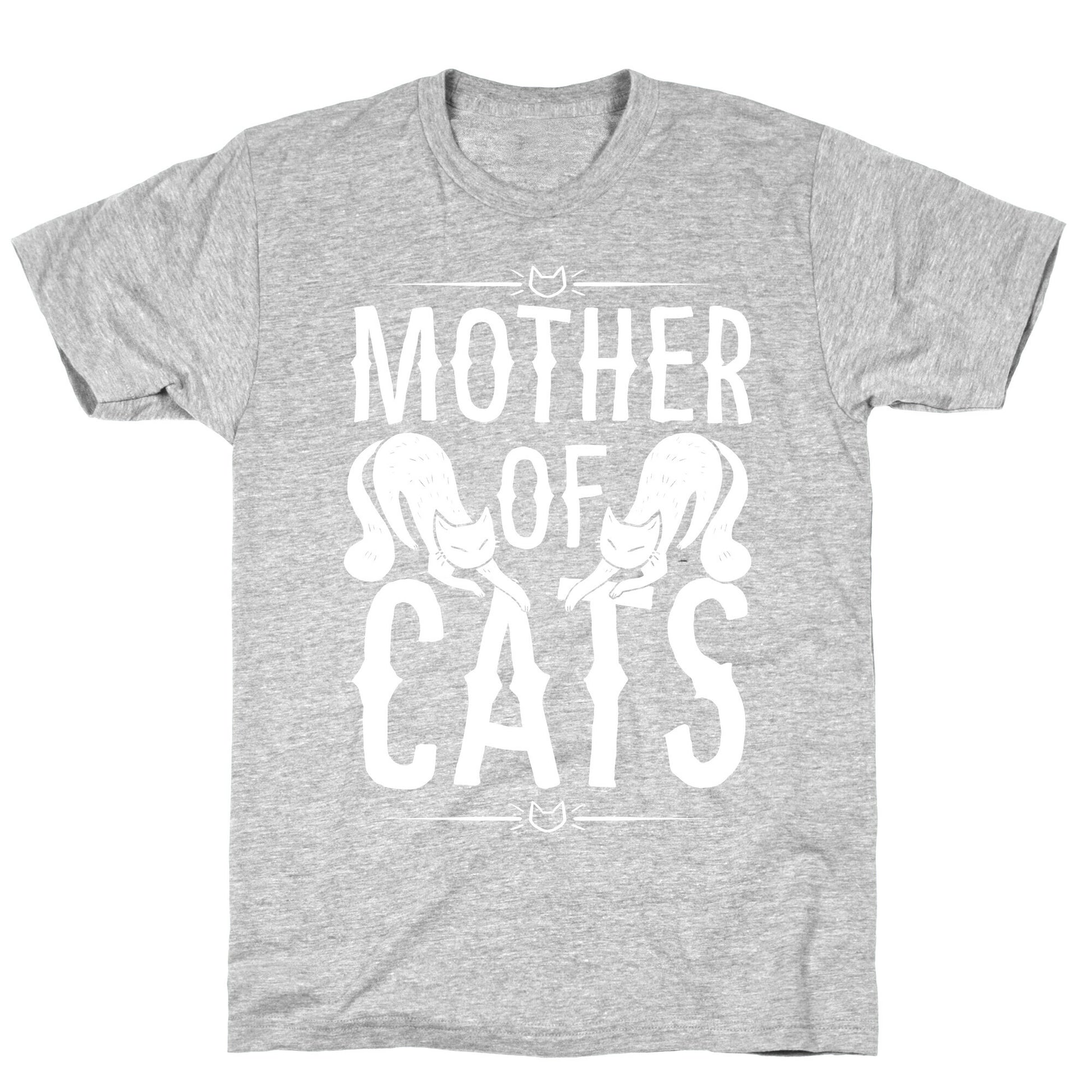 Calling all cat moms! Show off your feline fandom with our Mother of Cats t-shirt. Who needs to conquer kingdoms when you can rule the household with your kitties at your feet? Let's face it, cats are way easier to take care of than dragons (and way cuter too!). This design is perfect for those who consider their cats to be their children - and we know there are a lot of you out there. With our Mother of Cats tee, you can proudly display your love and dedication for these precious little furballs. So why settle for being a regular old mom when you can be a Mother of Cats? Get yours now and start showing off your purrfect pride! Our fitted Unisex Cotton tee is made from an exceedingly soft 100% ring spun cotton. It features a crew neckline with hemmed sleeves and bottom for durability. Preshrunk for your convenience! Printed in the USA. Made with 100% Ring Spun Cotton. Athletic Gray is made up of 90% cotton and 10% polyester. Other heathered colors are made of 52% cotton and 48% polyester.