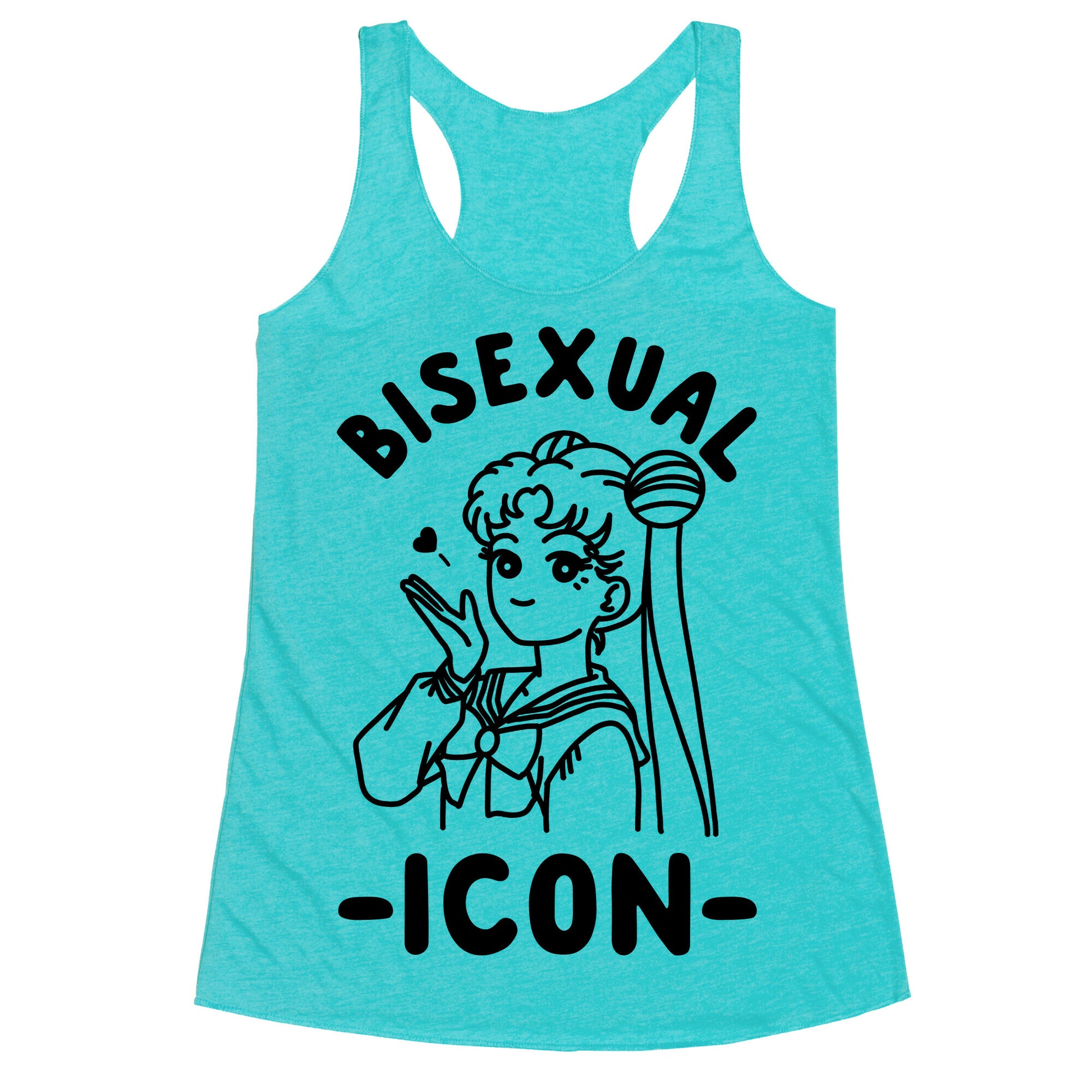 Bisexual Icon Usagi. Celebrate your favorite Bi anime icon with Sailor Moon parody inspired design.Our super comfortable Women’s Raw Edge Racerback features a soft tri-blend, unhemmed fabric, with a fashionable bell-like shape for the bottom. Preshrunk for your convenience! Printed in the USA. Made with 50% Polyester 25% Ring Spun Cotton, and 25% Rayon.