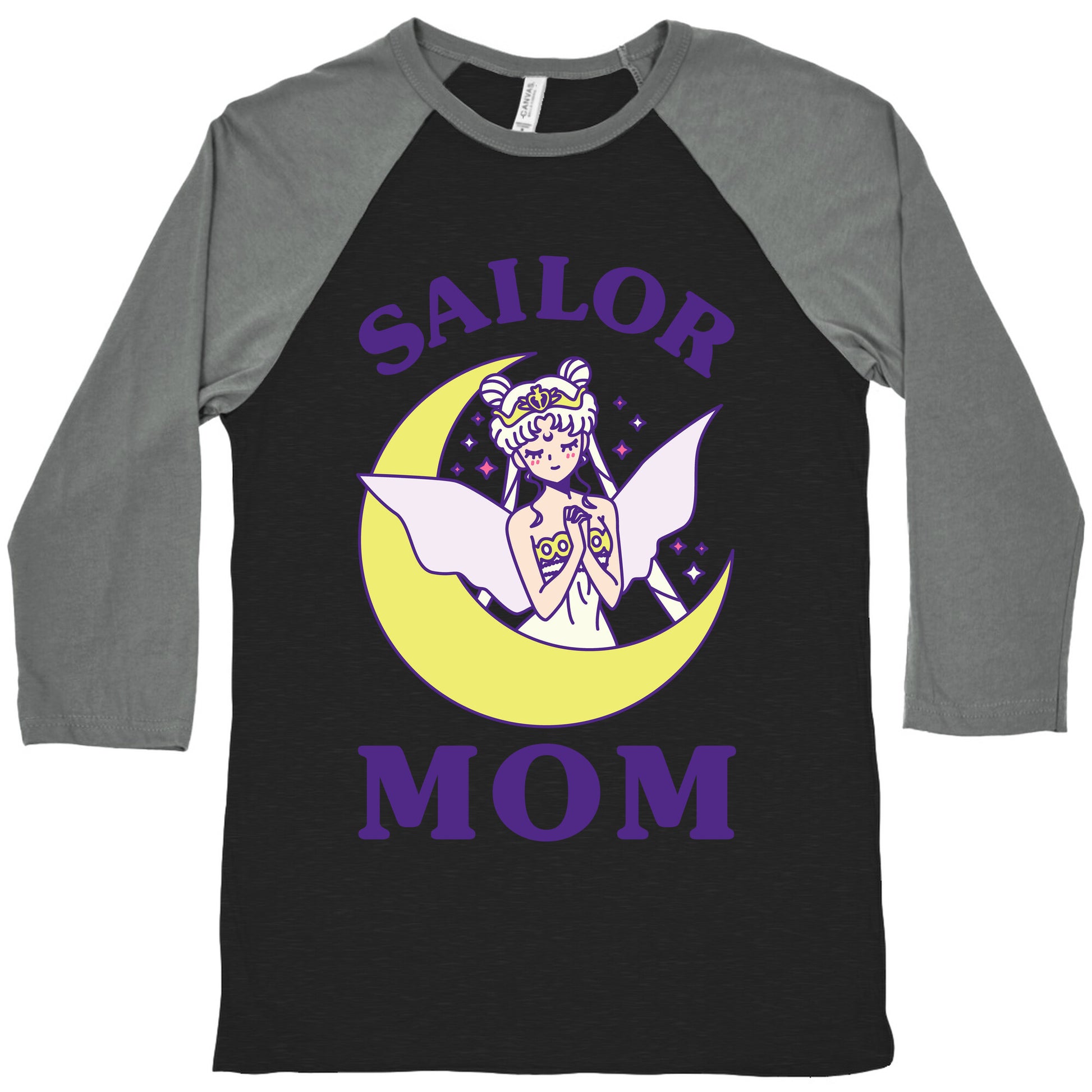 Sailor Mom. Show you're a mom who loves 90s anime with this Neo Queen Serenity inspired design. Our exceedingly soft and relaxed fit Tri-Blend Baseball Tee features a three-quarter length sleeve, crew neck, fun contrasting color sleeves and neck trim. Preshrunk for your convenience! Printed in the USA. Made with 50% Polyester, 25% Cotton and 25% Rayon