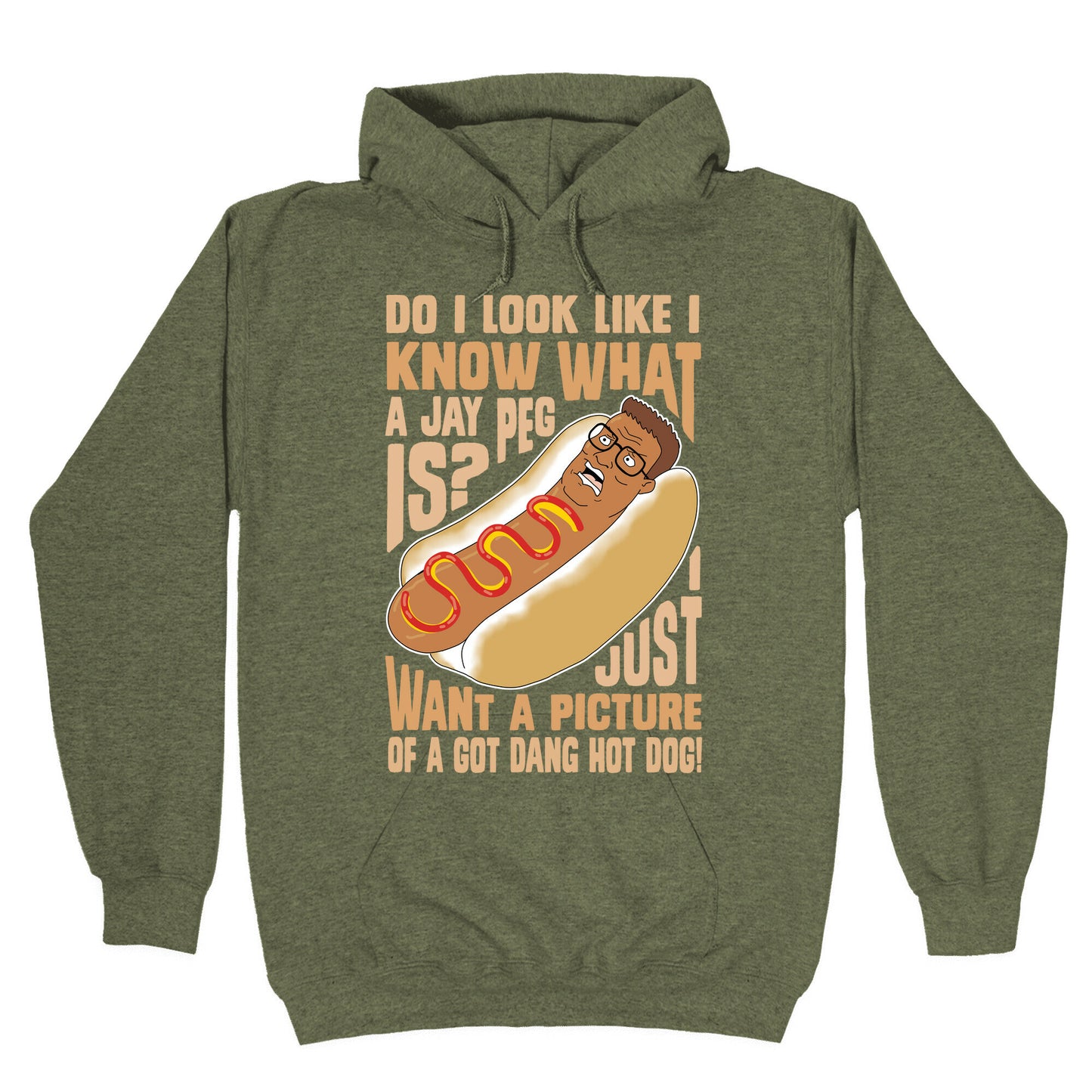 Get ready to make everyone laugh out loud with our hilarious tee! Introducing our I Just Want A Picture of a Got Dang Hot dog! t-shirt, inspired by that famous King of the Hill quote that took TikTok by storm. Whether you're a die-hard fan of the show or simply love a good pun, this shirt is perfect for you. With its witty design and catchy phrase, you'll become an instant hit at any party or event. Plus, the comfortable fit and quality material make it ideal for any occasion. Wear it to school, work, or on a casual night out with friends, and watch as people stop and stare in admiration. We guarantee you won't find anything else quite like our I Just Want A Picture of a Got Dang Hot dog! tee, so get yours today and make a bold statement that's sure to turn heads! Our Unisex Pullover Hoodie is made from a soft 8-ounce fabric They feature a drawstring hood and front kangaroo pocket. Great for layering! Preshrunk for your convenience! Printed in the USA. Made with 50% Cotton and 50% Polyester.