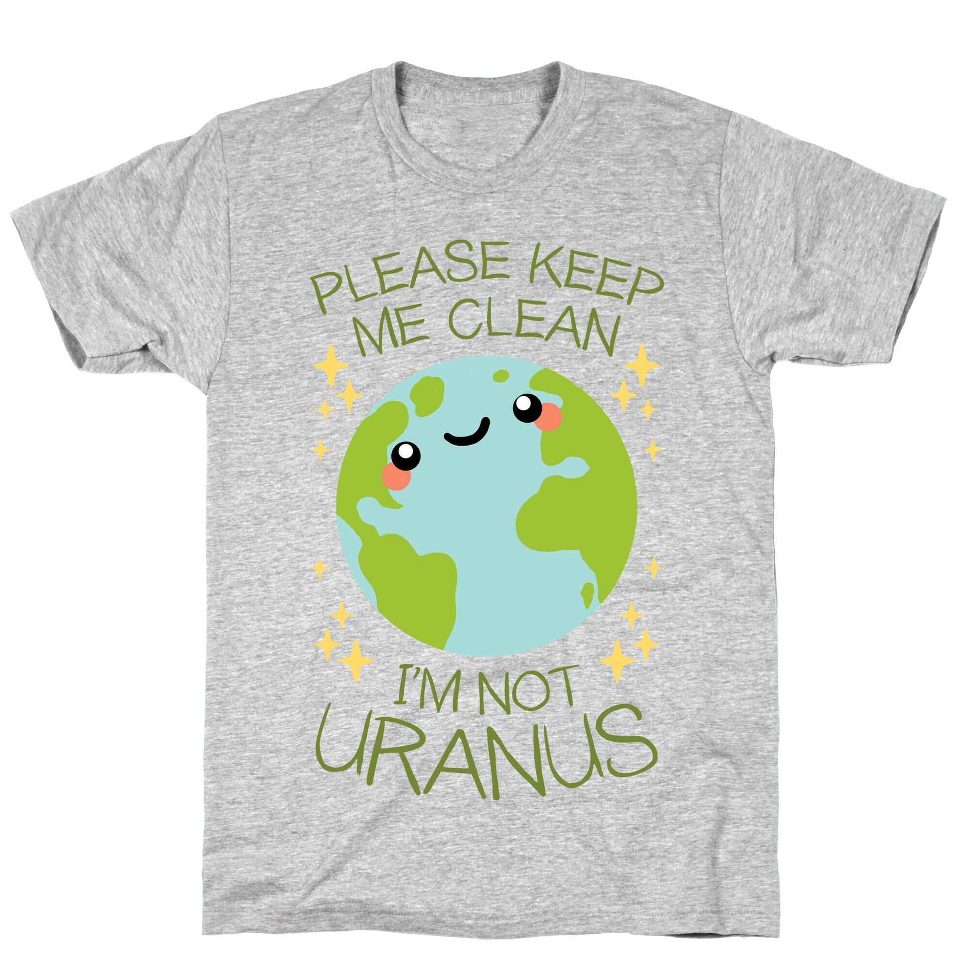 It's time to take action and make a difference for our planet! Our "Please Keep Me Clean, I'm Not Uranus" t-shirt serves as a humorous reminder of our duty to keep the environment clean. Let's face it, Earth has had a rough time lately and needs all the TLC it can get. Whether you're an activist or just someone who cares, this t-shirt is the perfect way to spread awareness and encourage action. As humans, we have a responsibility to keep our planet healthy and thriving, and this shirt is a fun and eye-catching way to play your part. So wear it with pride and spread the message that saving our beautiful planet is everyone's responsibility. Get your "Please Keep Me Clean, I'm Not Uranus" t-shirt today and let's start making a difference together! Our fitted Unisex Cotton tee is made from an exceedingly soft 100% ring spun cotton. It features a crew neckline with hemmed sleeves and bottom for durability. Preshrunk for your convenience! Printed in the USA. Made with 100% Ring Spun Cotton. Athletic Gray is made up of 90% cotton and 10% polyester. Other heathered colors are made of 52% cotton and 48% polyester.