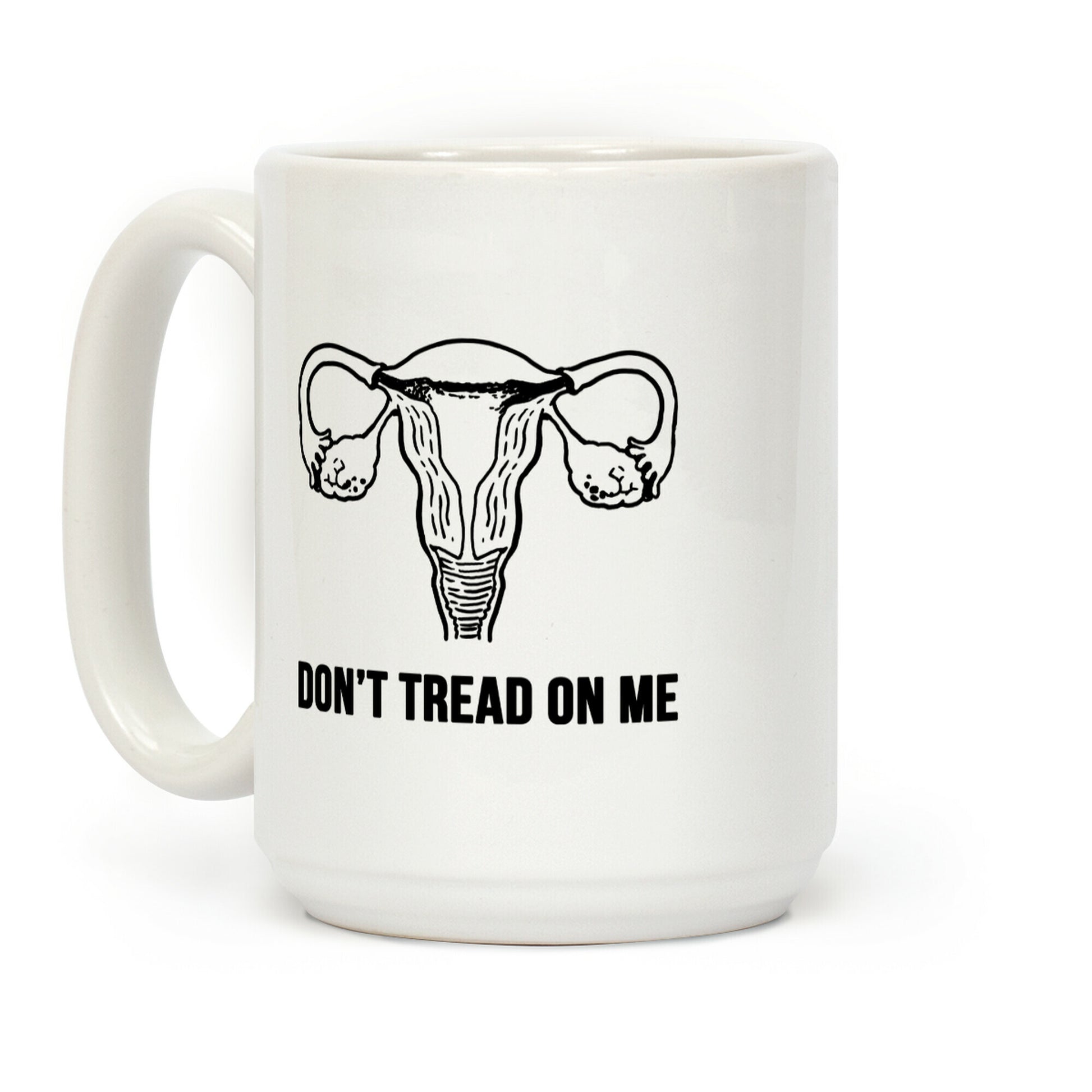 This feminist shirt is perfect for feminist protests, pro choice protests and features the parody of the "don't tread on me" snake flag and replaces it with a uterus. This protest mug is great for fans of feminist quotes, feminist parody and pro choice coffee mug. Our Mug features large handles for easy gripping and a wrap-around print. These heavy-duty Mugs are both dishwasher and microwave safe. Printed in the USA