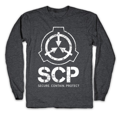 Introducing the SCP Secure. Contain. Protect. tee, the perfect way to show off your love for secret agencies and the paranormal. With a nod to the famous SCP Foundation, this shirt lets everyone know that you take your containment and protection seriously. The world is a strange place, and the SCP Foundation is on the front lines, keeping us all safe from the aberrations that lurk in the darkness. So why not show your support with this classic design that pays homage to the mysterious organization that keeps us all out of harm's way? Whether you're exploring ancient ruins or just hanging out at home, this shirt is the perfect addition to any wardrobe. So why wait? Order your SCP Secure. Contain. Protect. tee today and show the world that you're ready for anything!Our Unisex Long Sleeve Tee is made from a soft 100% cotton jersey knit. It features a crew neckline with ribbed cuffs and hemmed bottom for durability. Preshrunk for your convenience! Printed in the USA. Athletic Gray is made up of 90% cotton and 10% polyester.