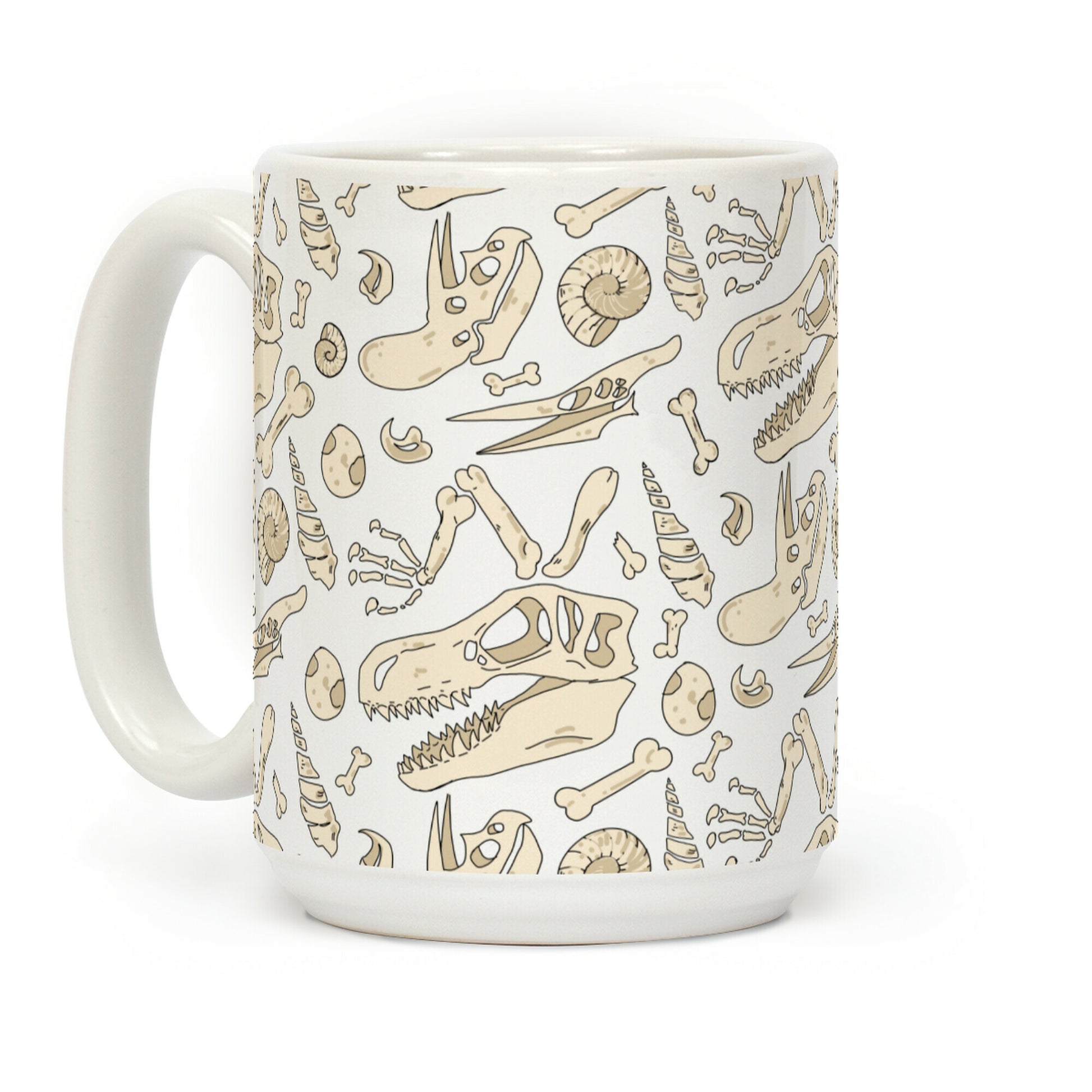 The perfect pattern for paleontologists! Show off your nerdy love for prehistoric beings with this illustrative fossil pattern! Our Mug features large handles for easy gripping and a wrap-around print. These heavy-duty Mugs are both dishwasher and microwave safe. Printed in the USA