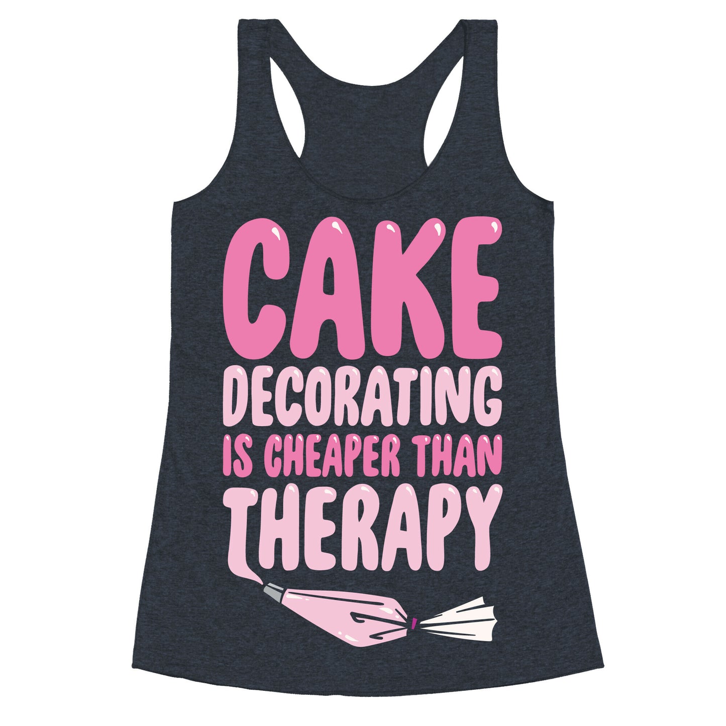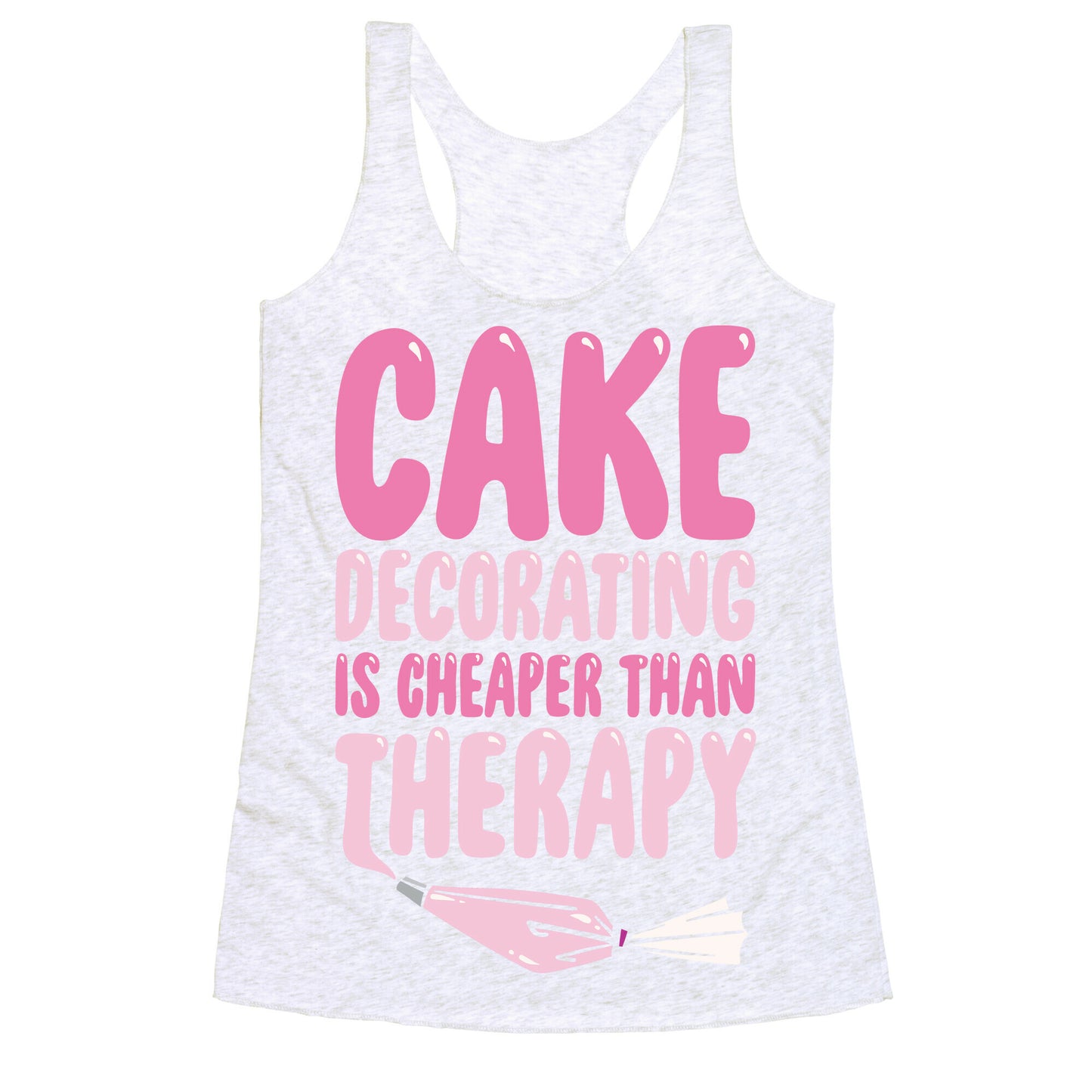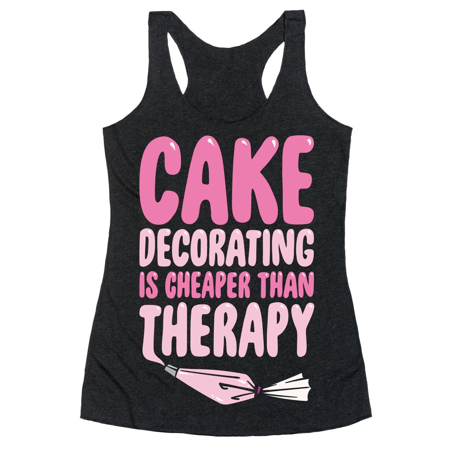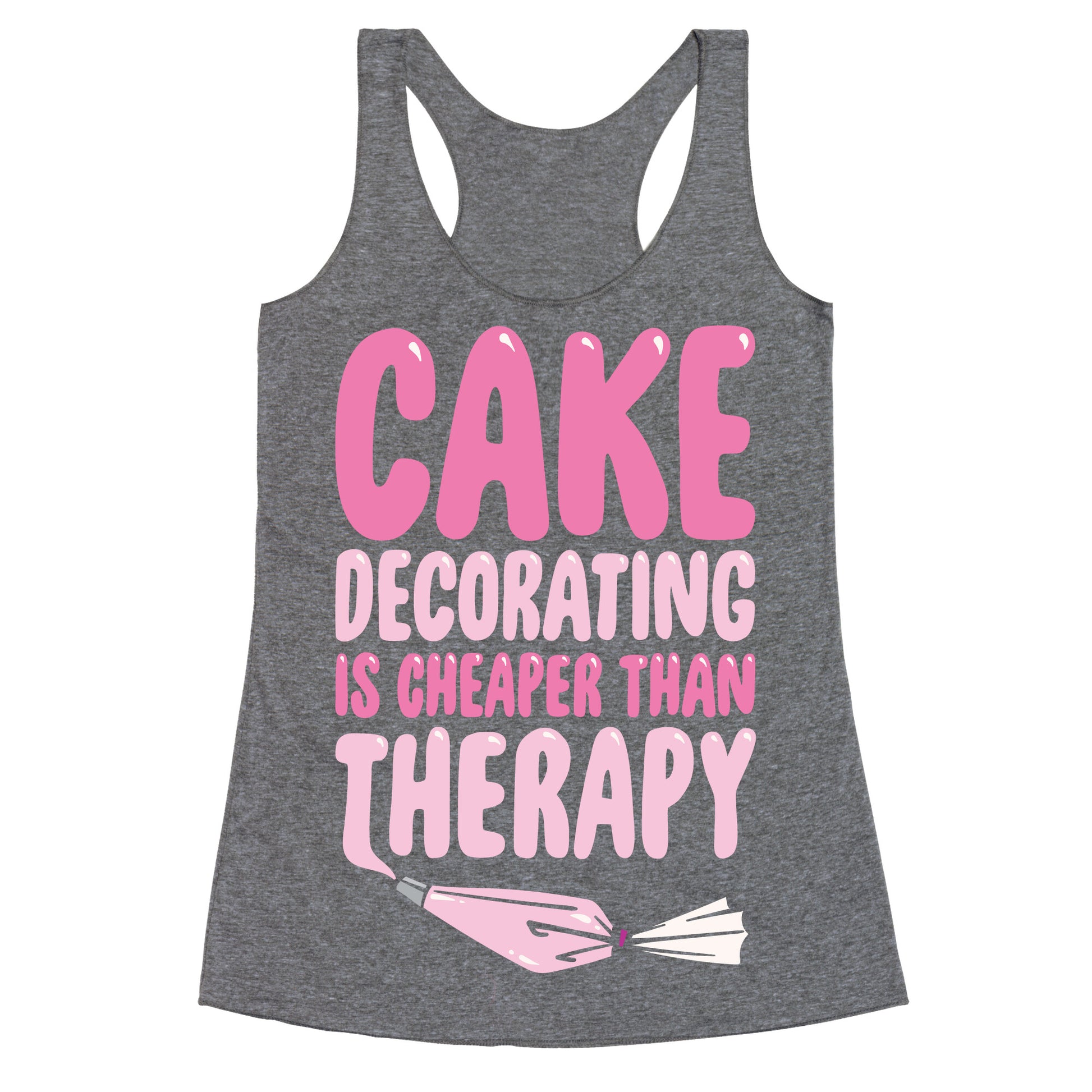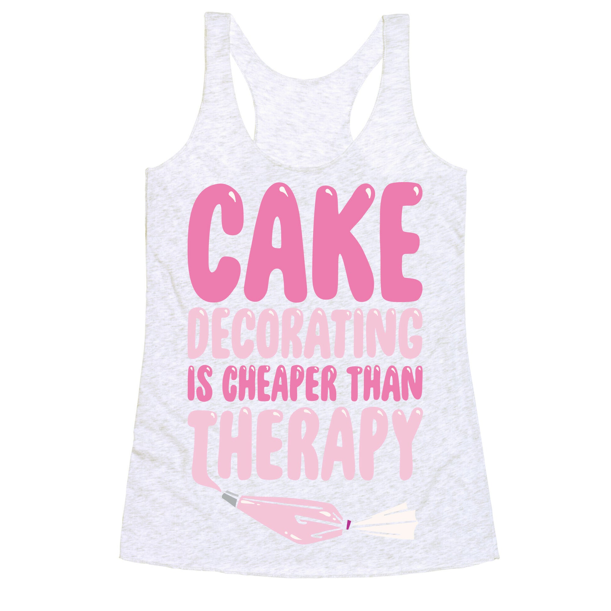 Cake Decorating Is Cheaper Than Therapy White Print Racerback Tank