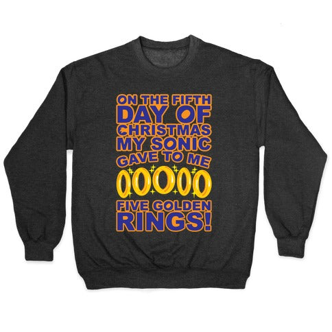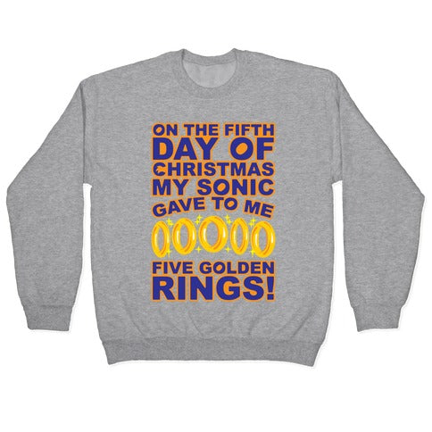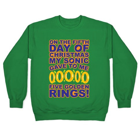 On The Fifth Day Of Christmas My Sonic Gave To Me Parody White Print Crewneck Sweatshirt