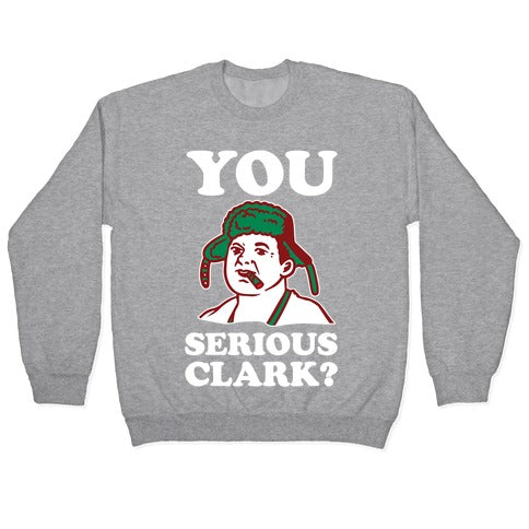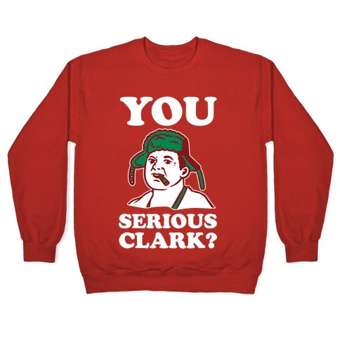 You Serious Clark? Show that this Christmas you only have one question: You serious Clark?Our Unisex Crewneck Sweatshirt is made from a soft 8-ounce fabric, and they feature a crew neck, with sleeve and bottom hems for durability. Great for layering. Preshrunk for your convenience! Printed in the USA. Made with 50% Cotton and 50% Polyester.