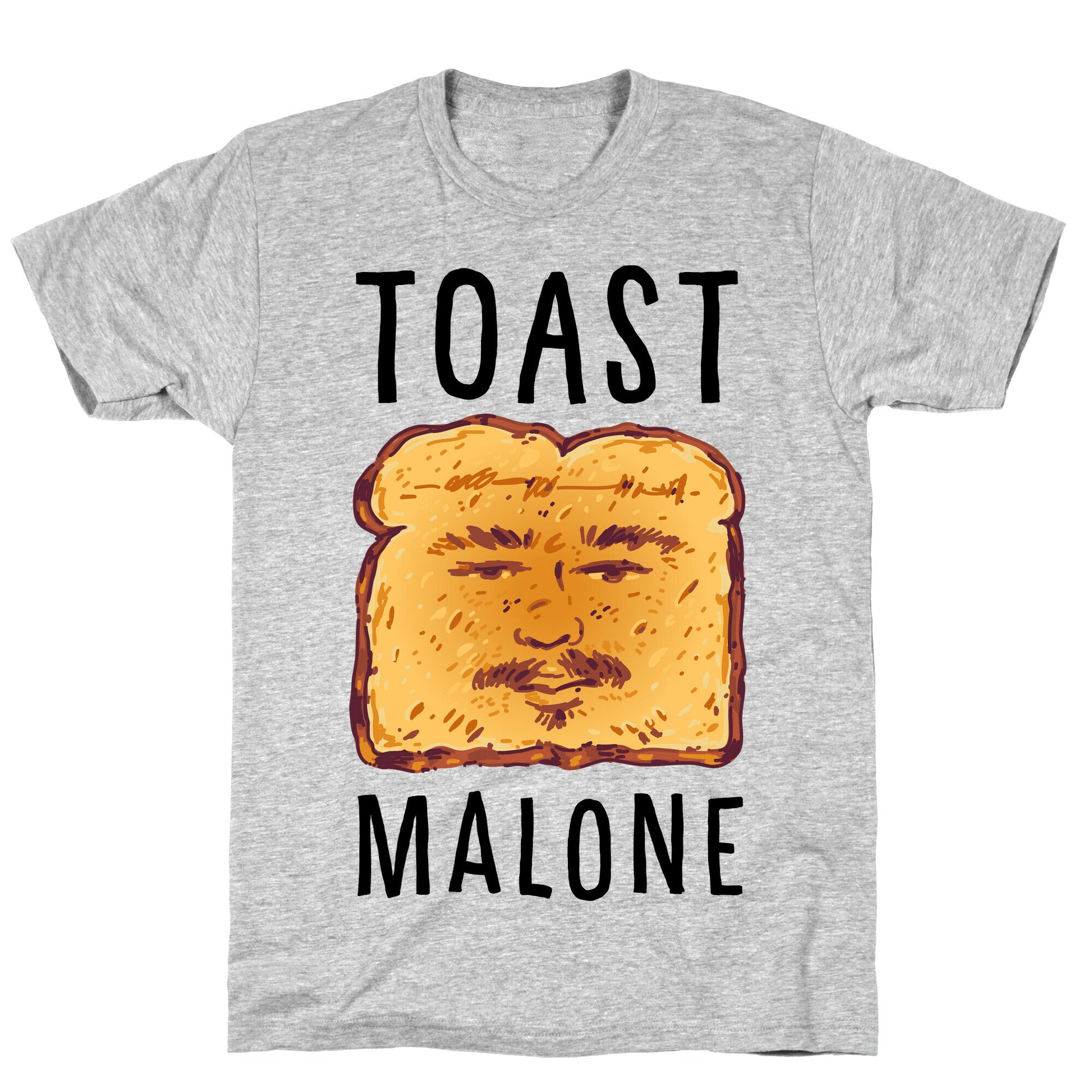 Looking for a tee that combines your love of music and breakfast? Look no further than Toast Malone! This hilarious tee features a clever pun that's sure to get a laugh from anyone who sees it. The toast graphic is eye-catching and fun, making a great conversation starter. Whether you're heading to a concert or just lounging at home, this shirt is the perfect choice for any fan of the popular rapper. The comfortable fit and soft material make it a great choice for layering or wearing solo, and the playful design ensures that you'll stand out in any crowd. Toast Malone - it's the perfect way to start your day with a smile! Get your hands on one today and share the love! Our fitted Unisex Cotton tee is made from an exceedingly soft 100% ring spun cotton. It features a crew neckline with hemmed sleeves and bottom for durability. Preshrunk for your convenience! Printed in the USA. Made with 100% Ring Spun Cotton. Athletic Gray is made up of 90% cotton and 10% polyester. Other heathered colors are made of 52% cotton and 48% polyester.