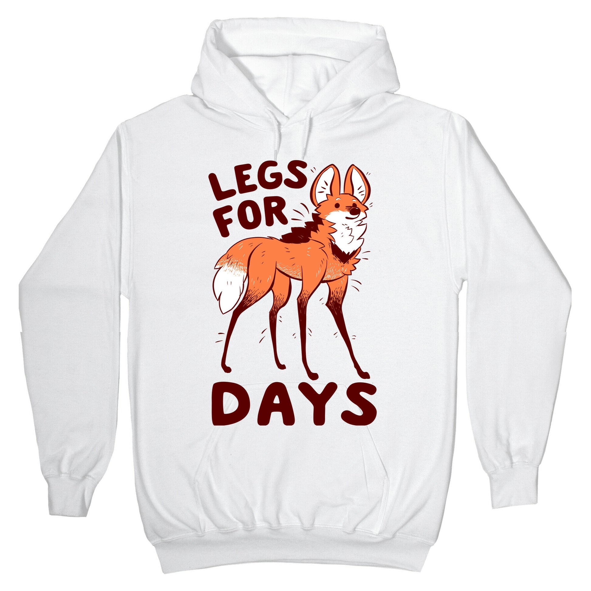 The Maned wolf, The LEGGIEST of creatues ever produced by mother nature. What's on the menu? Legs! Our Unisex Pullover Hoodie is made from a soft 8-ounce fabric They feature a drawstring hood and front kangaroo pocket. Great for layering! Preshrunk for your convenience! Printed in the USA. Made with 50% Cotton and 50% Polyester.