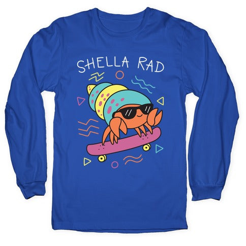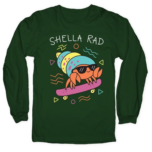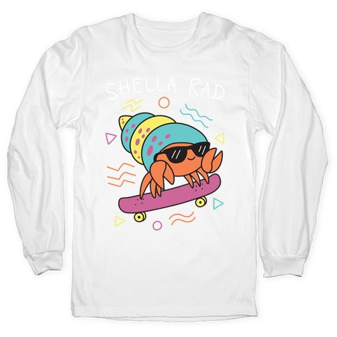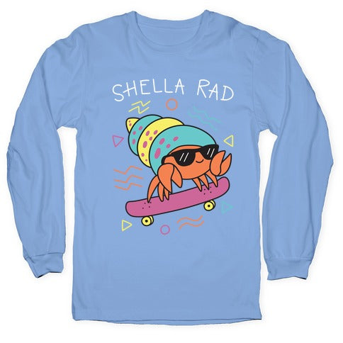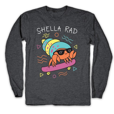 Sweet skateboard, bruh. Show that your hella rad like this crab with this, "Shella Rad" crab pun design. Perfect for being a cute, rad, skateboarding crab!Our Unisex Long Sleeve Tee is made from a soft 100% cotton jersey knit. It features a crew neckline with ribbed cuffs and hemmed bottom for durability. Preshrunk for your convenience! Printed in the USA. Athletic Gray is made up of 90% cotton and 10% polyester.