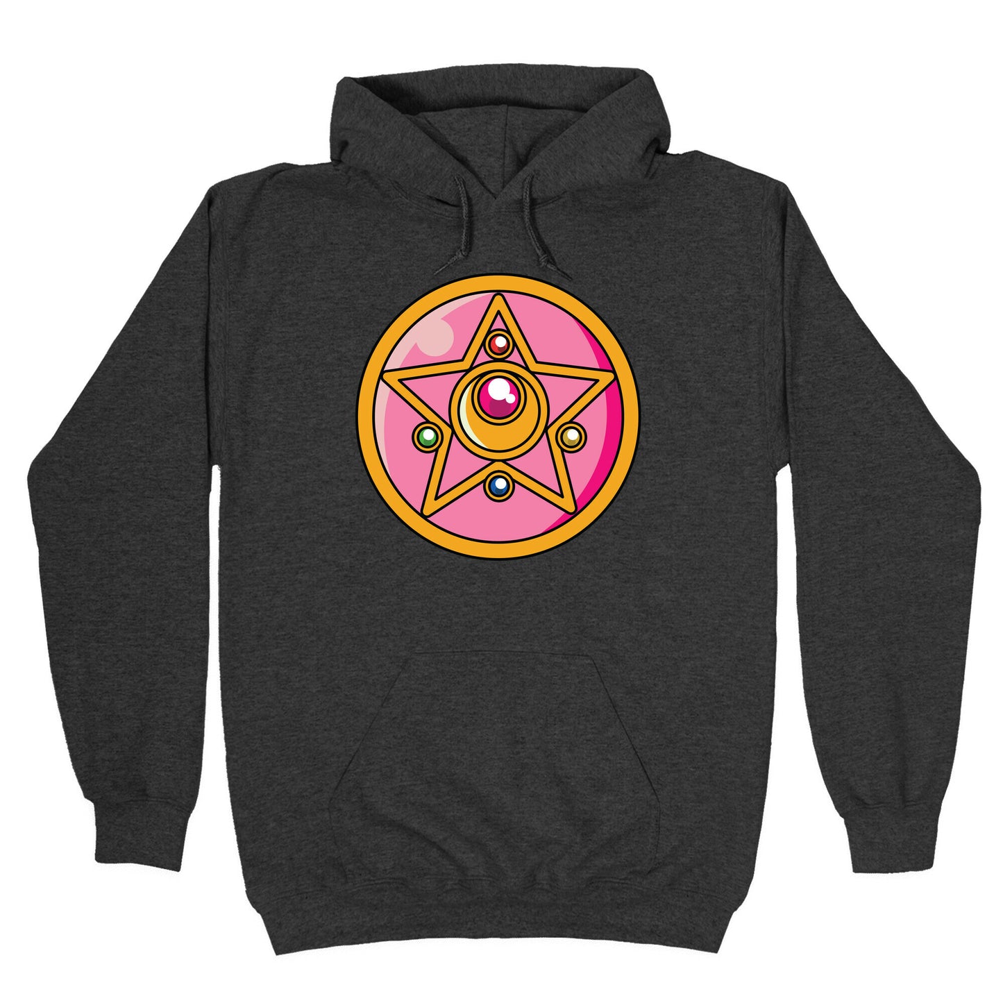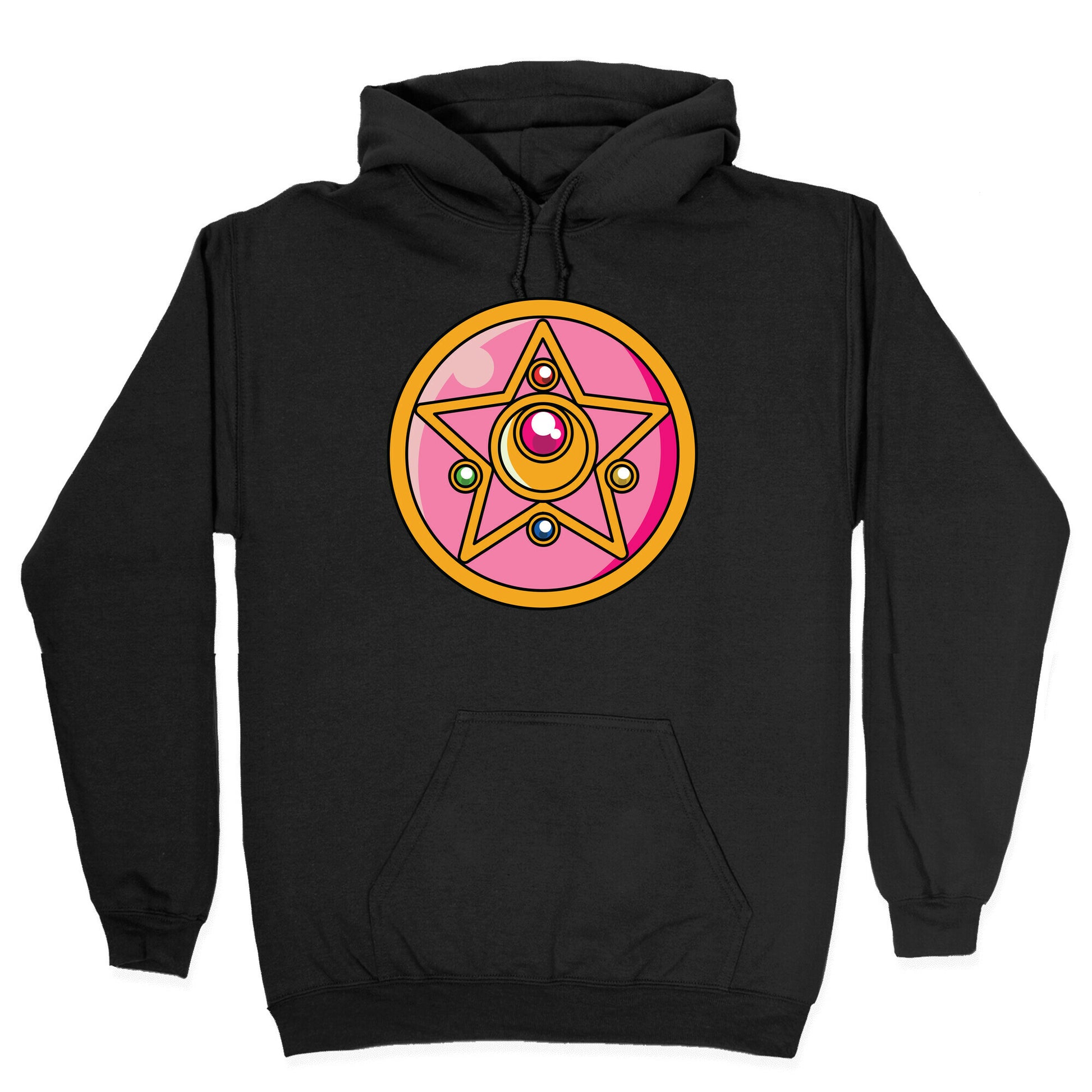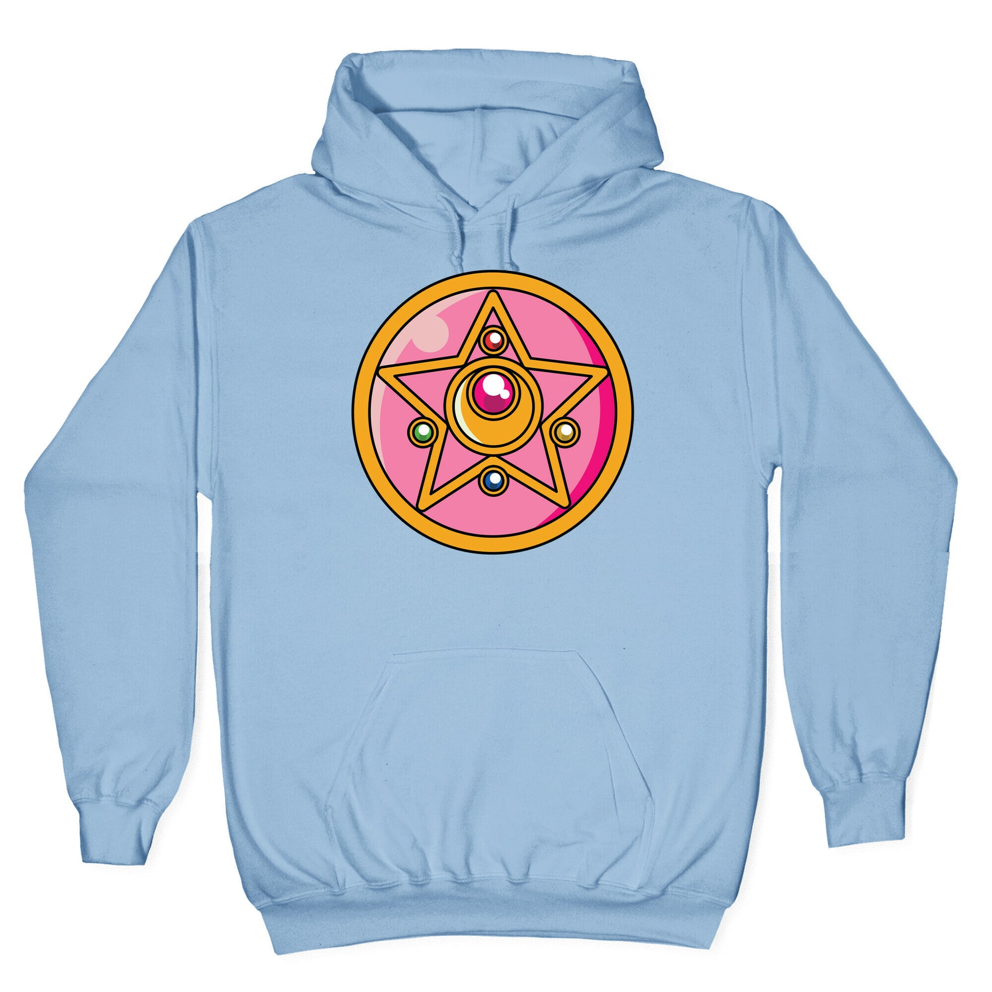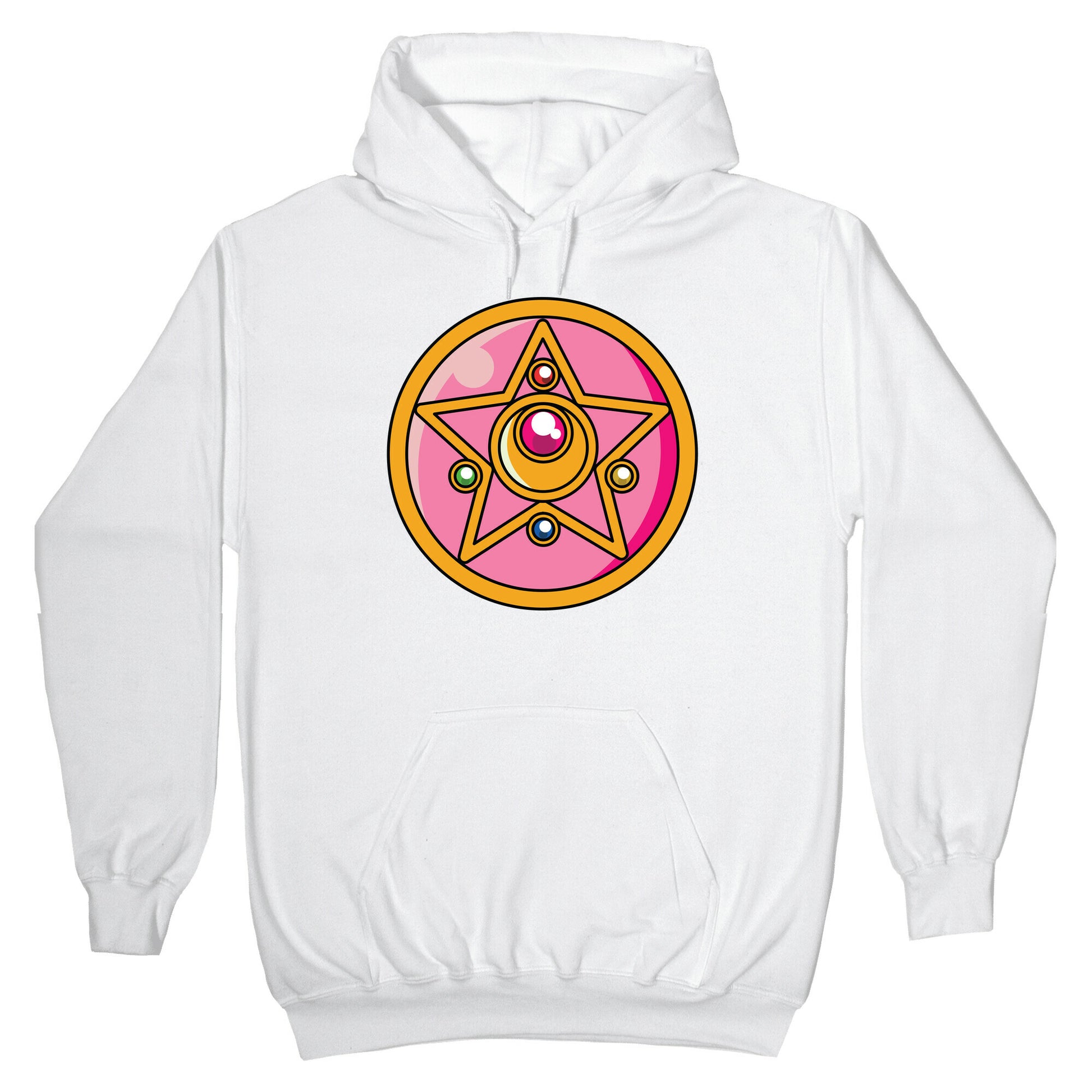 Sailor Moon Crystal Star Brooch. Raise your Crystal Star to the sky and cry out "Moon Crystal Power, Make Up!" Show your love for Sailor Moon's second transformation brooch with this 90s anime-inspired design. Our Unisex Pullover Hoodie is made from a soft 8-ounce fabric They feature a drawstring hood and front kangaroo pocket. Great for layering! Preshrunk for your convenience! Printed in the USA. Made with 50% Cotton and 50% Polyester.