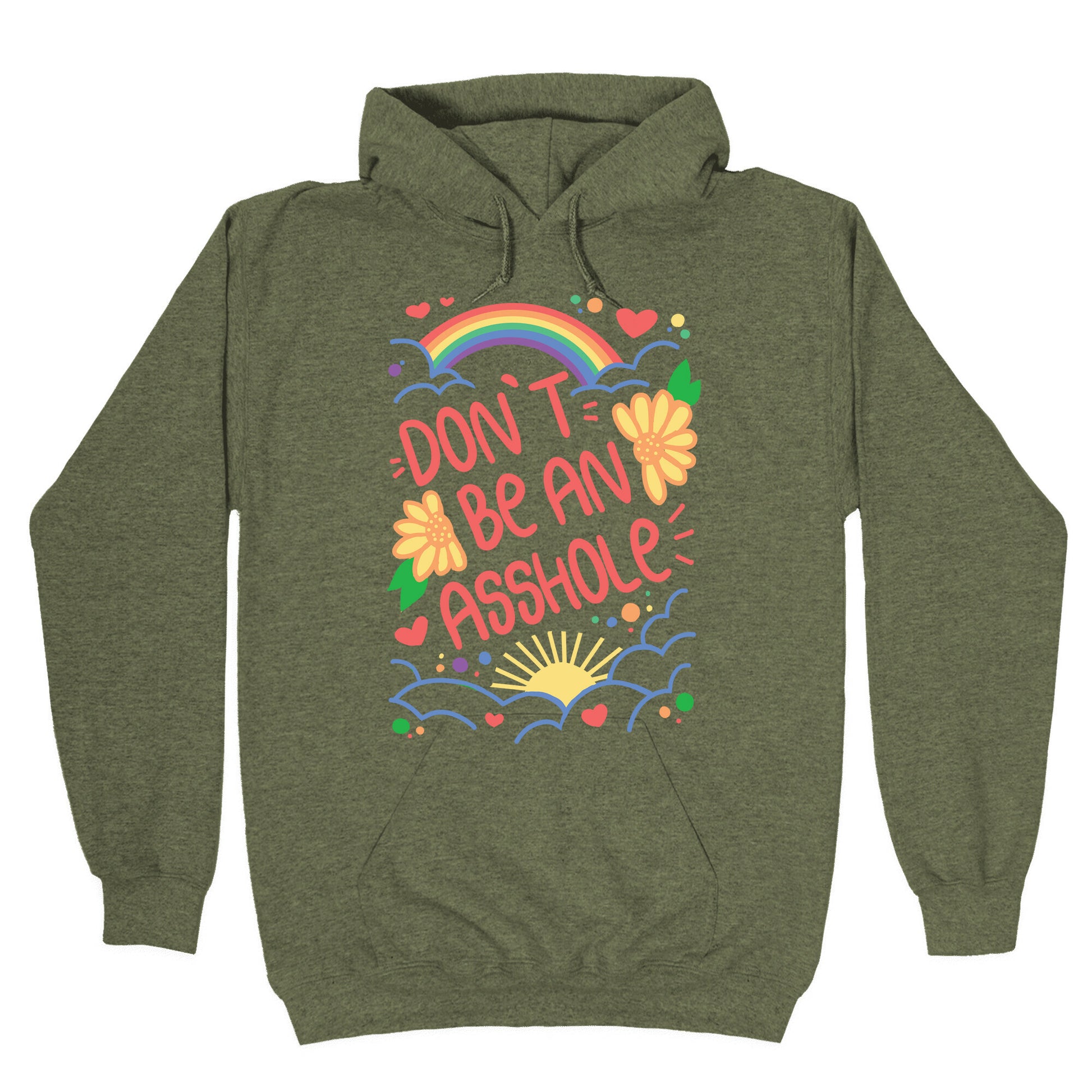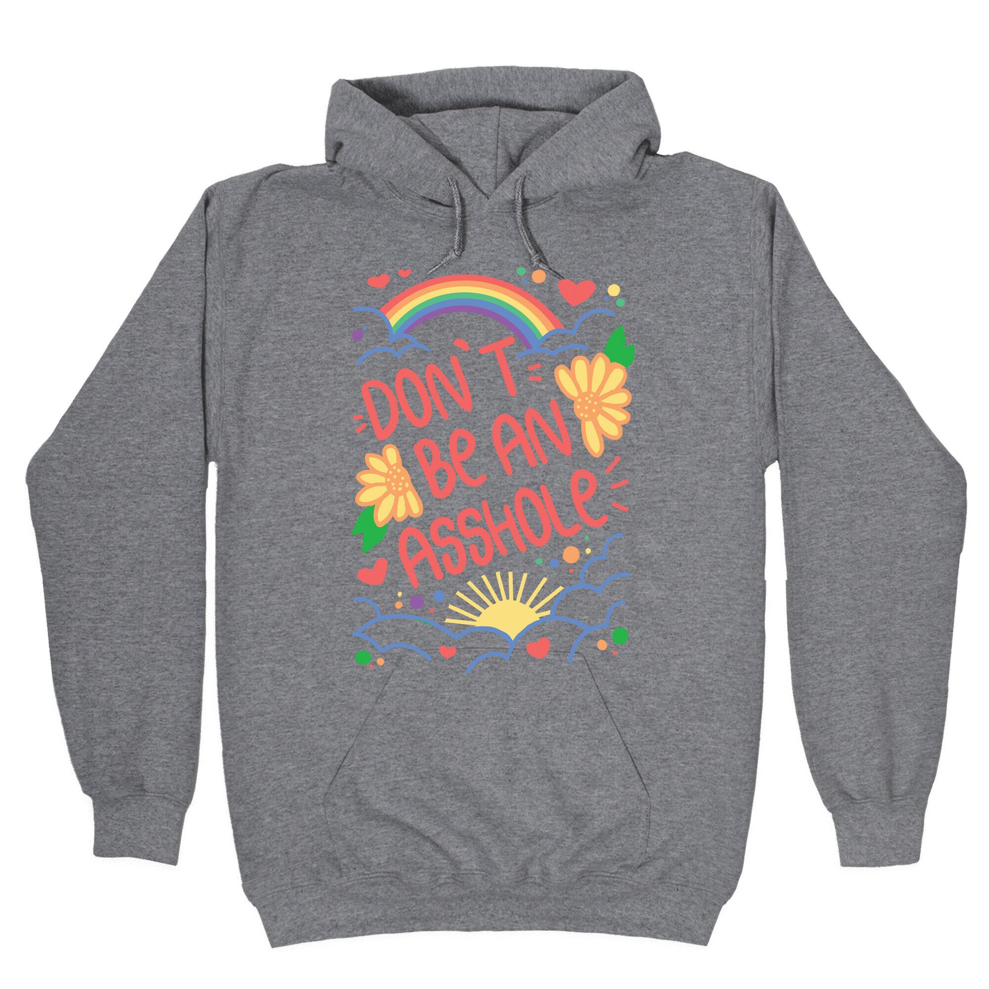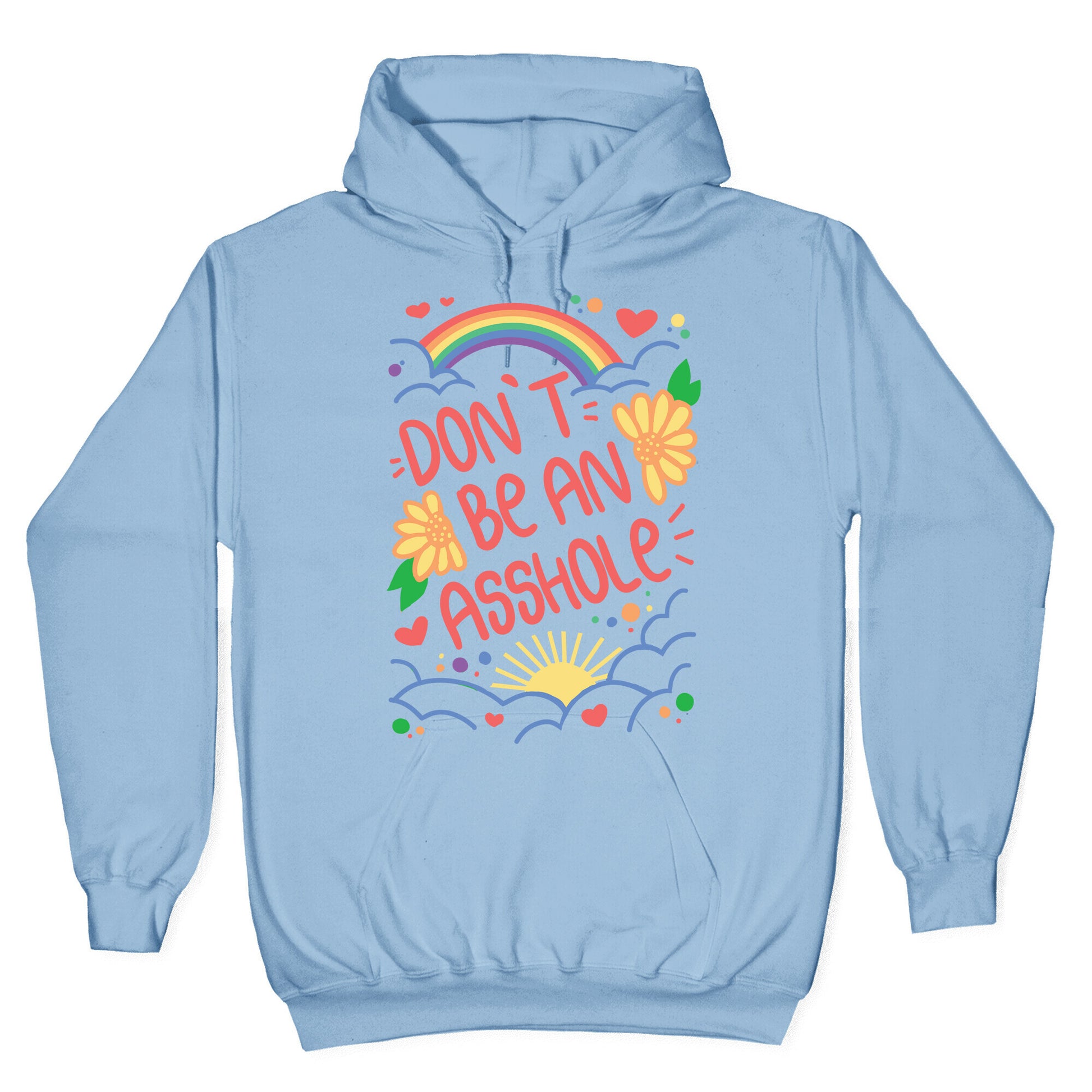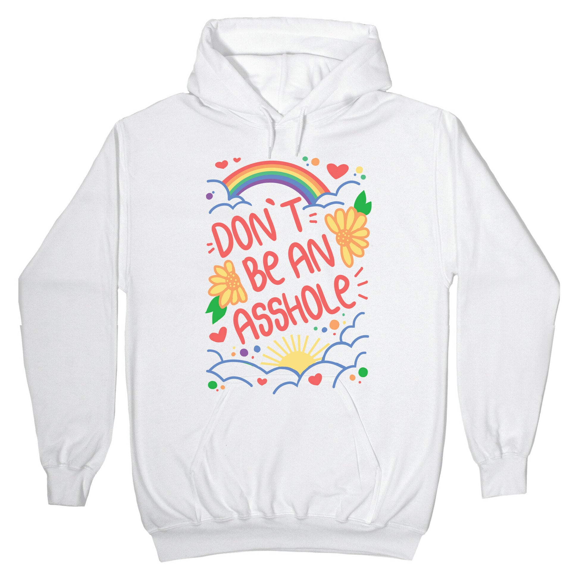 Introducing our newest tee: the ultimate reminder to be kind! Our "Don't Be An Asshole" t-shirt is perfect for those who like to keep things simple and straightforward. This tee is a must-have in today's world, where hate and negativity seem to be everywhere. It's a bold statement that sends the message loud and clear: being nice costs nothing, so why not choose kindness? Wear this tee and uplift those around you. It's a conversation starter that encourages people to be mindful of their words and actions. This "Don't Be An Asshole" t-shirt is a perfect gift for anyone who needs a reminder to spread love, not hate. Order yours today and help us make the world a better place, one tee at a time! Our Unisex Pullover Hoodie is made from a soft 8-ounce fabric They feature a drawstring hood and front kangaroo pocket. Great for layering! Preshrunk for your convenience! Printed in the USA. Made with 50% Cotton and 50% Polyester.