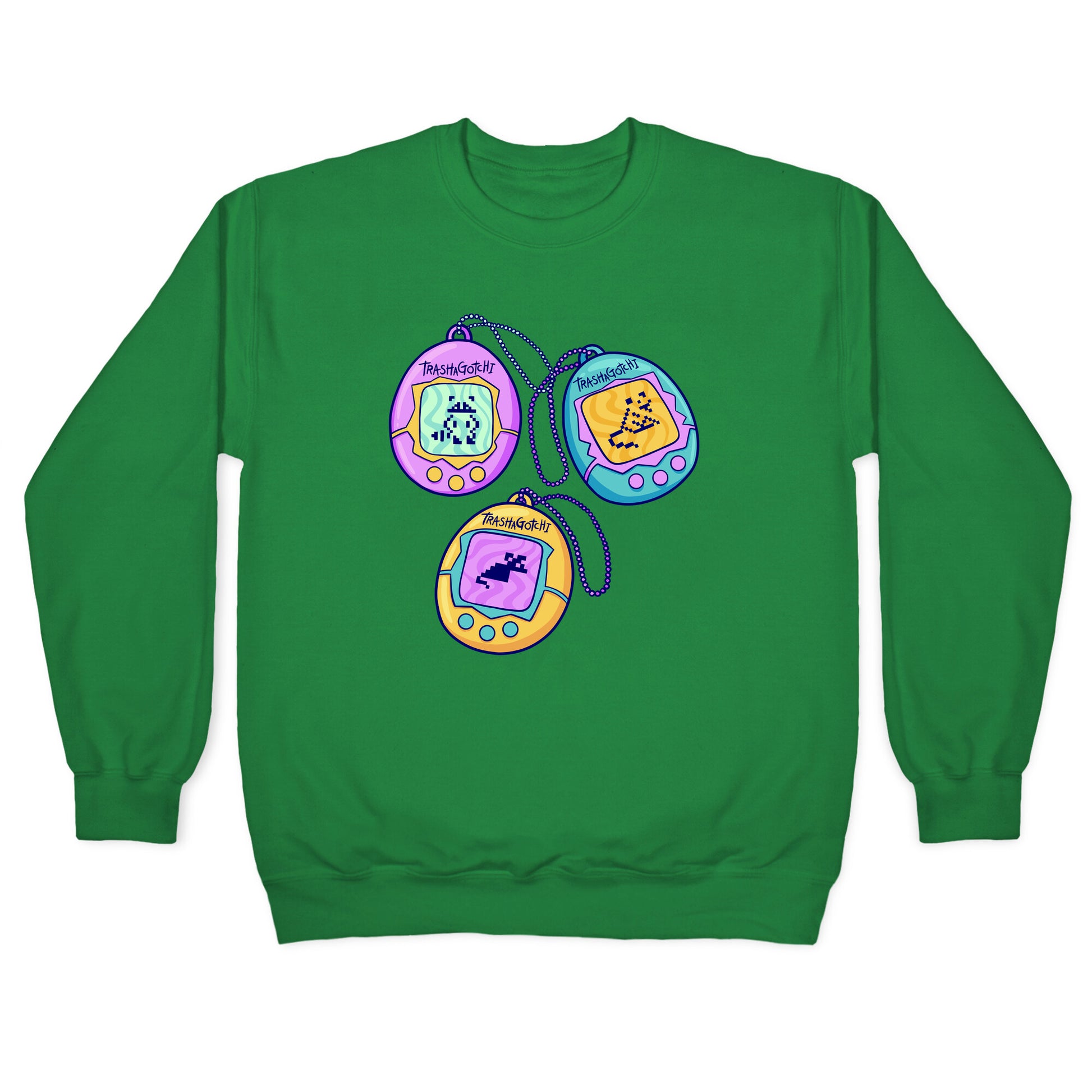 Take care of your own handheld trash pets with this funny, tamagotchi inspired Trashagotchi design, featuring a digital raccoon, opossum, and rat pattern! Perfect for loving nostalgic toys, raccoons, opossums, rats, and trash!Our Unisex Crewneck Sweatshirt is made from a soft 8-ounce fabric, and they feature a crew neck, with sleeve and bottom hems for durability. Great for layering. Preshrunk for your convenience! Printed in the USA. Made with 50% Cotton and 50% Polyester.
