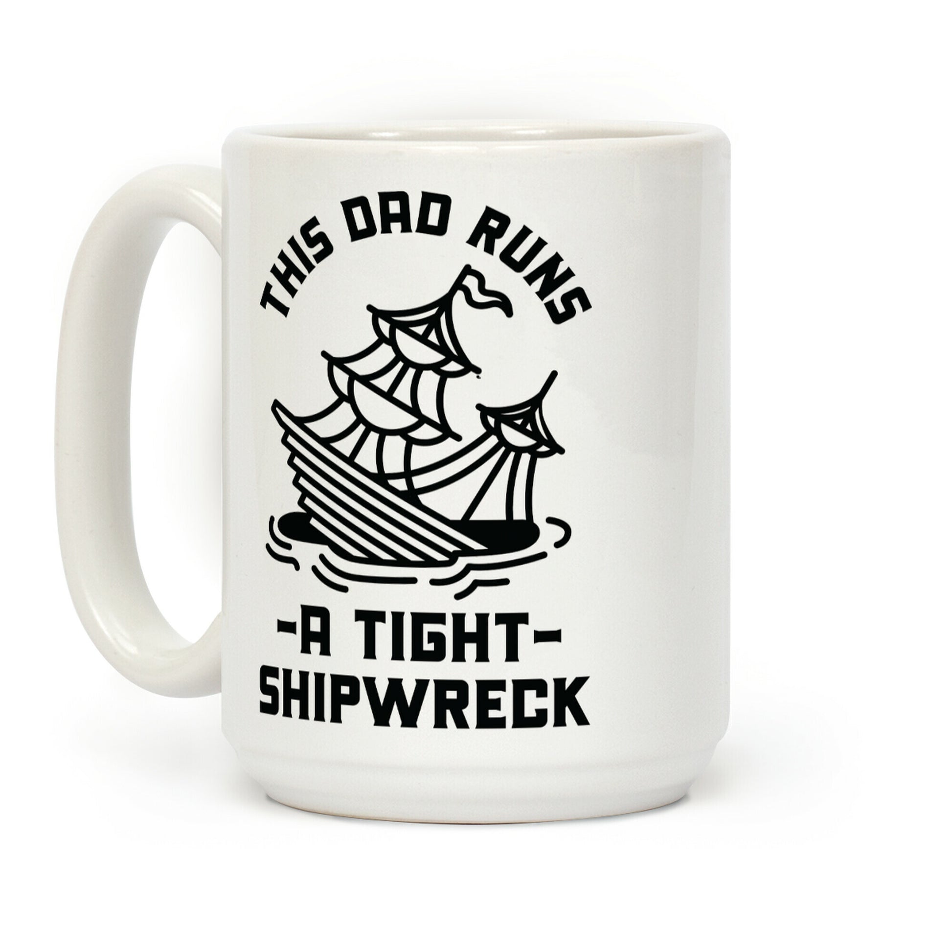 This Dad runs a tight shipwreck. Show that you're the captain of a hot mess of a family this funny sassy design featuring an illustration of a sinking ship. Our Mug features large handles for easy gripping and a wrap-around print. These heavy-duty Mugs are both dishwasher and microwave safe. Printed in the USA.