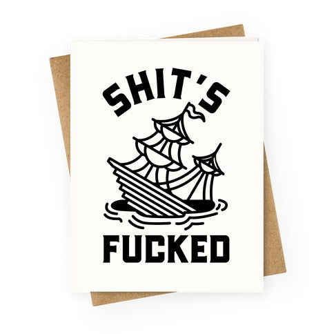 Shit's Fucked Sinking Ship Greeting Card