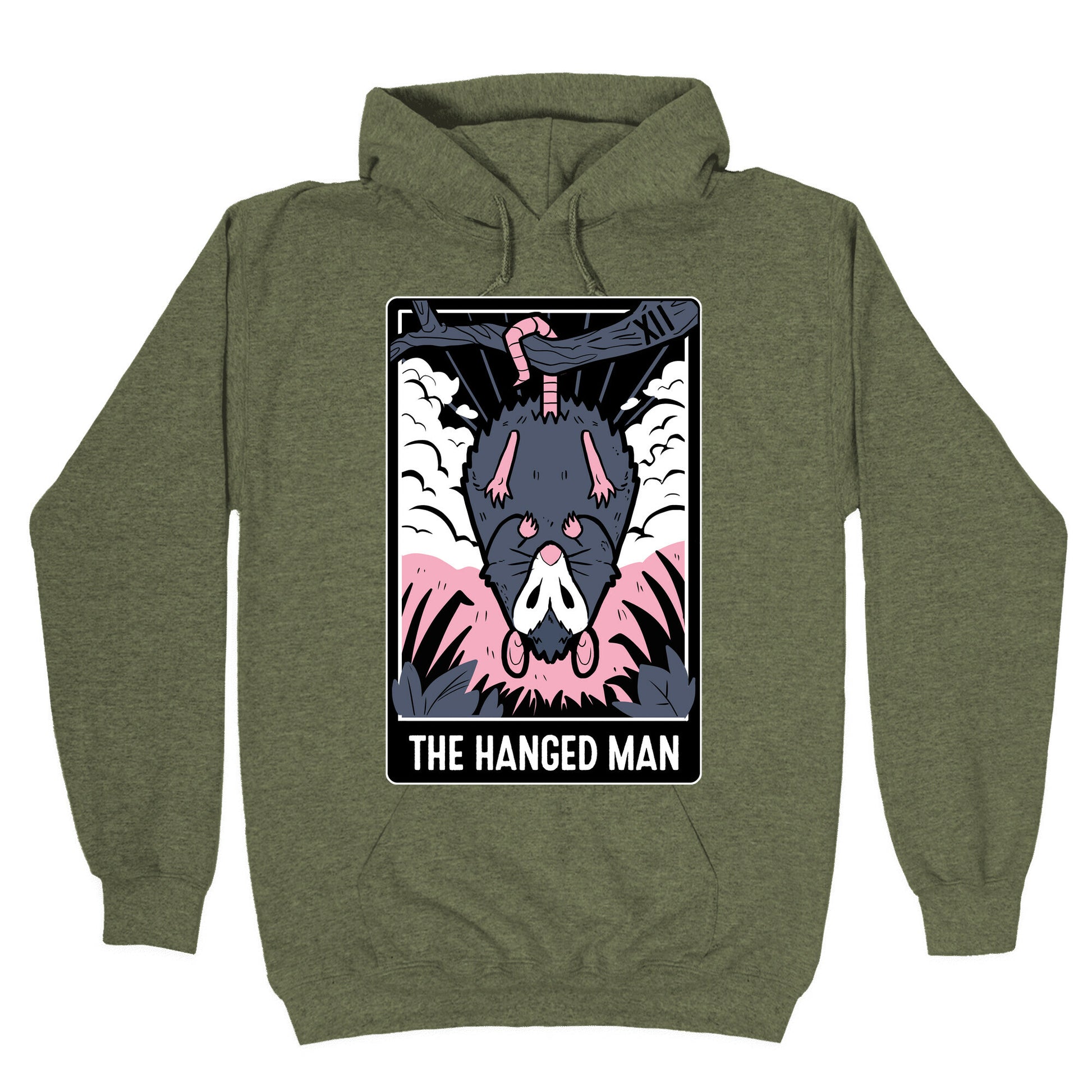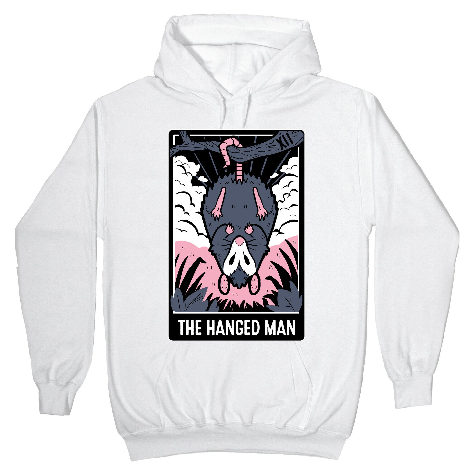 This card represents sacrifice... of your garbage, that is! We predict that the trash cats will visit your garbage tonight. Suspend yourself in time with this possum themed tarot design! Our Unisex Pullover Hoodie is made from a soft 8-ounce fabric They feature a drawstring hood and front kangaroo pocket. Great for layering! Preshrunk for your convenience! Printed in the USA. Made with 50% Cotton and 50% Polyester.