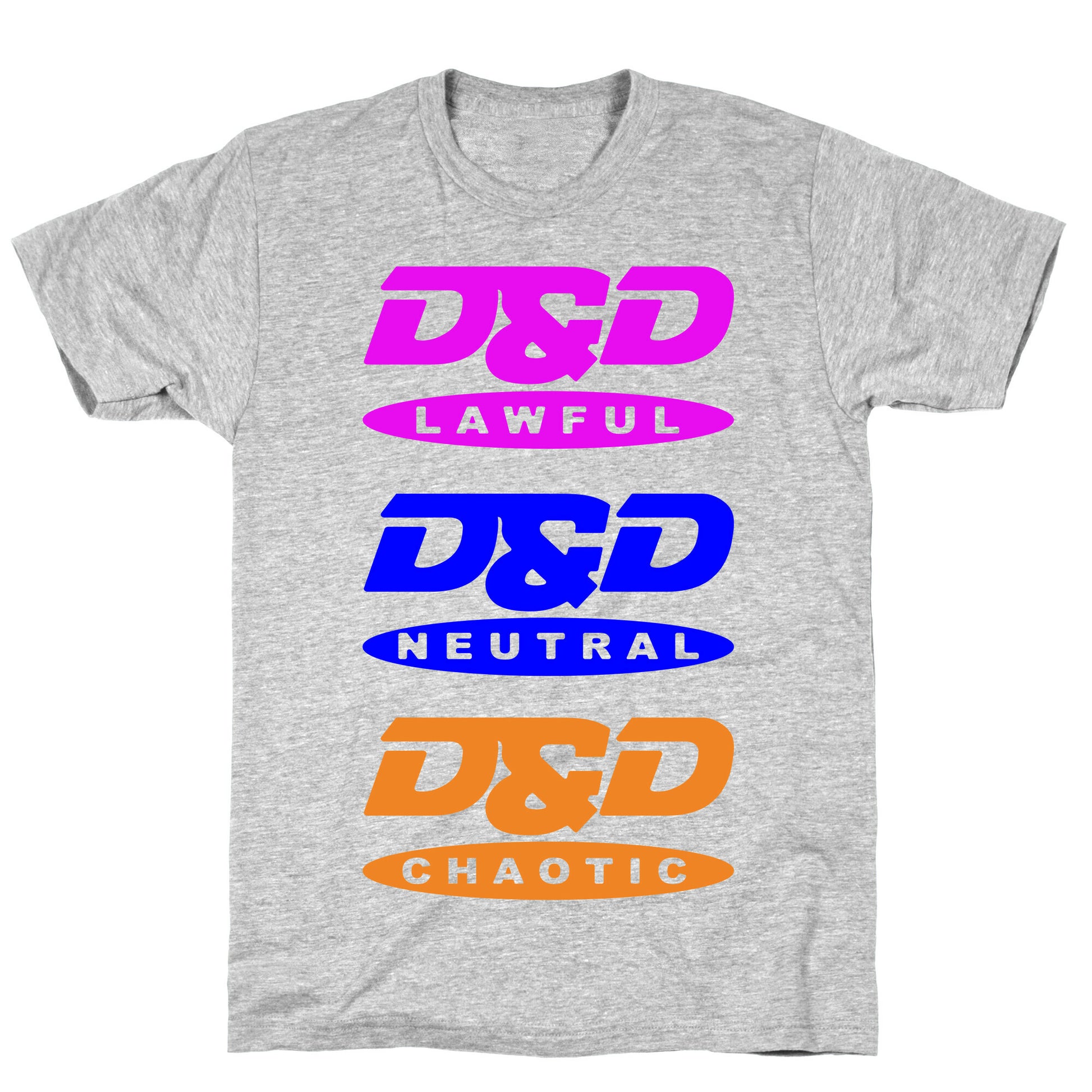 If you're as obsessed with RPGs as we are, then we know you'll geek out over our Dungeons and Dragons DVD logo parody tee! With this clever design, you can display your love for parodies and vintage gaming in one hilarious statement piece. The Dungeons and Dragons logo has never been cooler, featuring a clever reference to DVD loading screens. This is the perfect shirt to wear to gaming conventions or to show off to your fellow D&D enthusiasts. It also makes for a great conversation starter for all pop-culture lovers or anyone who's nostalgic for the days of loading screens. Get yours today and add some nerd-chic to your wardrobe! Our fitted Unisex Cotton tee is made from an exceedingly soft 100% ring spun cotton. It features a crew neckline with hemmed sleeves and bottom for durability. Preshrunk for your convenience! Printed in the USA. Made with 100% Ring Spun Cotton. Athletic Gray is made up of 90% cotton and 10% polyester. Other heathered colors are made of 52% cotton and 48% polyester.