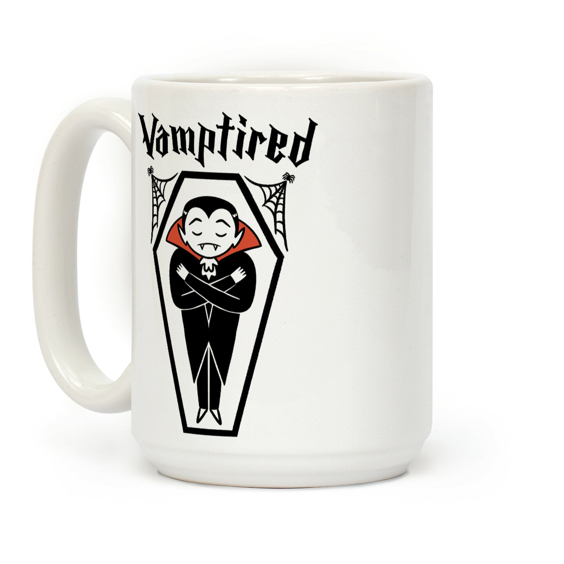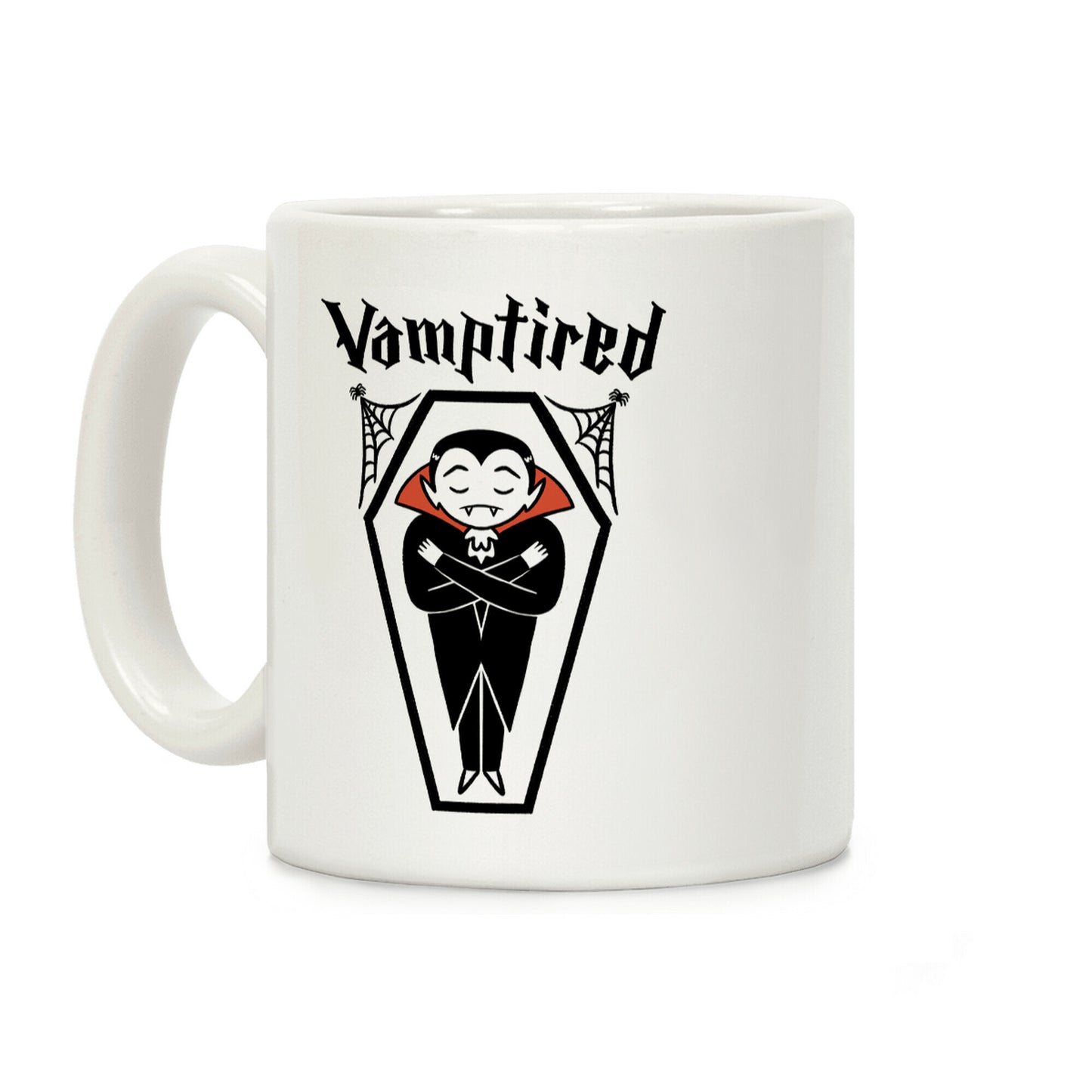 I vant to take a nap. Show you're sleepy spooky energy with this, "Vamptired" tired vampire design! Perfect for halloween, classic monsters, and sleepin' in a coffin! Our Mug features large handles for easy gripping and a wrap-around print. These heavy-duty Mugs are both dishwasher and microwave safe. Printed in the USA