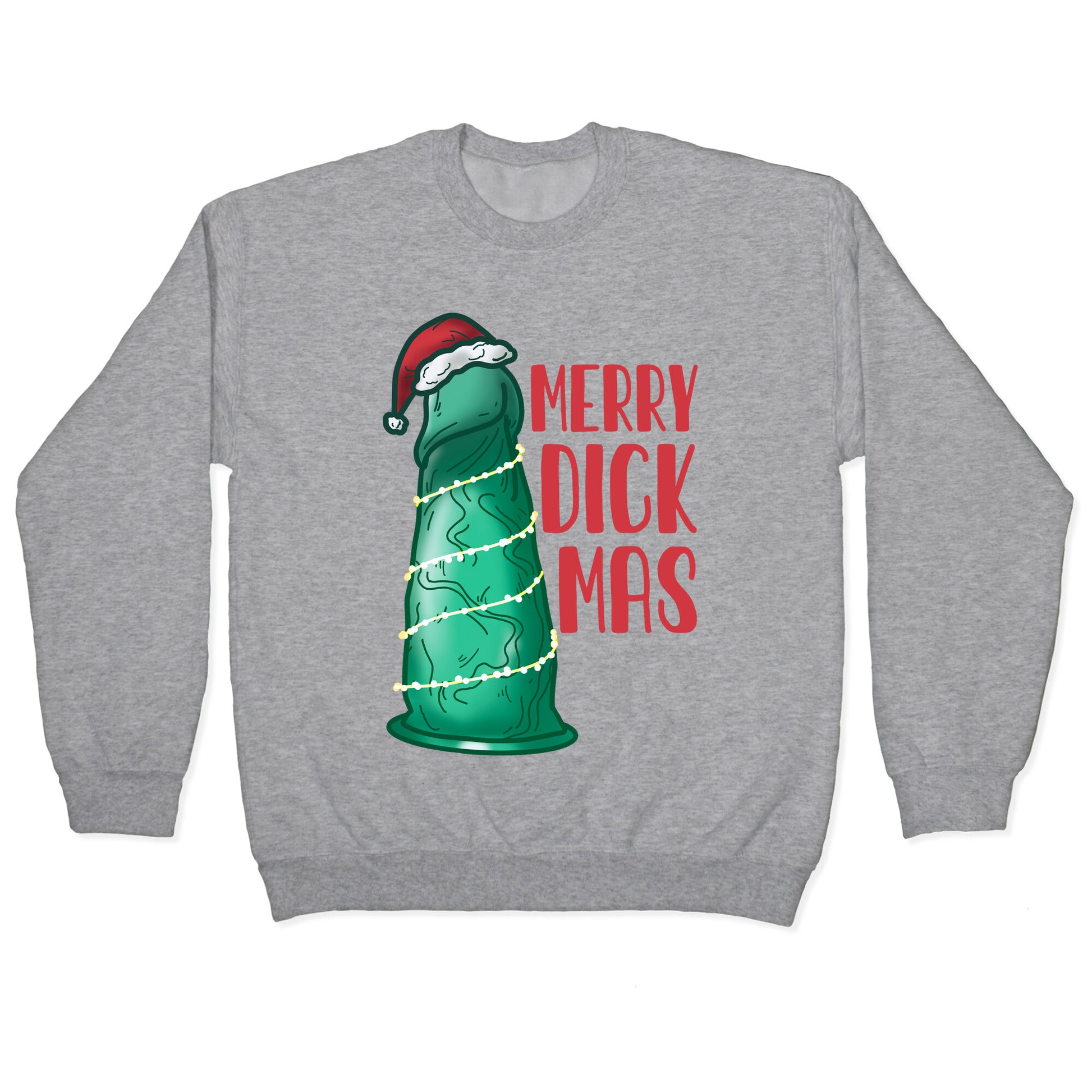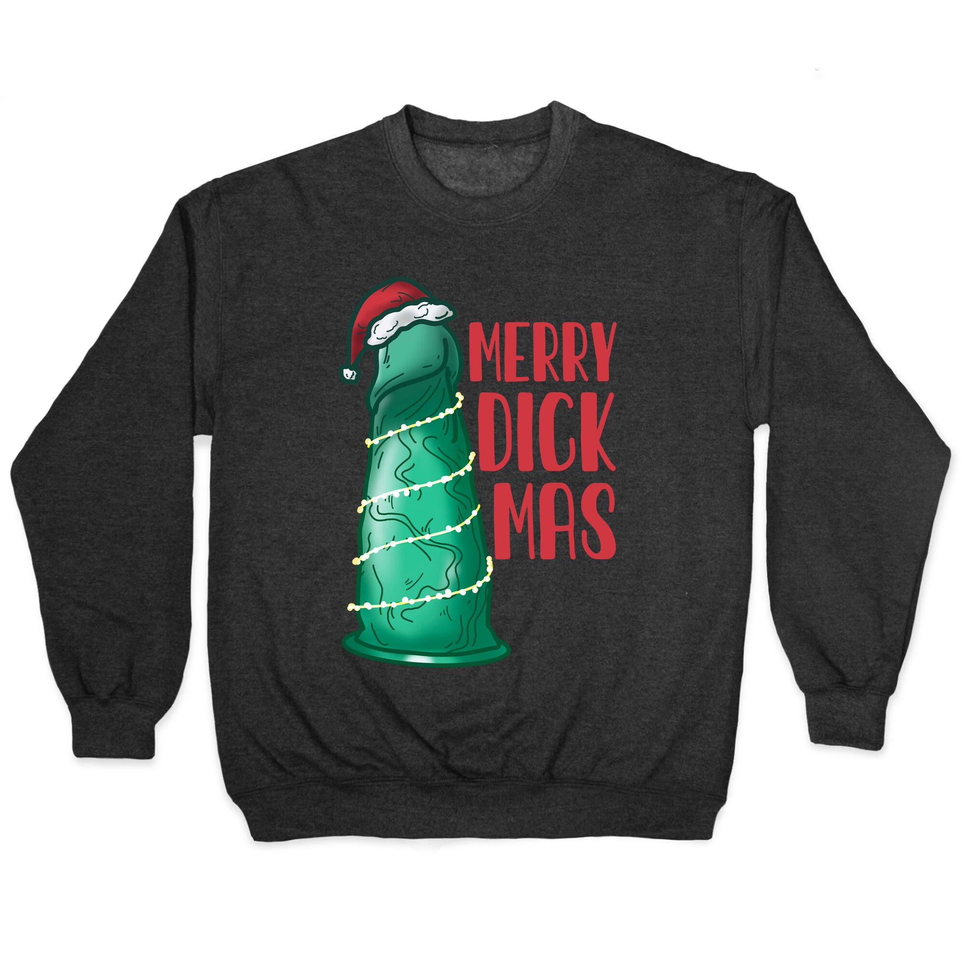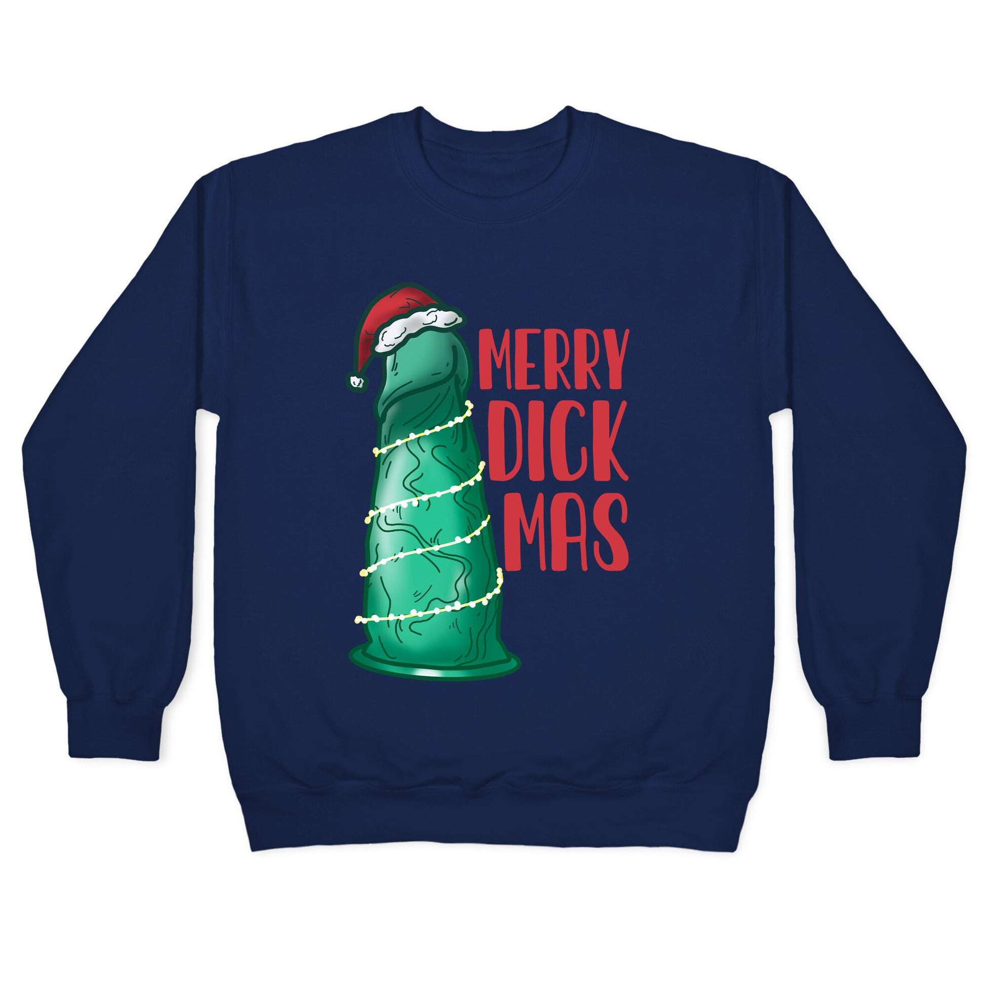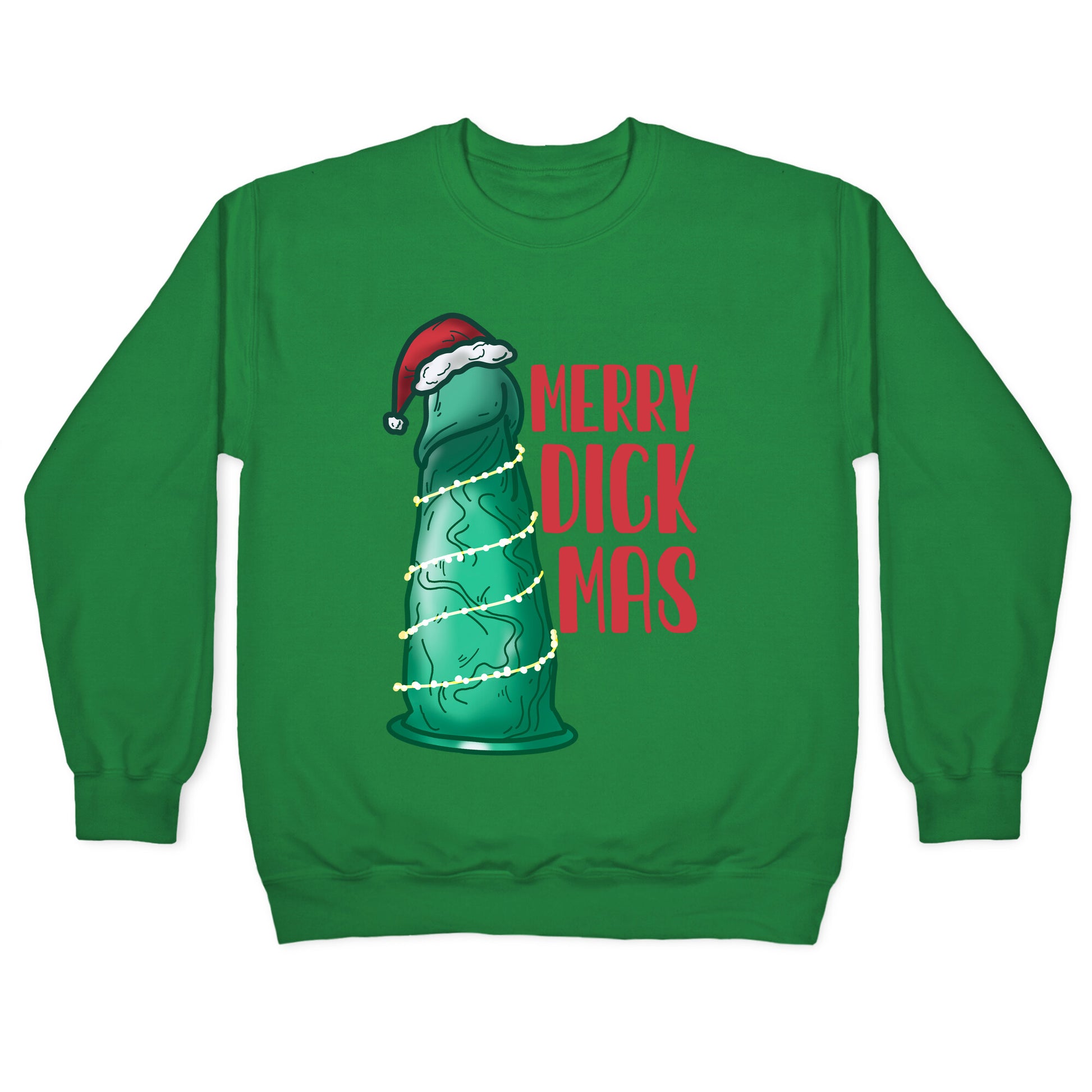 Merry Dickmas! Dick the halls with boughs of holly! Have yourself an NSFW Christmas with this festive green dildo, or shall I say, sexually liberated Christmas tree...Our Unisex Crewneck Sweatshirt is made from a soft 8-ounce fabric, and they feature a crew neck, with sleeve and bottom hems for durability. Great for layering. Preshrunk for your convenience! Printed in the USA. Made with 50% Cotton and 50% Polyester.