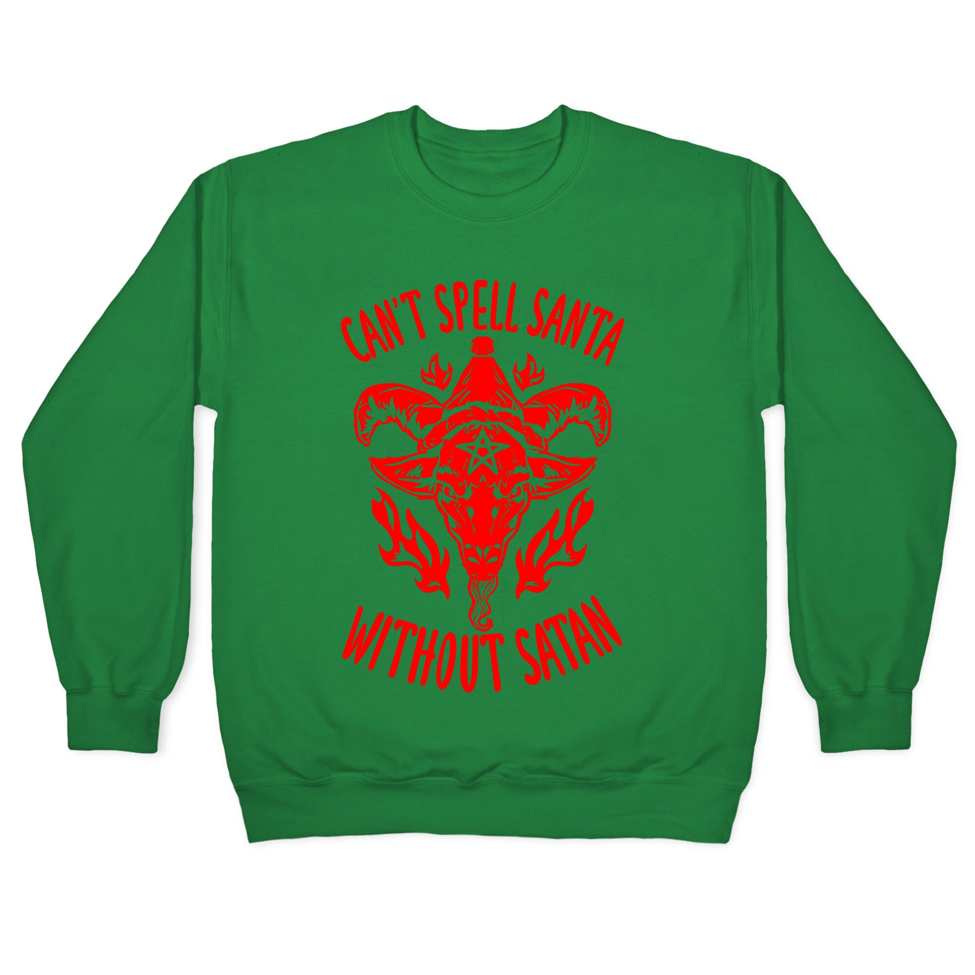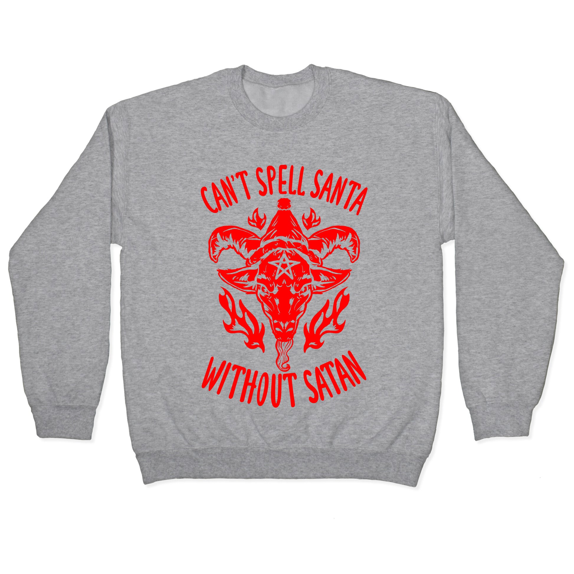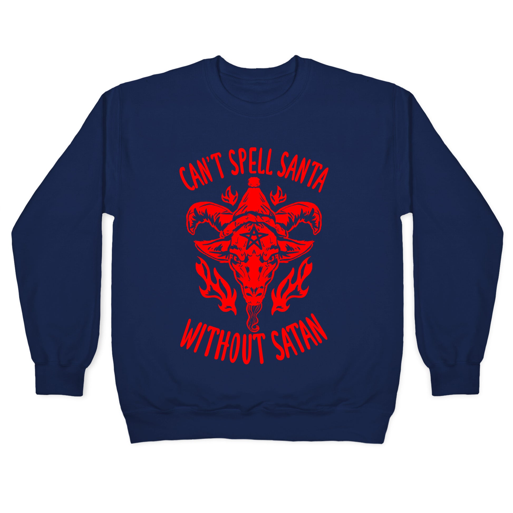 Can't Spell Santa Without Satan, facts, they have the same letters, coincidence? I think not! This design shows baphomet,the satanic goat, and it's got a lil Santa hat, cute and devilish!Our Unisex Crewneck Sweatshirt is made from a soft 8-ounce fabric, and they feature a crew neck, with sleeve and bottom hems for durability. Great for layering. Preshrunk for your convenience! Printed in the USA. Made with 50% Cotton and 50% Polyester.
