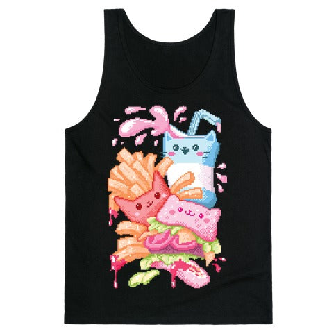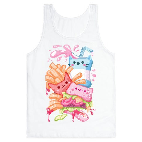 Purrger and fries Pixel Art Tank Top