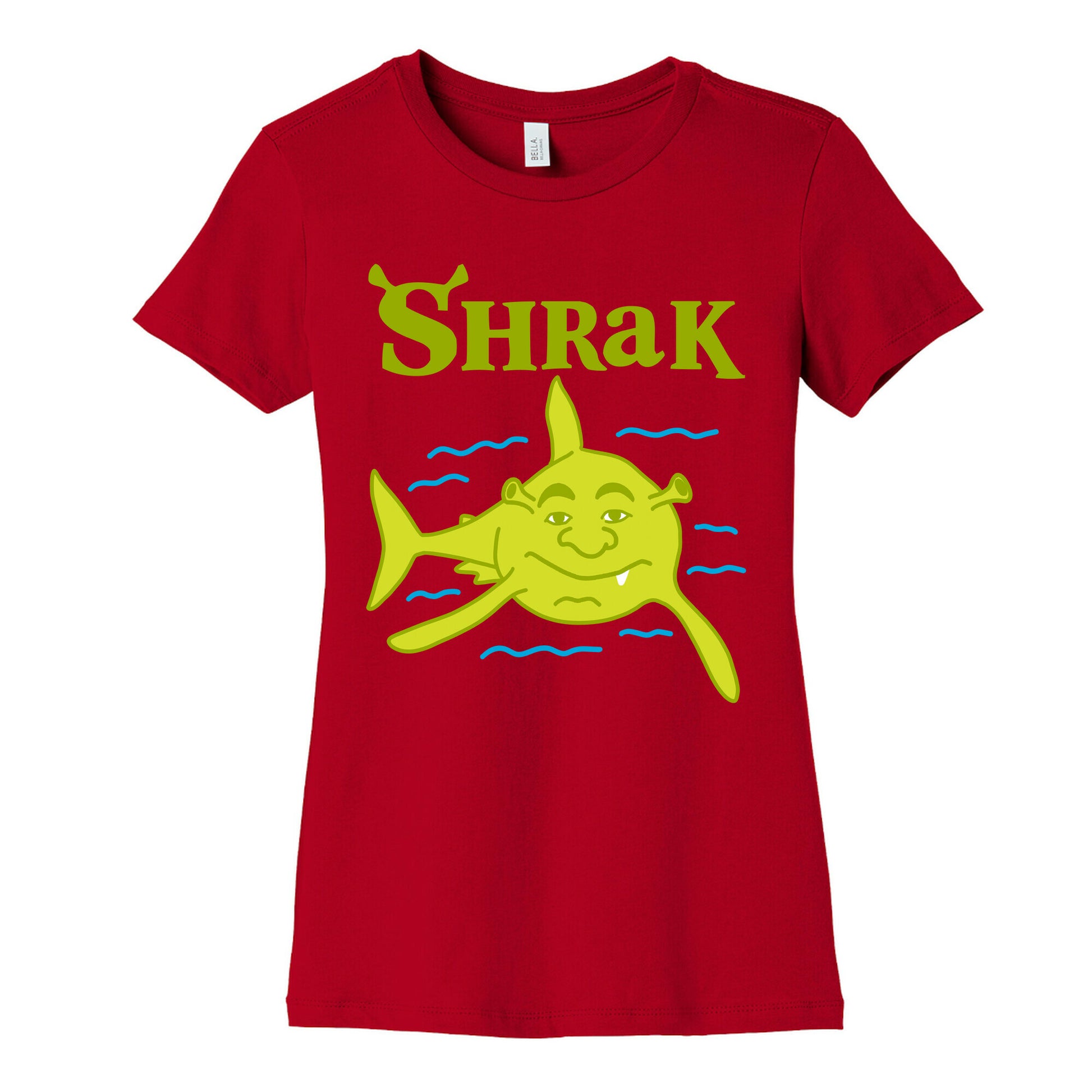 Switch the "a" and "r" in shark and you get shrak, which kinda sounds like some-dun-dun-dun-dun-dundun-body called SHREK! We shall call him Shrak, Shrek The Shark, a ruler of swamps and seas.Our slim fit Women’s Cotton Tees, are made with exceedingly soft 100% cotton. They feature a relaxed neckline, and the sleeves and bottom, are hemmed for durability. Preshrunk for your convenience! Printed in the USA. Made with 100% Cotton. Colors such as gray, is made up of 90% cotton and 10% polyester, and deep pink is made up of 50% cotton and 50% polyester.