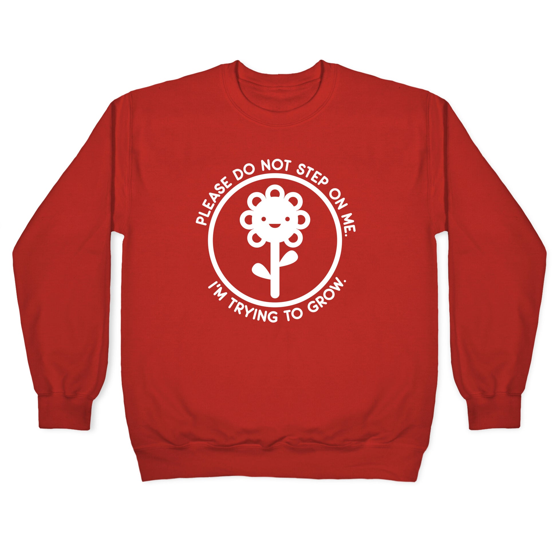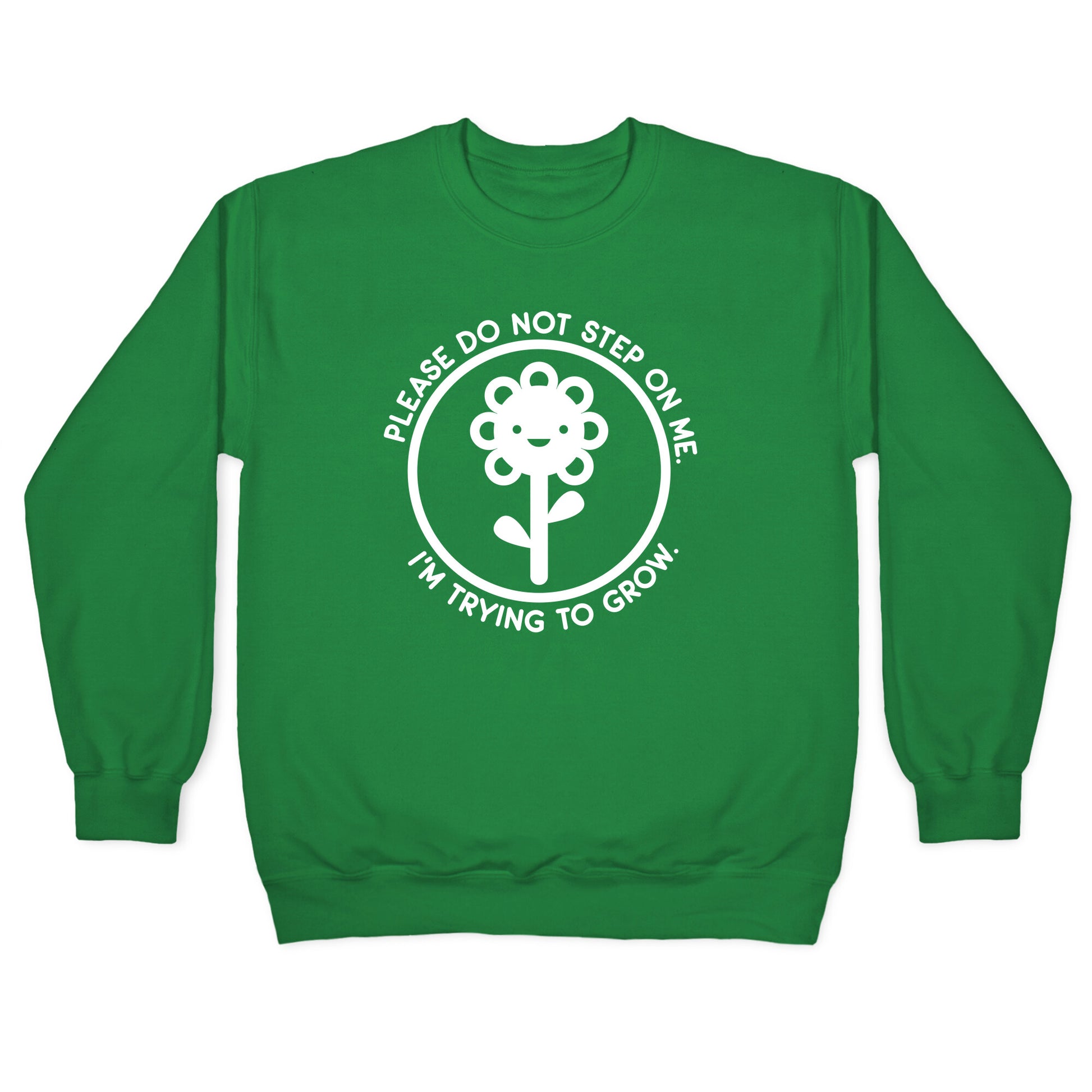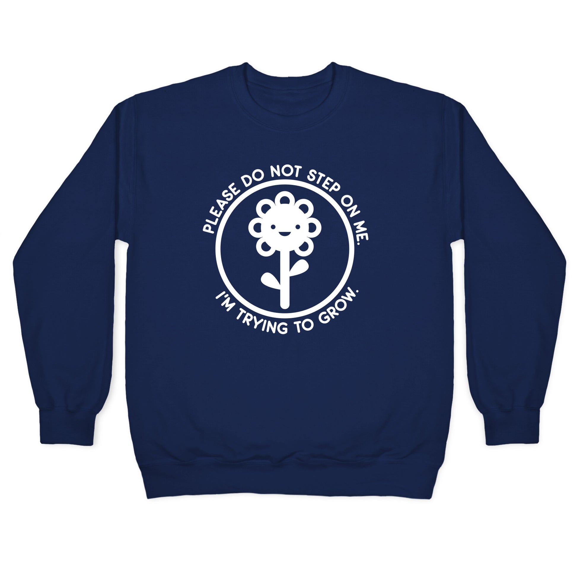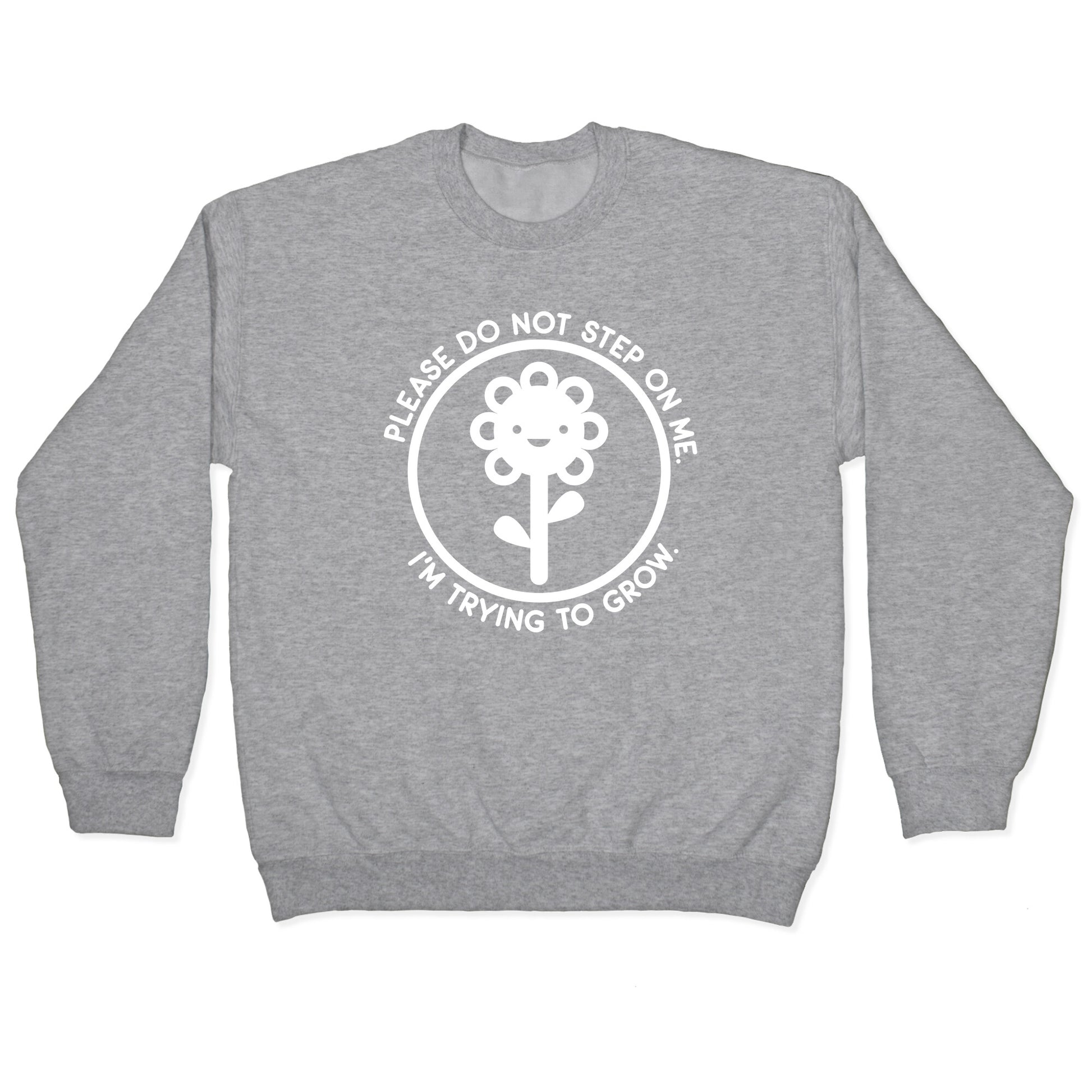 Please do not step on me, I'm trying to grow, thx. Show off your delicate growth as a tender flower with this, "Please Do Not Step On Me I'm Trying To Grow" flower sign design!Our Unisex Crewneck Sweatshirt is made from a soft 8-ounce fabric, and they feature a crew neck, with sleeve and bottom hems for durability. Great for layering. Preshrunk for your convenience! Printed in the USA. Made with 50% Cotton and 50% Polyester.