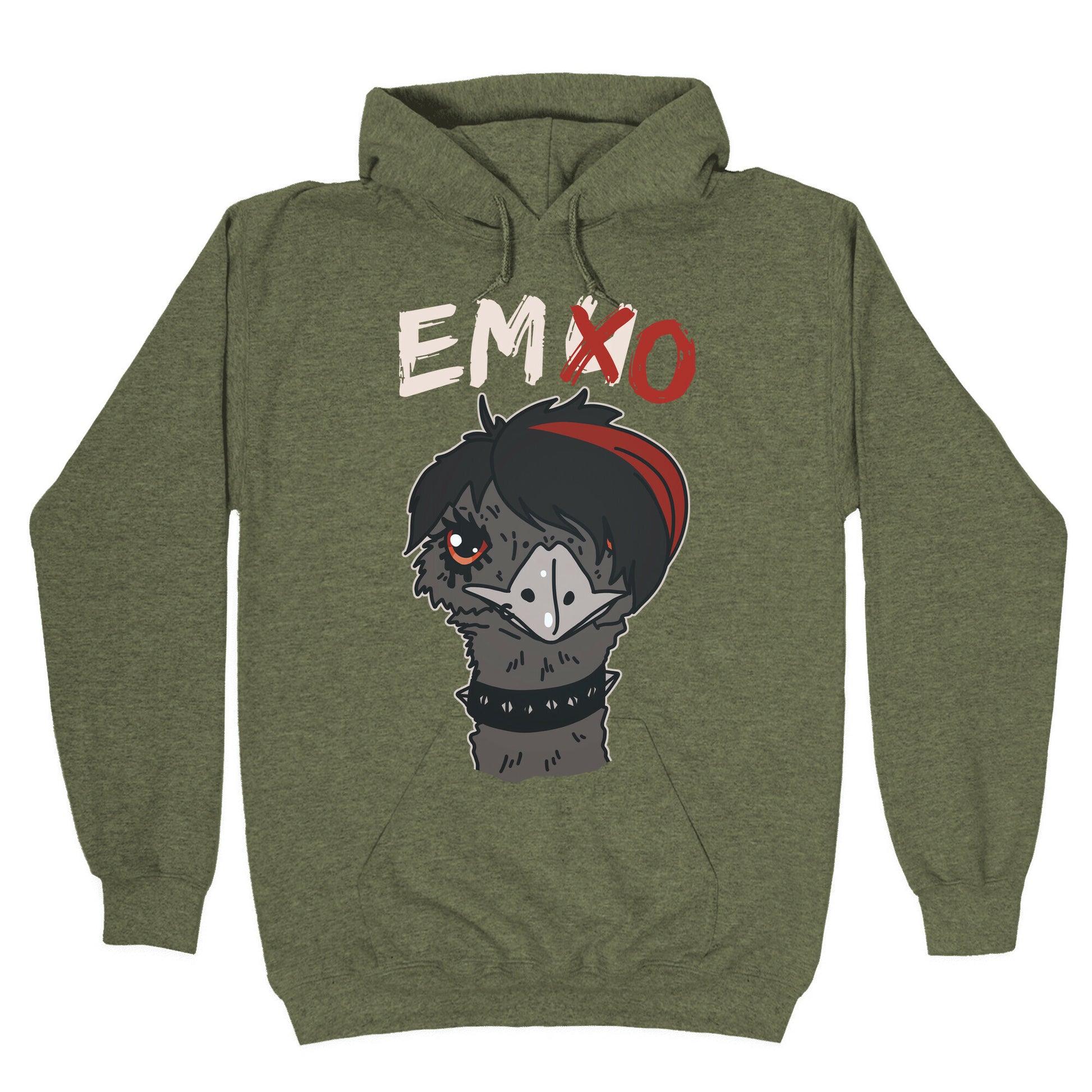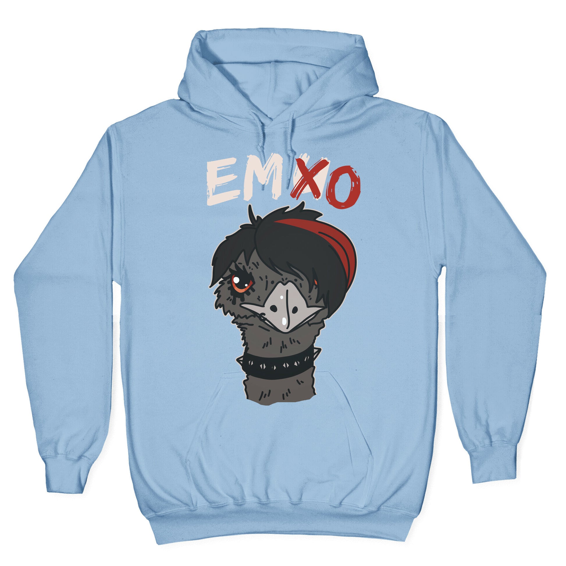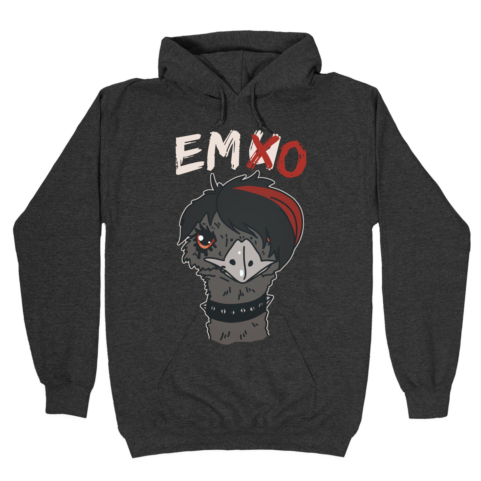 Introducing our hilarious t-shirt design, "Emo X Emu." Our feathered friend isn't afraid to show off their inner emo side with their signature eyeliner and band tees. And if you thought emus couldn't rock out to My Chemical Romance, think again! This bird is here to break stereotypes and prove that even animals can have an emo phase. From the black chokers to the emo hairdo, this emu is the perfect representative of the emo culture. With "u" crossed out, this bird embraces all things emo as the self-proclaimed "emo-est bird of all birds." Who knew that birds could be so relatable? Wear this tee and show off your own emo side, whether it's listening to classic emo tunes or crying while watching The Notebook. Let Emo X Emu be the conversation starter you've been waiting for. Our Unisex Pullover Hoodie is made from a soft 8-ounce fabric They feature a drawstring hood and front kangaroo pocket. Great for layering! Preshrunk for your convenience! Printed in the USA. Made with 50% Cotton and 50% Polyester.