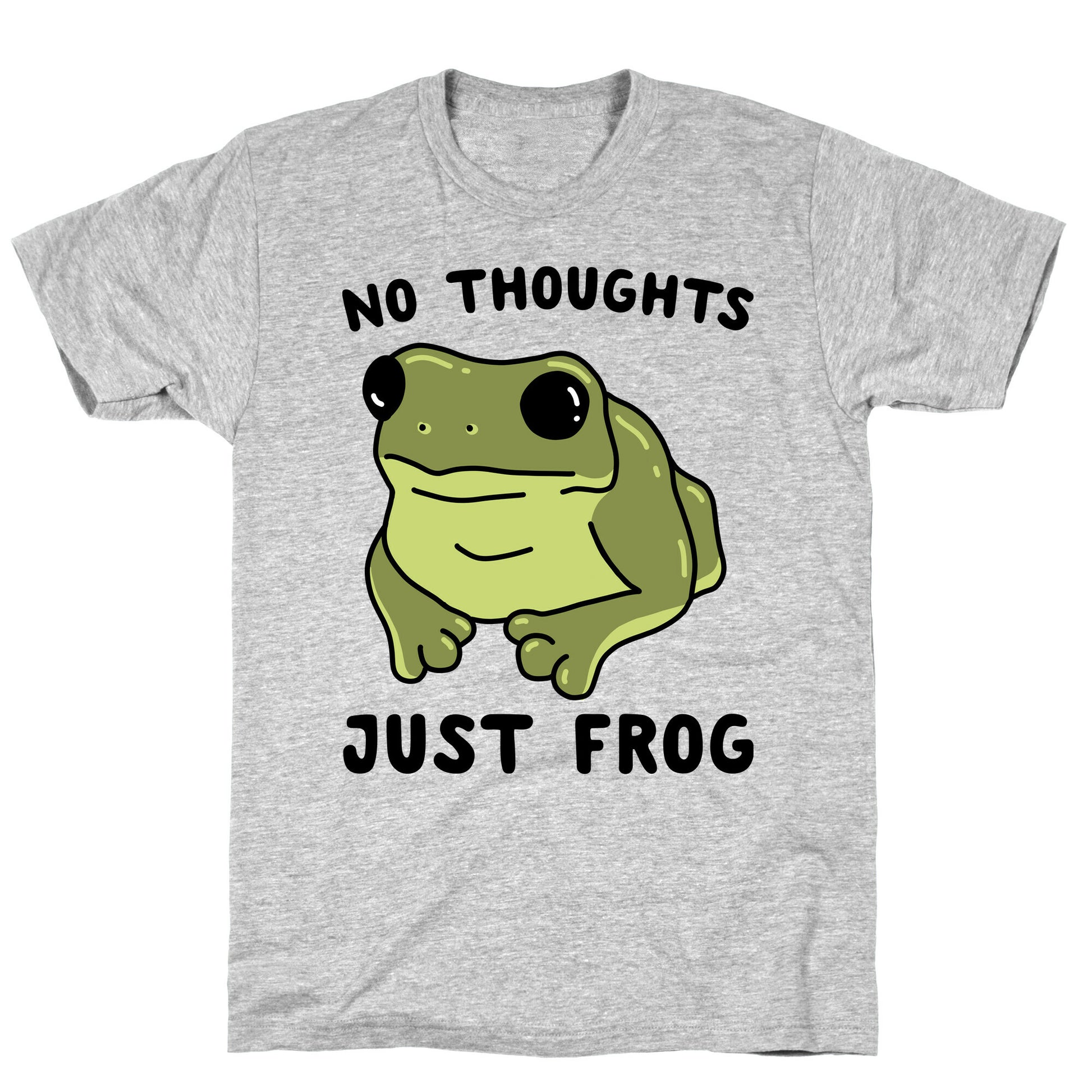No thoughts, just frog. Show off your love of living your simple, little frog life with this, "No Thoughts, Just Frog" funny, frog meme design! Perfect for just vibing. Our fitted Unisex Cotton tee is made from an exceedingly soft 100% ring spun cotton. It features a crew neckline with hemmed sleeves and bottom for durability. Preshrunk for your convenience! Printed in the USA. Made with 100% Ring Spun Cotton. Athletic Gray is made up of 90% cotton and 10% polyester. Other heathered colors are made of 52% cotton and 48% polyester.