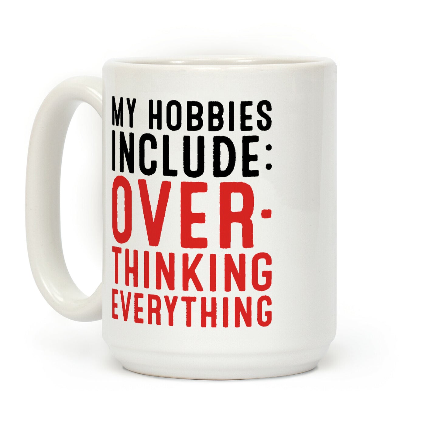 My hobbies include overthinking absolutely everything! Show off your true hobby of overthinking with this funny, overthinking, hobby coffee mug design. Our Mug features large handles for easy gripping and a wrap-around print. These heavy-duty Mugs are both dishwasher and microwave safe. Printed in the USA