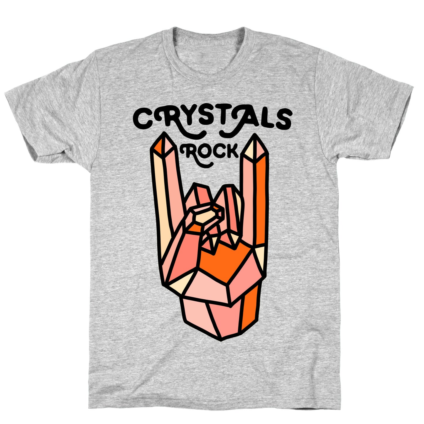 Show off your love of crystals and puns with this funny, "Crystals Rock" healing crystal puns. Perfect for loving occult, crystal collecting, and rocking on with the horns. Our fitted Unisex Cotton tee is made from an exceedingly soft 100% ring spun cotton. It features a crew neckline with hemmed sleeves and bottom for durability. Preshrunk for your convenience! Printed in the USA. Made with 100% Ring Spun Cotton. Athletic Gray is made up of 90% cotton and 10% polyester. Other heathered colors are made of 52% cotton and 48% polyester.