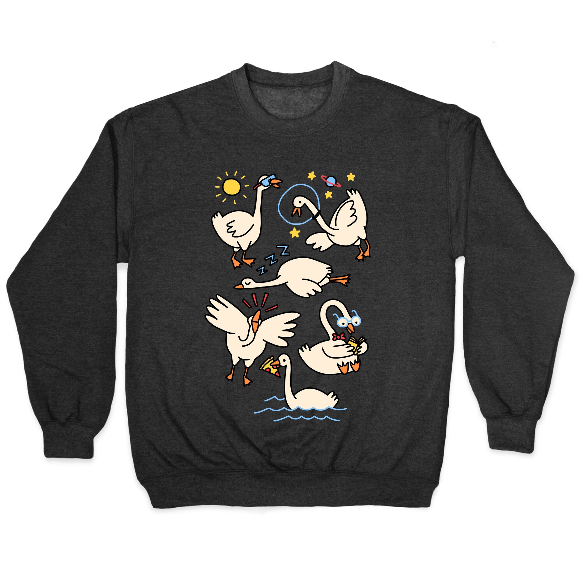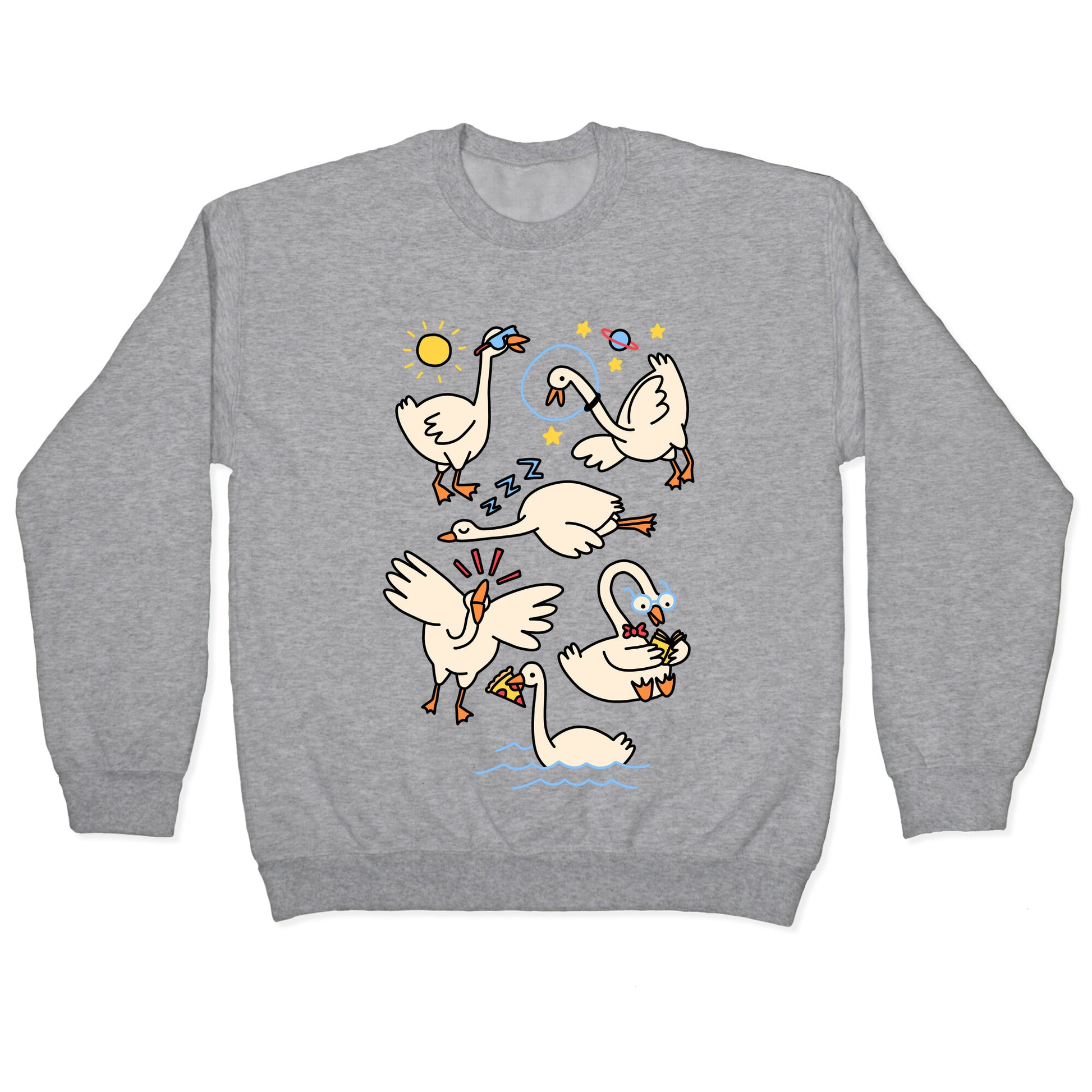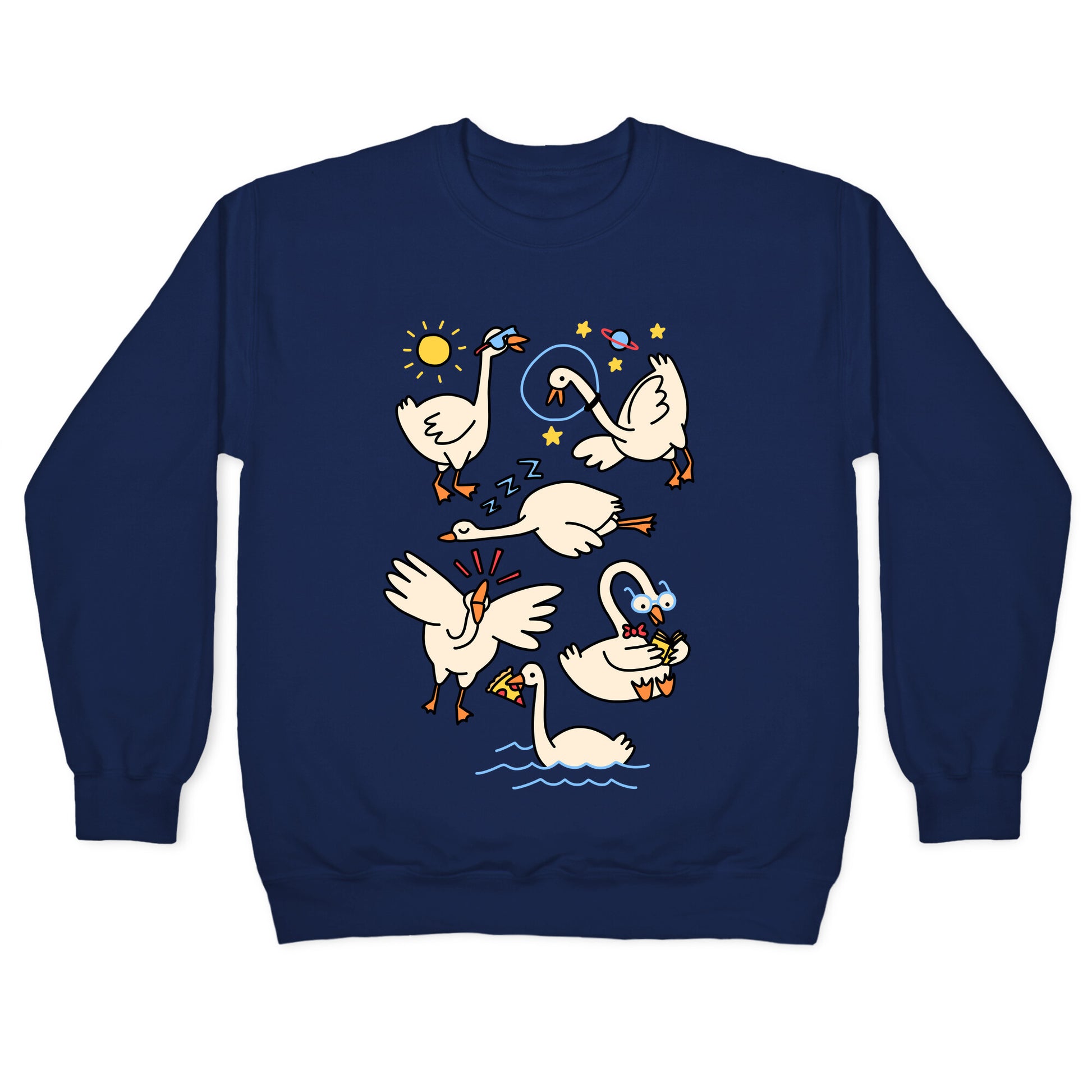 Just a silly goose living their best silly goose life! Show off your love of geese, space, reading, pizza, sleeping, sunshine, and being a honking goose time!Our Unisex Crewneck Sweatshirt is made from a soft 8-ounce fabric, and they feature a crew neck, with sleeve and bottom hems for durability. Great for layering. Preshrunk for your convenience! Printed in the USA. Made with 50% Cotton and 50% Polyester.