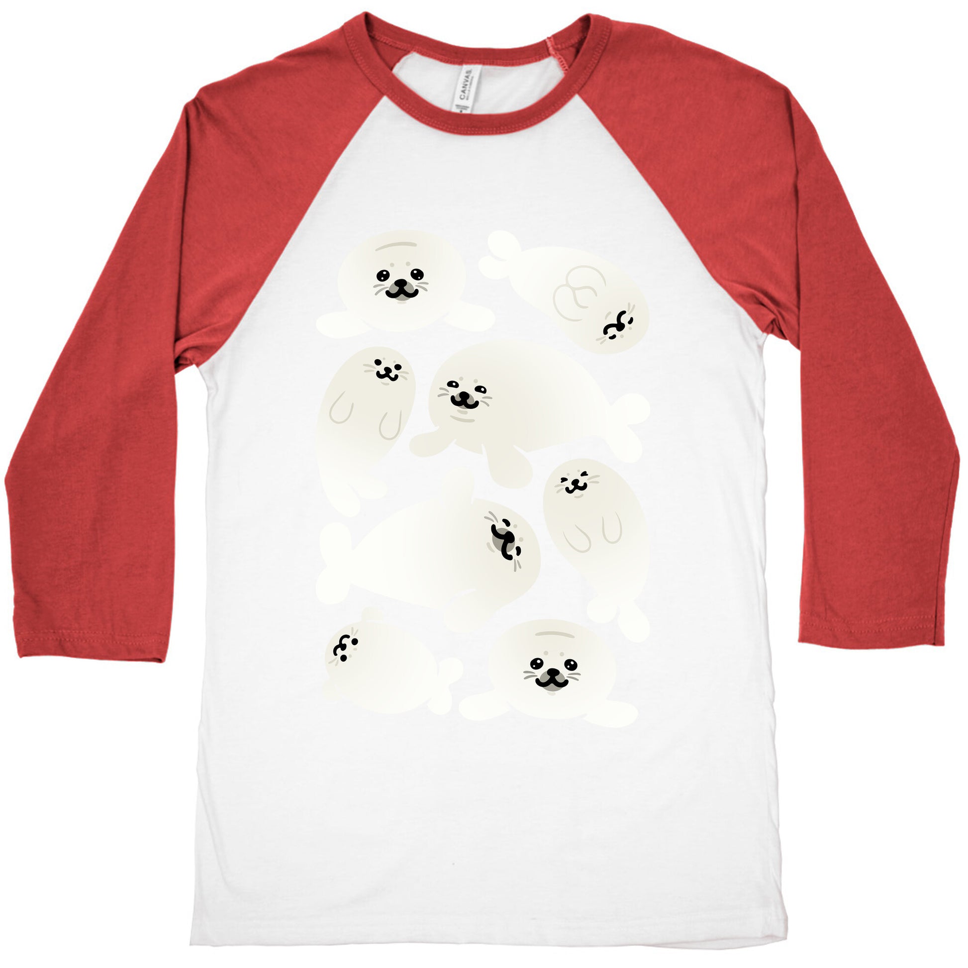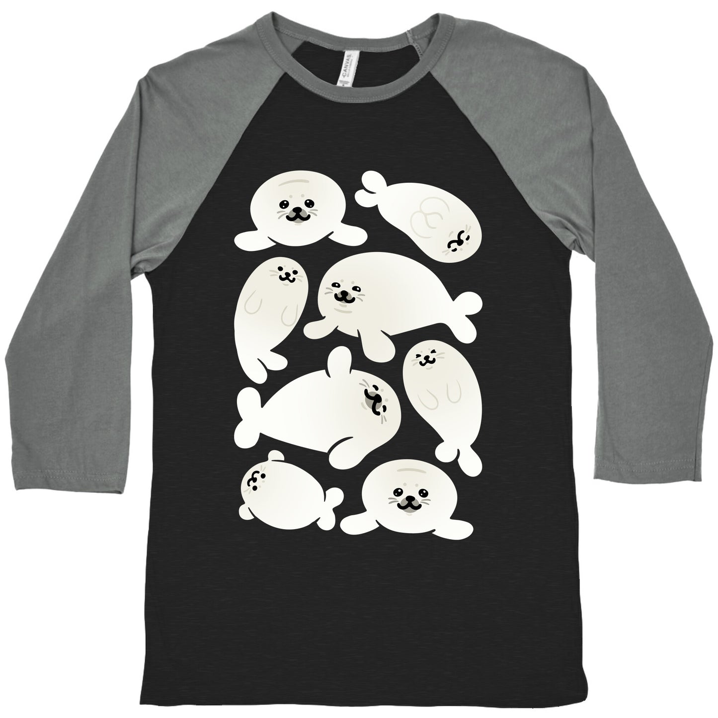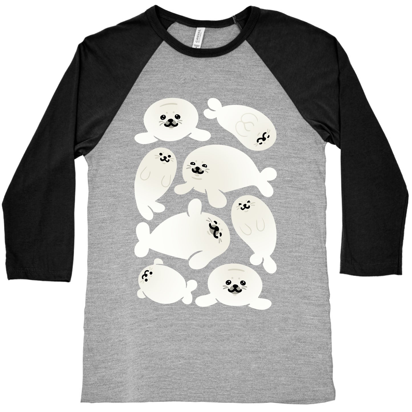 Show off your love for cute, squishy, silly and round baby seals with this baby seal pattern study design! Our exceedingly soft and relaxed fit Tri-Blend Baseball Tee features a three-quarter length sleeve, crew neck, fun contrasting color sleeves and neck trim. Preshrunk for your convenience! Printed in the USA. Made with 50% Polyester, 25% Cotton and 25% Rayon