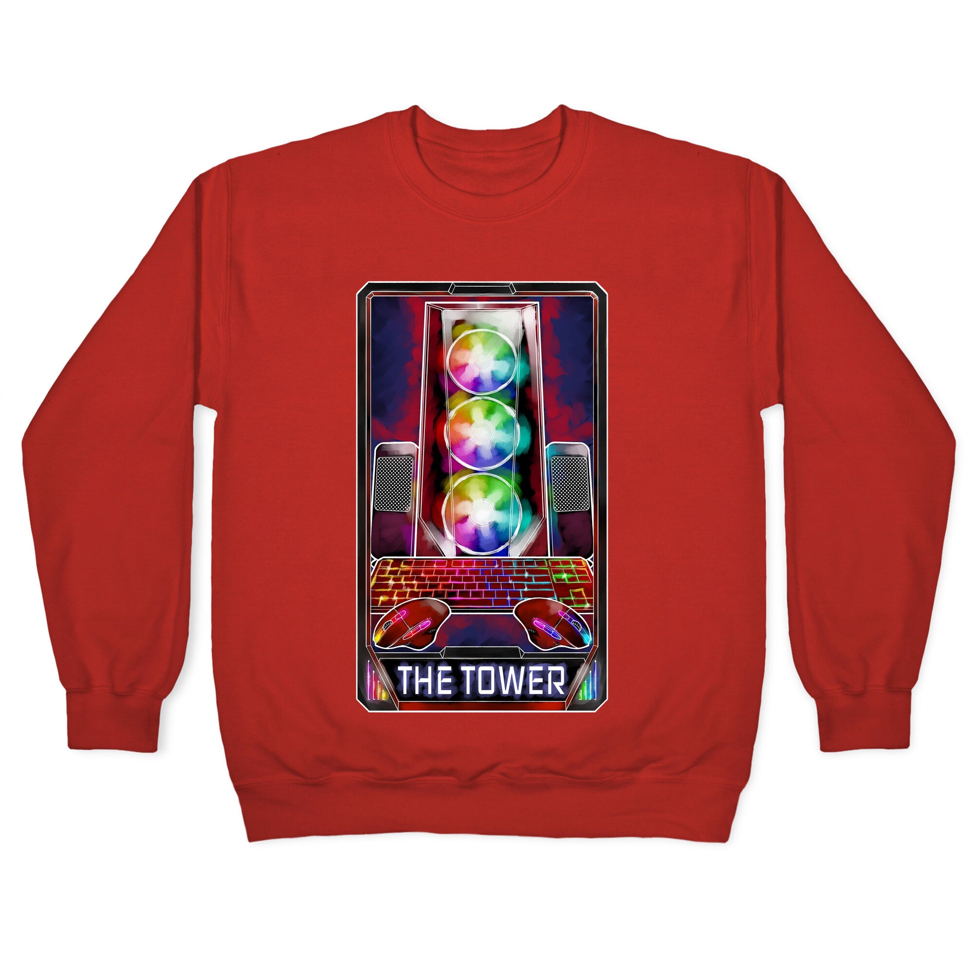 The tower represents sudden change and upheaval—like a sick come-behind clutch victory! Turn this card over and awaken frames that only 27,000 RGB lights can deliver!Our Unisex Crewneck Sweatshirt is made from a soft 8-ounce fabric, and they feature a crew neck, with sleeve and bottom hems for durability. Great for layering. Preshrunk for your convenience! Printed in the USA. Made with 50% Cotton and 50% Polyester.