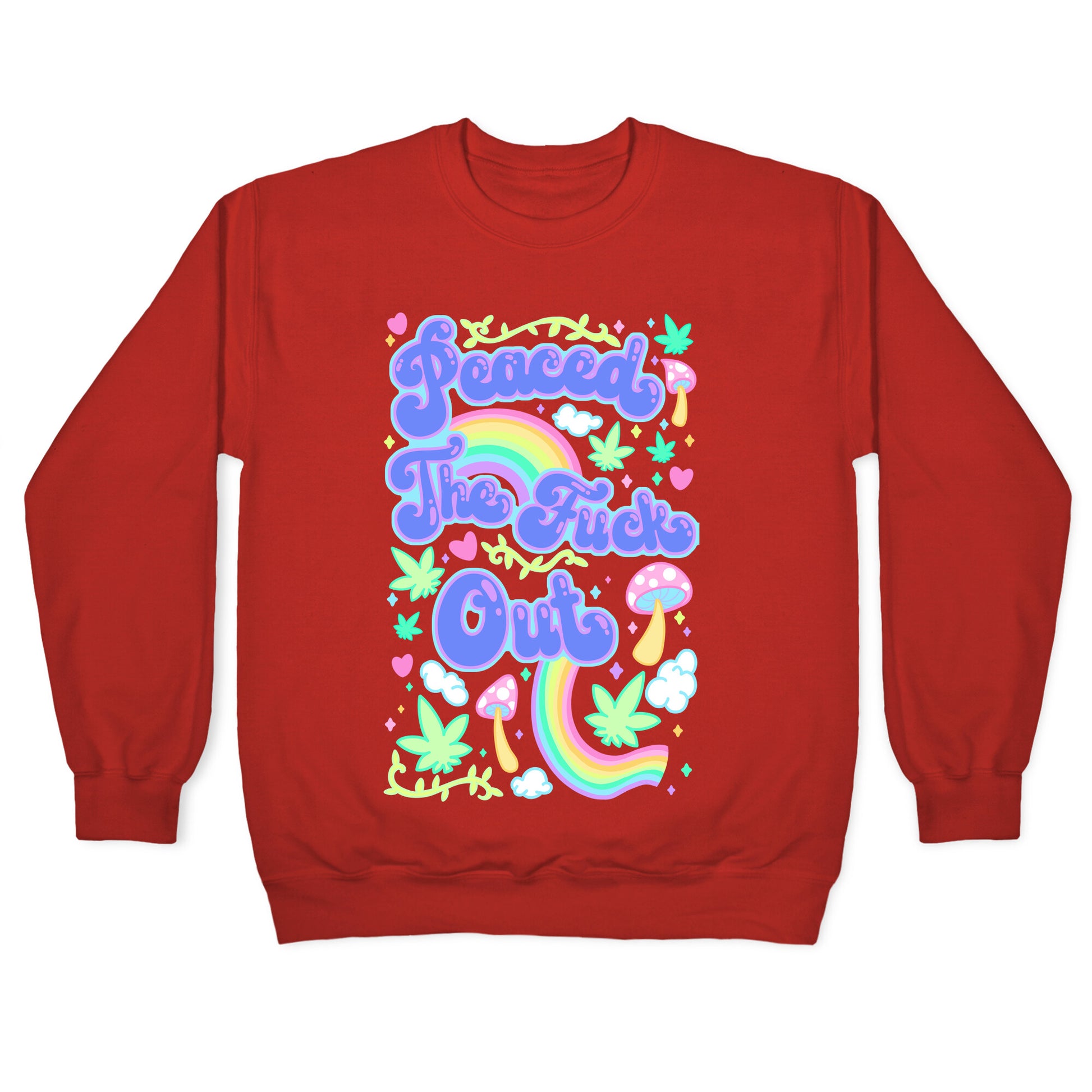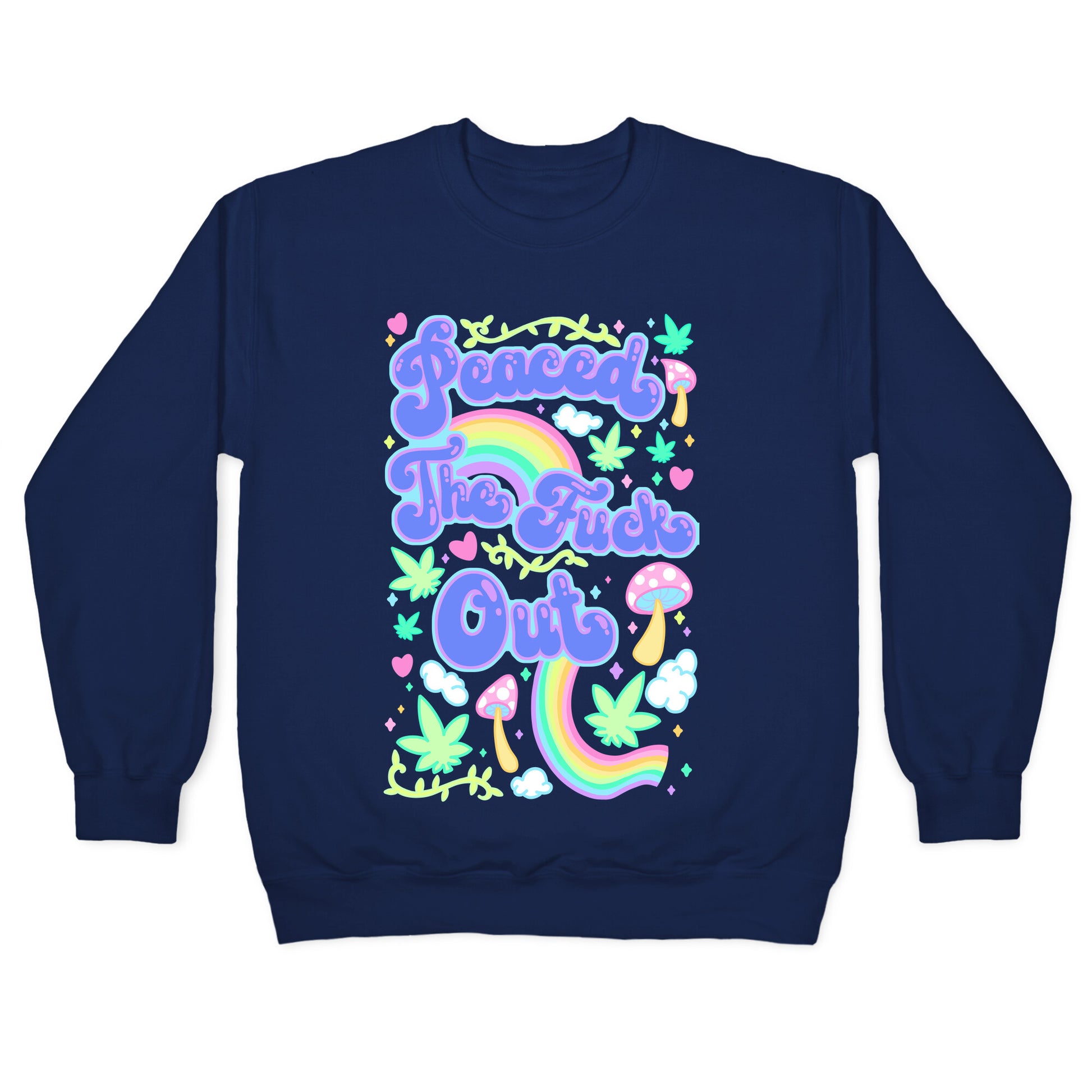 Bruhh, I'm Peaced The Fuck Out. Whether your tripping or chilling, let the people know you're currently unavailable with this pastel psychedelic weed design.Our Unisex Crewneck Sweatshirt is made from a soft 8-ounce fabric, and they feature a crew neck, with sleeve and bottom hems for durability. Great for layering. Preshrunk for your convenience! Printed in the USA. Made with 50% Cotton and 50% Polyester.