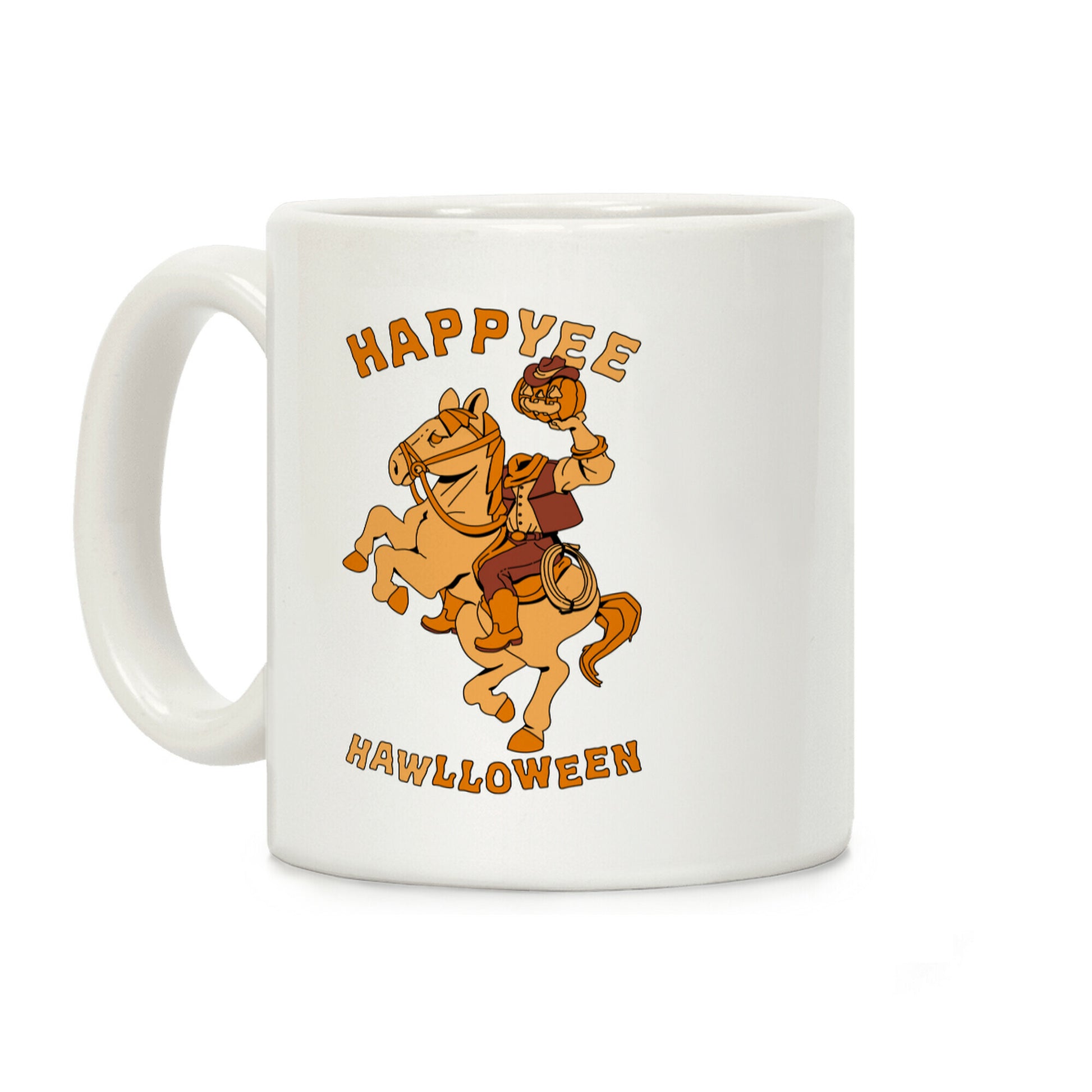 Beware the HeadlYEEs HAWrseman! Get Halloween done right with this funny countrified cowboy headless horseman that surely haunts a pasture near you. Our Mug features large handles for easy gripping and a wrap-around print. These heavy-duty Mugs are both dishwasher and microwave safe. Printed in the USA.
