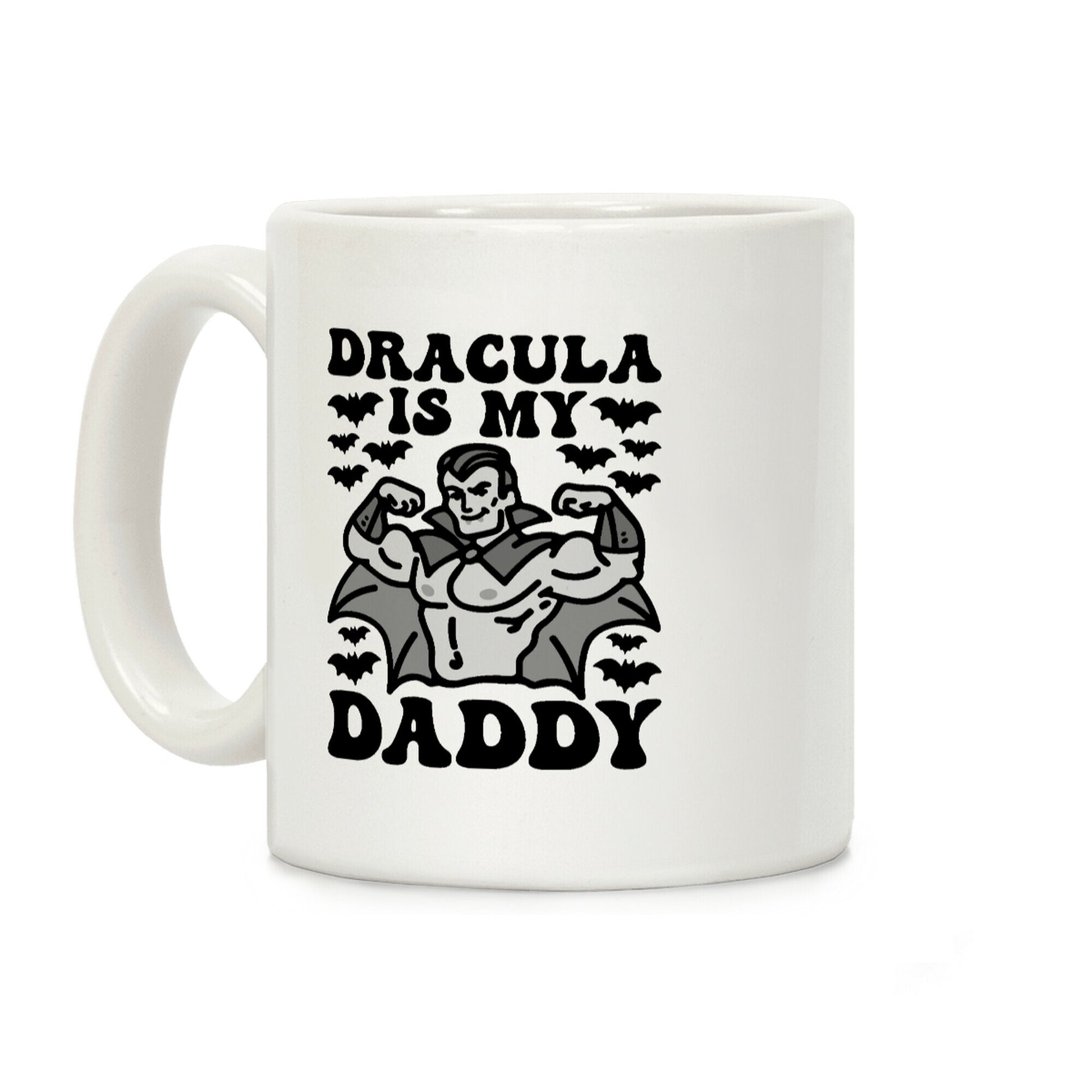 Dracula is my daddy! Show off your love for everyone's favorite vampire daddy, Dadcula! Rock some daddy vibes this Halloween with this funny, daddy, Dracula, vampire, Halloween design. Our Mug features large handles for easy gripping and a wrap-around print. These heavy-duty Mugs are both dishwasher and microwave safe. Printed in the USA