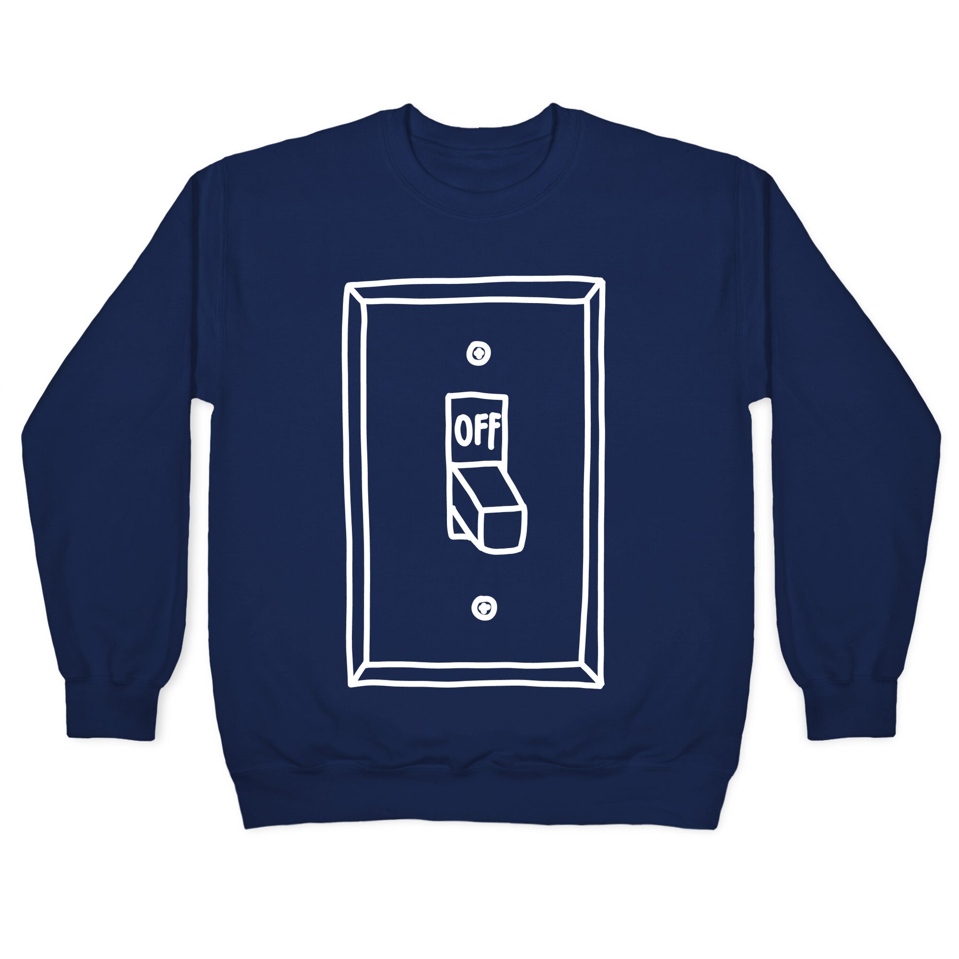 Turned off and tired. Be left alone to save your energy with this light switch illustration. Perfect for being lazy, sleeping, napping, recharging, and just keeping to yourself!Our Unisex Crewneck Sweatshirt is made from a soft 8-ounce fabric, and they feature a crew neck, with sleeve and bottom hems for durability. Great for layering. Preshrunk for your convenience! Printed in the USA. Made with 50% Cotton and 50% Polyester.