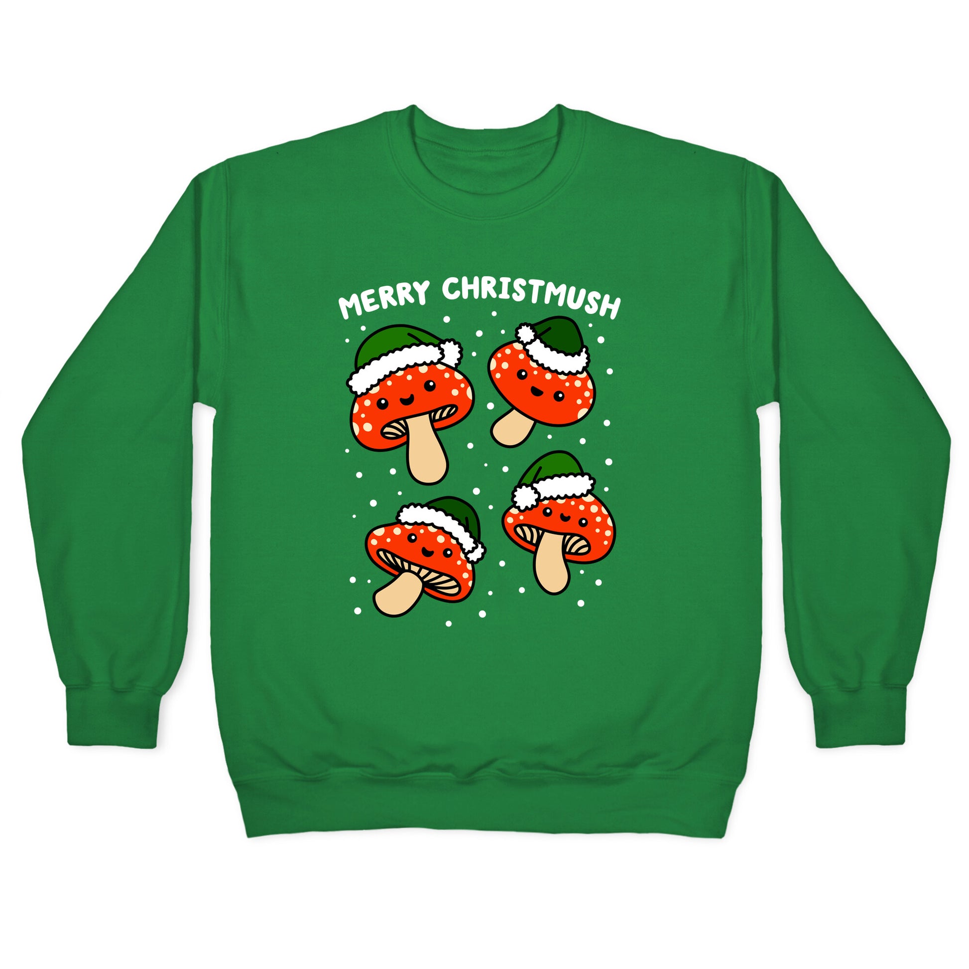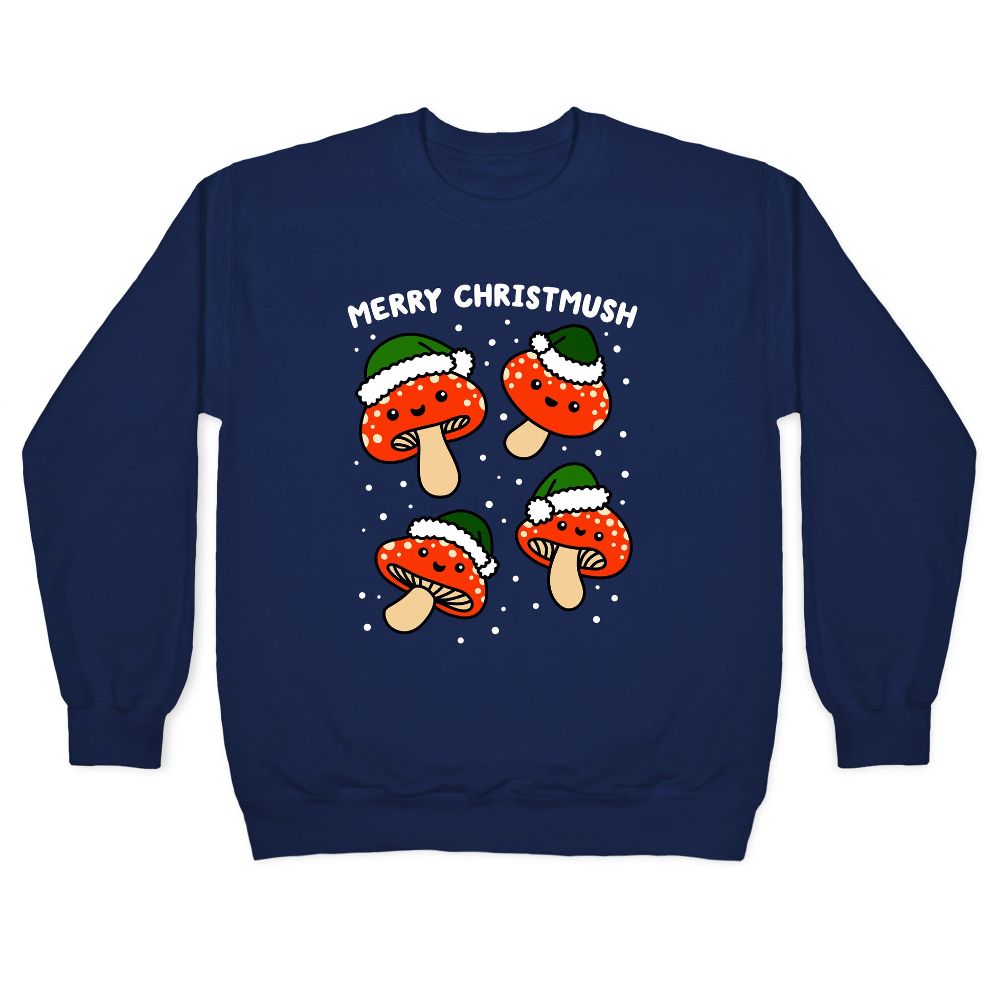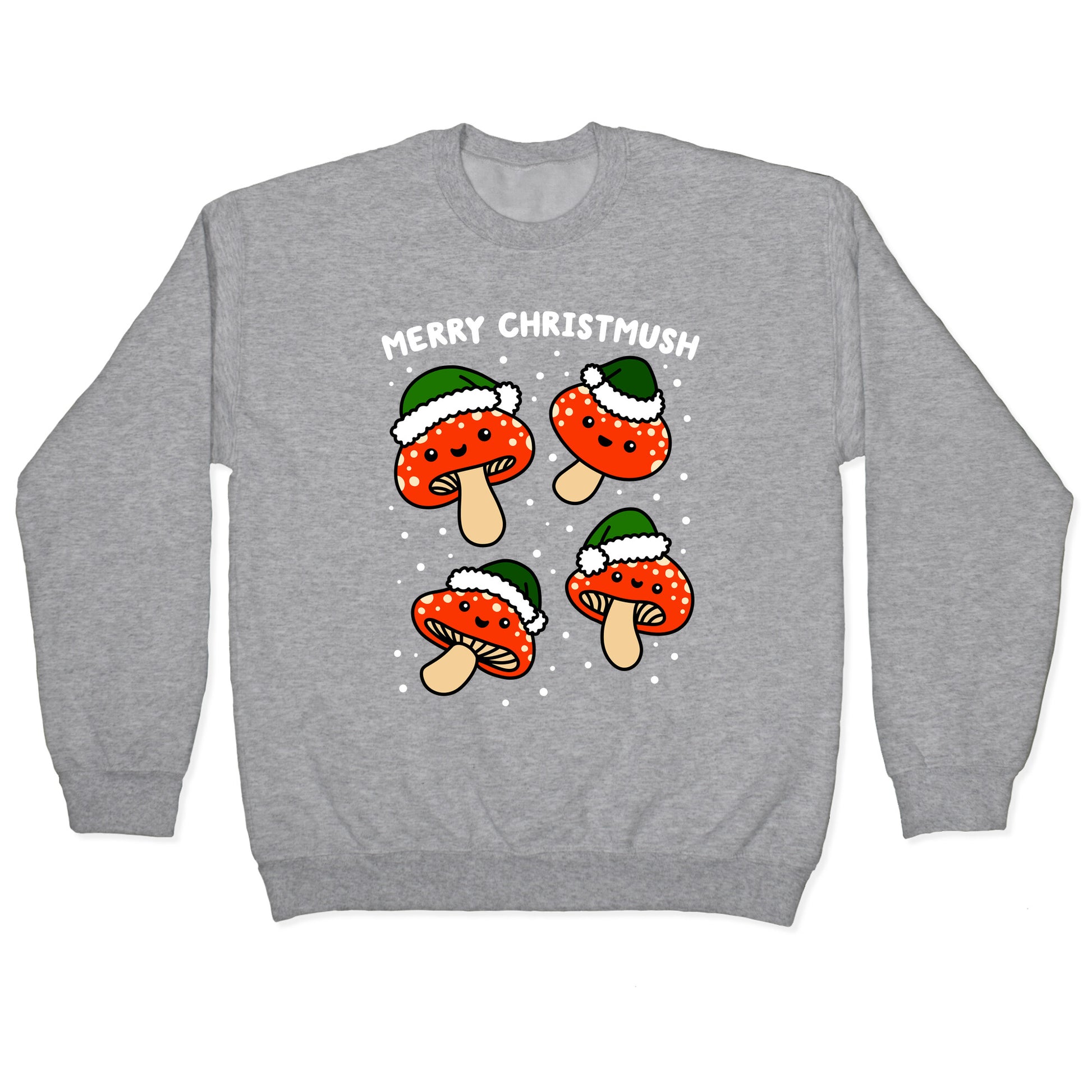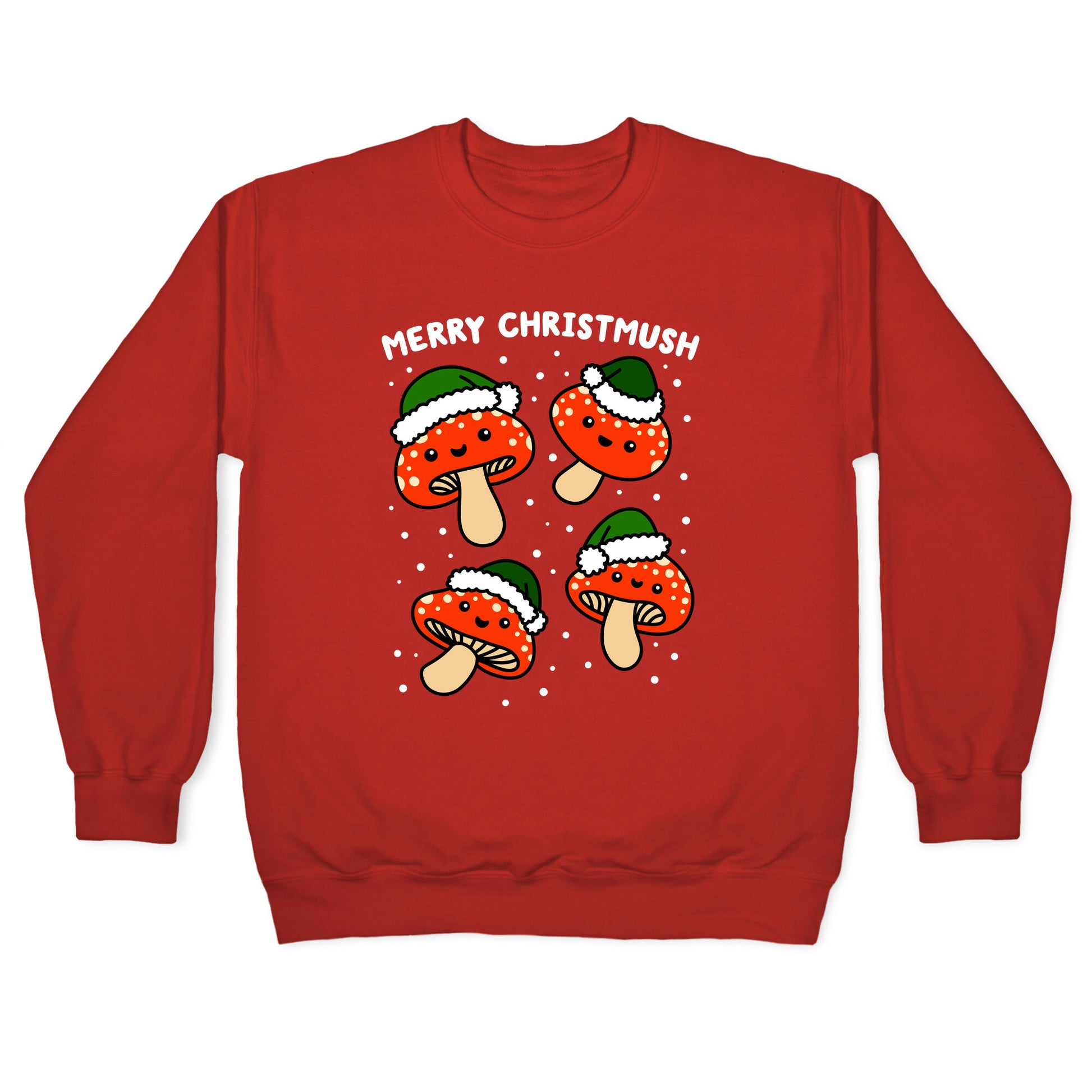 Merry Christmush, everyone! Celebrate your mushy, mushroom, holiday festivities with these adorable Christmas, Santa mushrooms! Perfect for being a fungi with the holiday party puns.Our Unisex Crewneck Sweatshirt is made from a soft 8-ounce fabric, and they feature a crew neck, with sleeve and bottom hems for durability. Great for layering. Preshrunk for your convenience! Printed in the USA. Made with 50% Cotton and 50% Polyester.