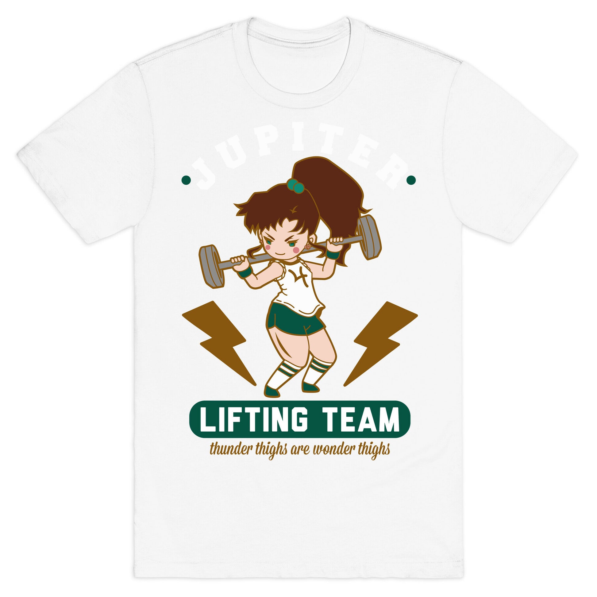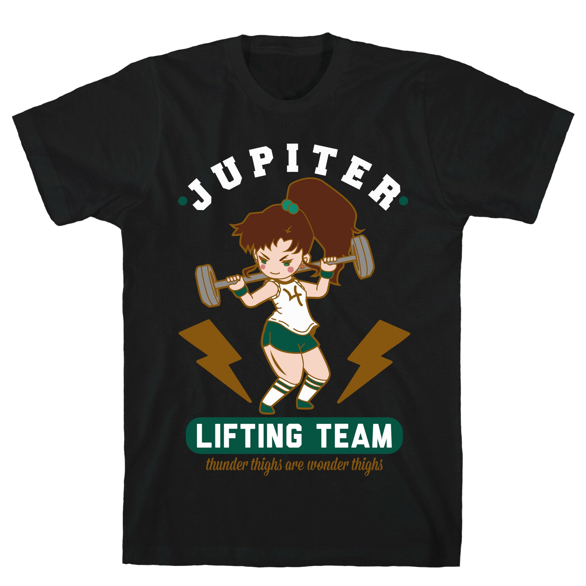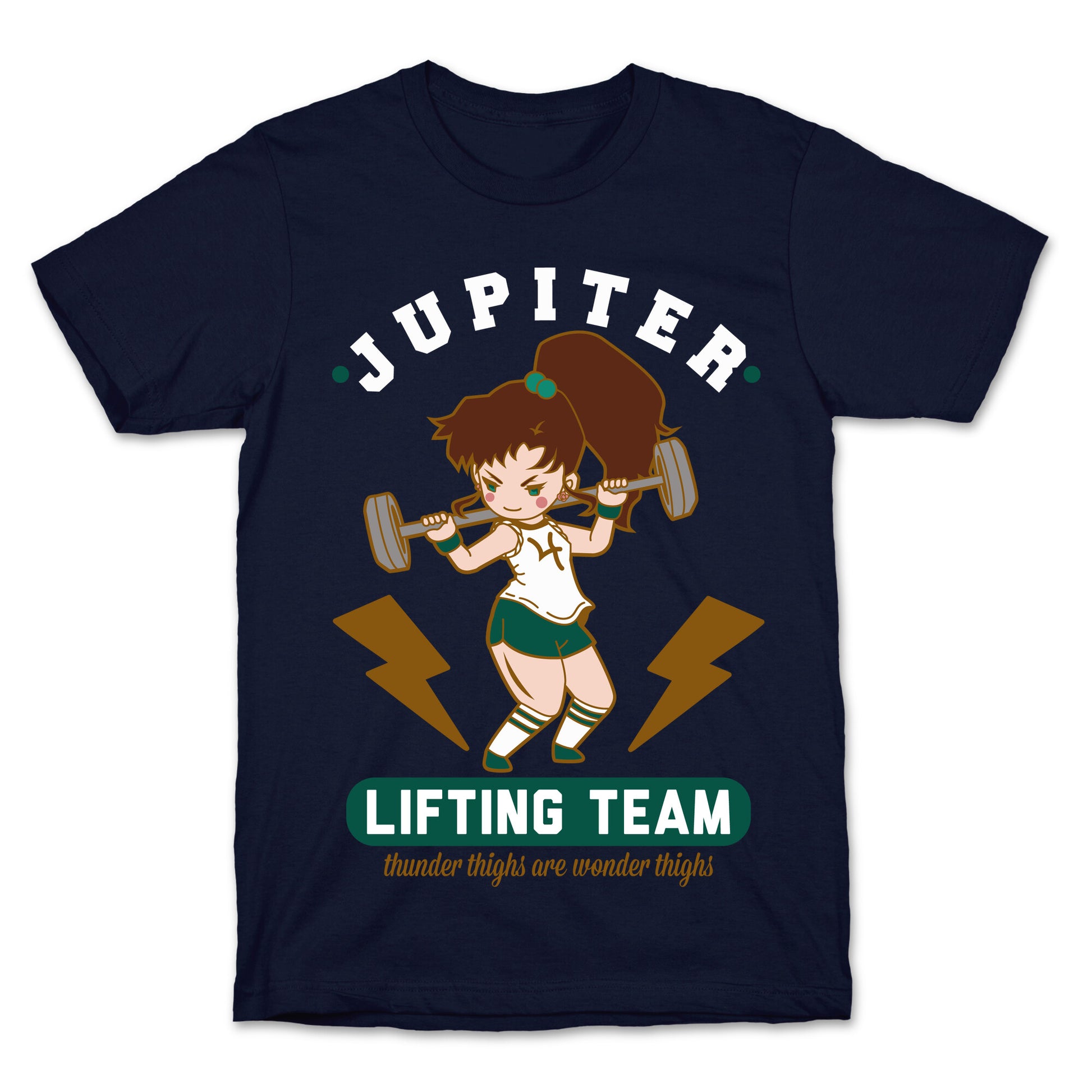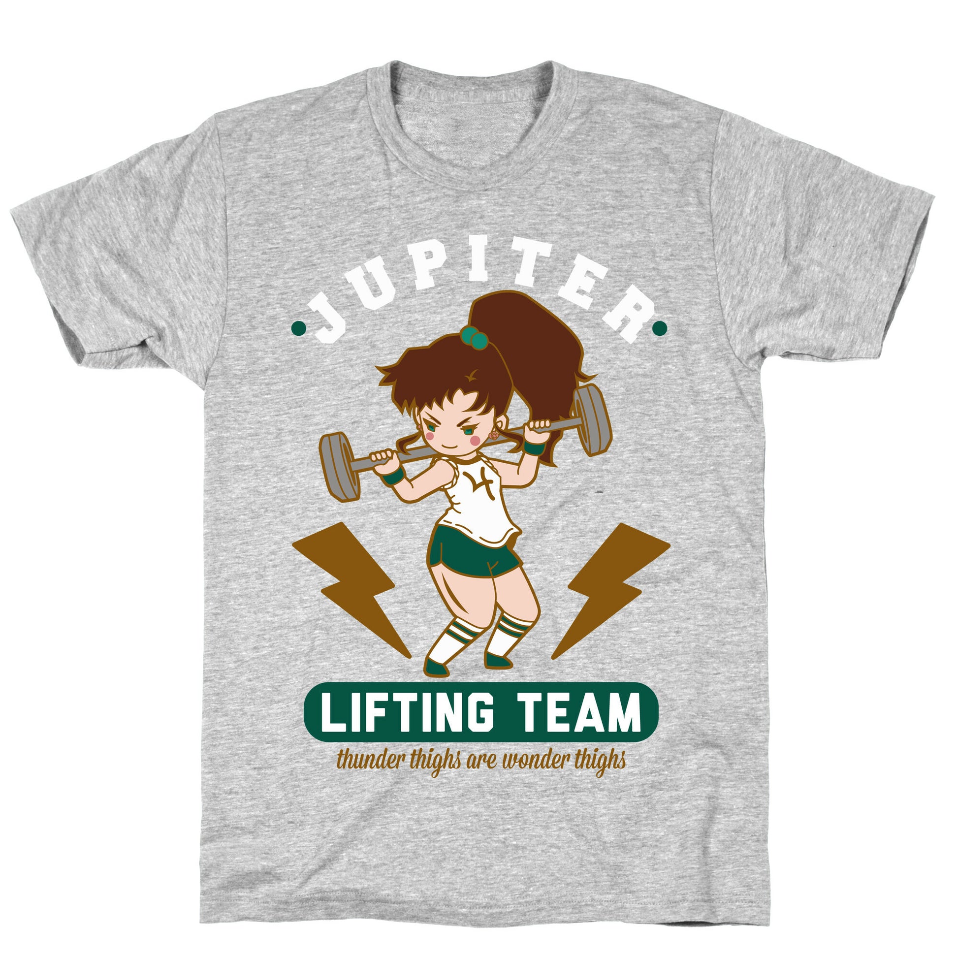 Introducing our new Jupiter Lifting Team Workout Parody tee, the ultimate gym buddy for any fitness enthusiast who's a fan of the Sailor Moon series. With Makoto Kino leading the pack, you'll feel inspired to power through your next workout and defy gravity with every lift. The design features Lita in full workout mode, showcasing her unbridled strength and determination. As part of the Jupiter lifting team, you'll also be reminded that thunder thighs are indeed wonder thighs, adding a touch of sass to this already awesome tee. The design is a perfect mix of humor and motivation, making it a great conversation starter and a favorite among workout buddies. Don't let mundane gym wear bog you down; upgrade your workout wardrobe with our Jupiter Lifting Team Workout Parody tee and show off your love for anime and fitness in style. Our fitted Unisex Cotton tee is made from an exceedingly soft 100% ring spun cotton. It features a crew neckline with hemmed sleeves and bottom for durability. Preshrunk for your convenience! Printed in the USA. Made with 100% Ring Spun Cotton. Athletic Gray is made up of 90% cotton and 10% polyester. Other heathered colors are made of 52% cotton and 48% polyester.