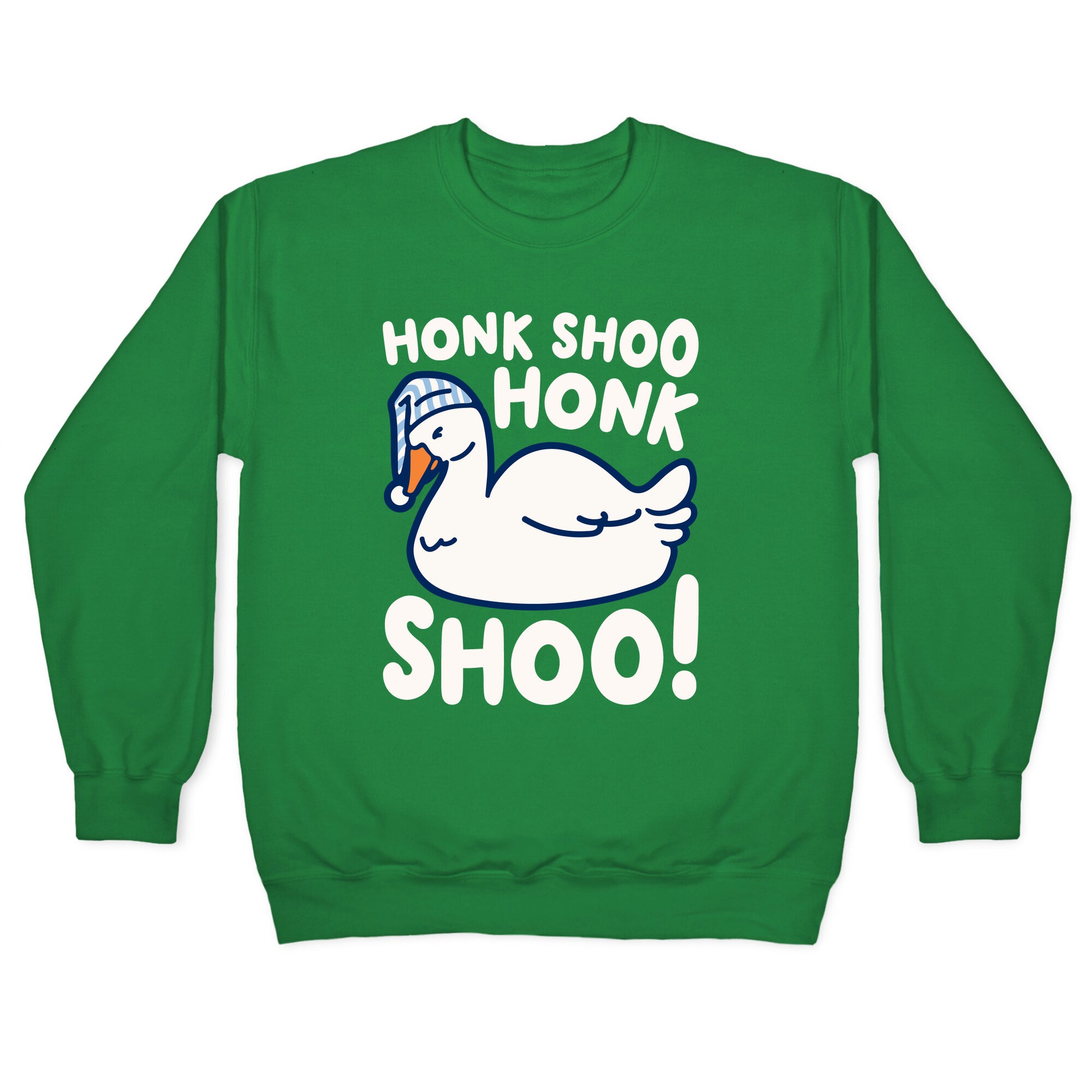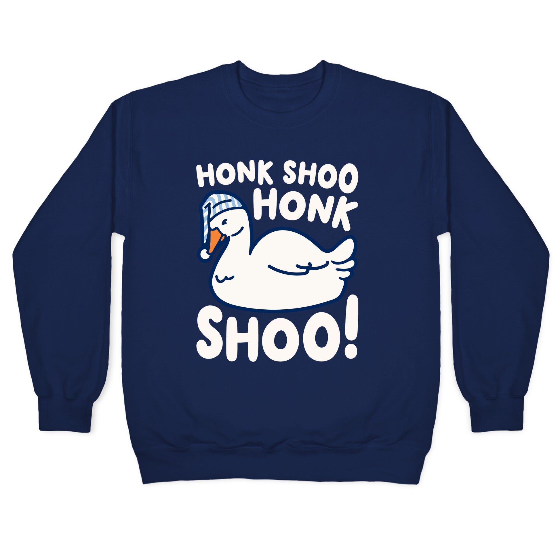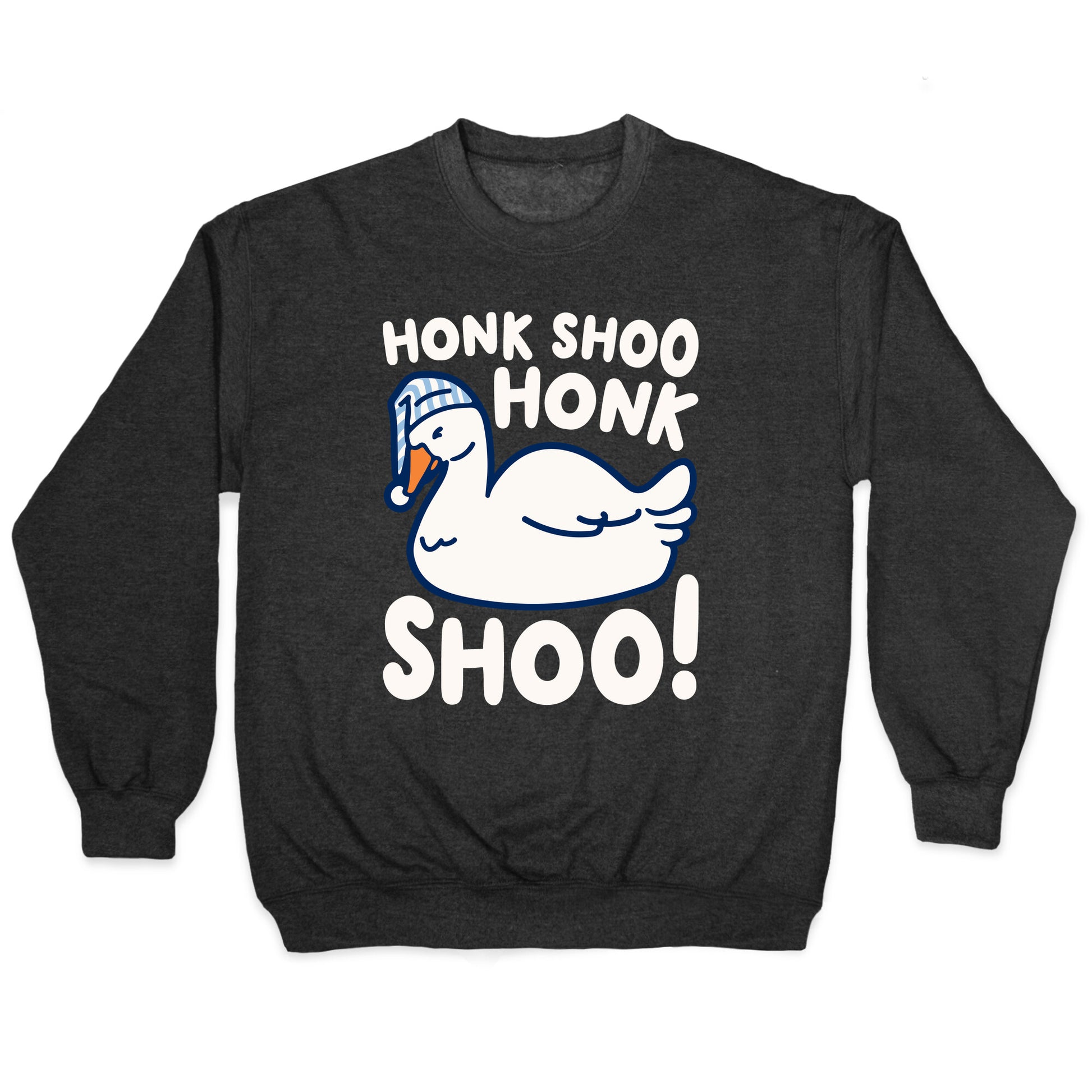 Geese sleep like "Honk shoo, Honk shoo". Show off your love for geese, sleeping and goose puns and memes with this cute and funny, sleeping goose, honk shoo honk shoo, sleep design.Our Unisex Crewneck Sweatshirt is made from a soft 8-ounce fabric, and they feature a crew neck, with sleeve and bottom hems for durability. Great for layering. Preshrunk for your convenience! Printed in the USA. Made with 50% Cotton and 50% Polyester.